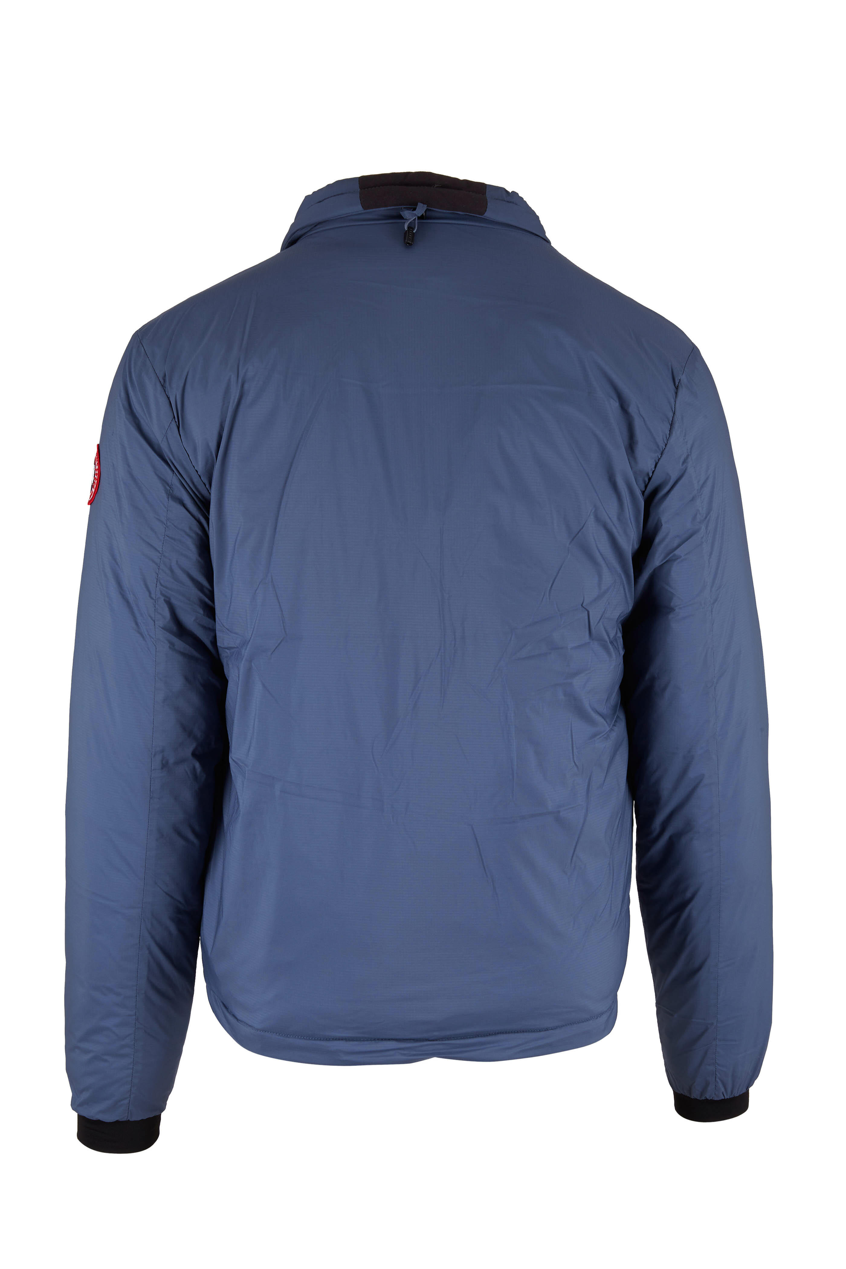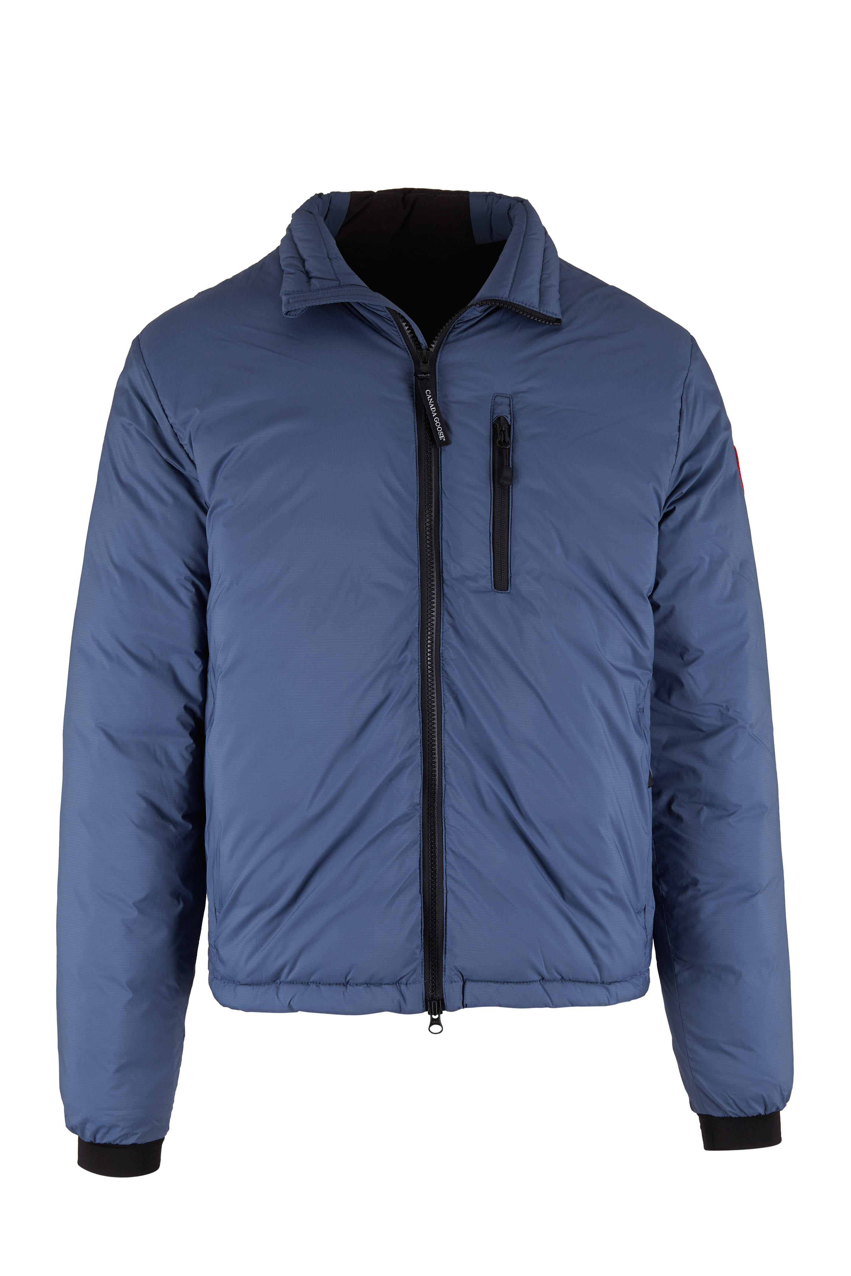 Stand collar. Two-way zip. Chest vertical zip pocket; lower vertical zip pockets. Elasticized ribbed cuffs. Made in Canada. 100% polyamide; filling: 90% white duck down, 10% white duck feathers. Machine wash.