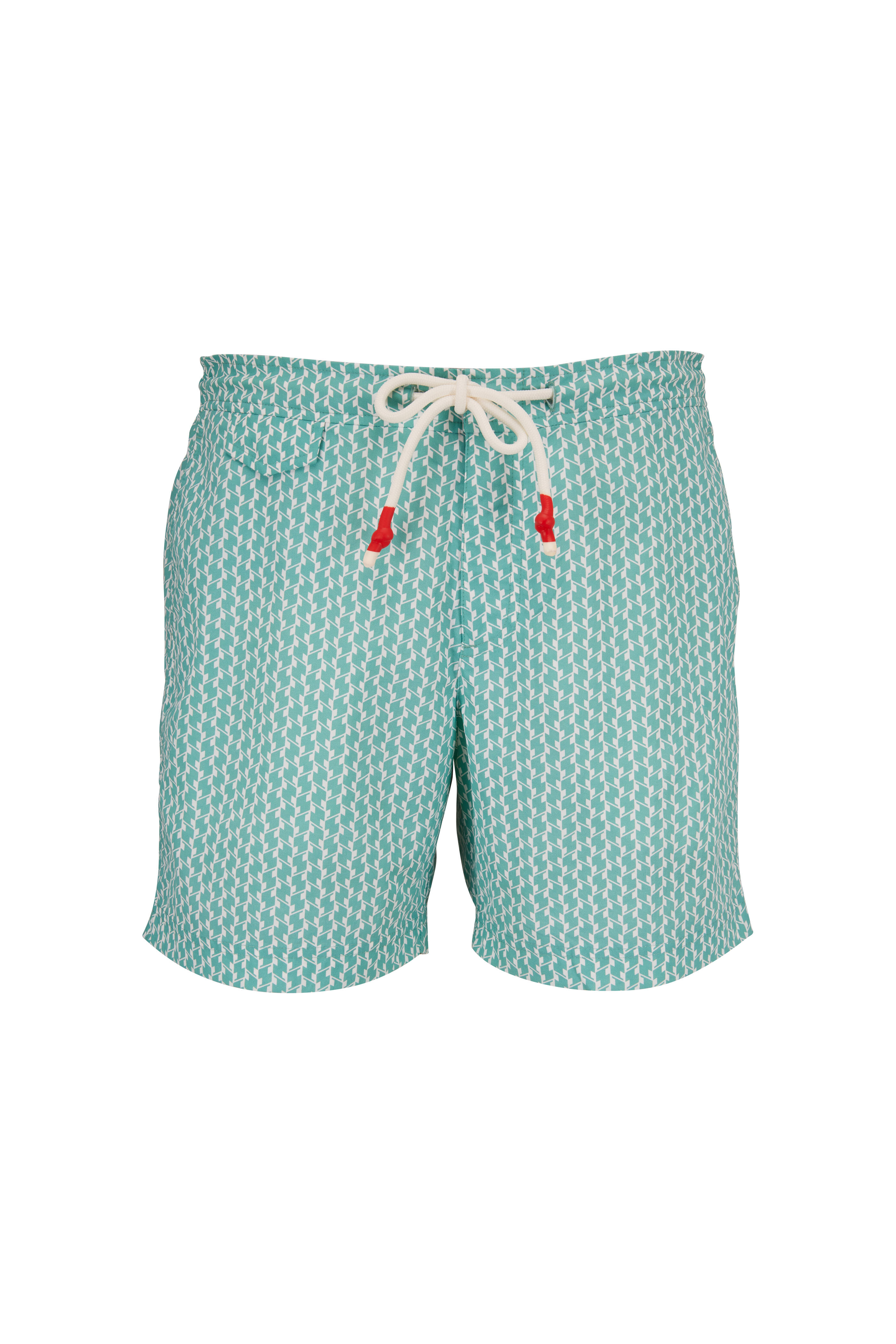 Half elasticized waistband. Internal drawcord; external drawstring. Zip fly. Flap ticket pocket; back zip pocket. Imported. 5½" inseam. 100% recycled nylon. Machine wash.