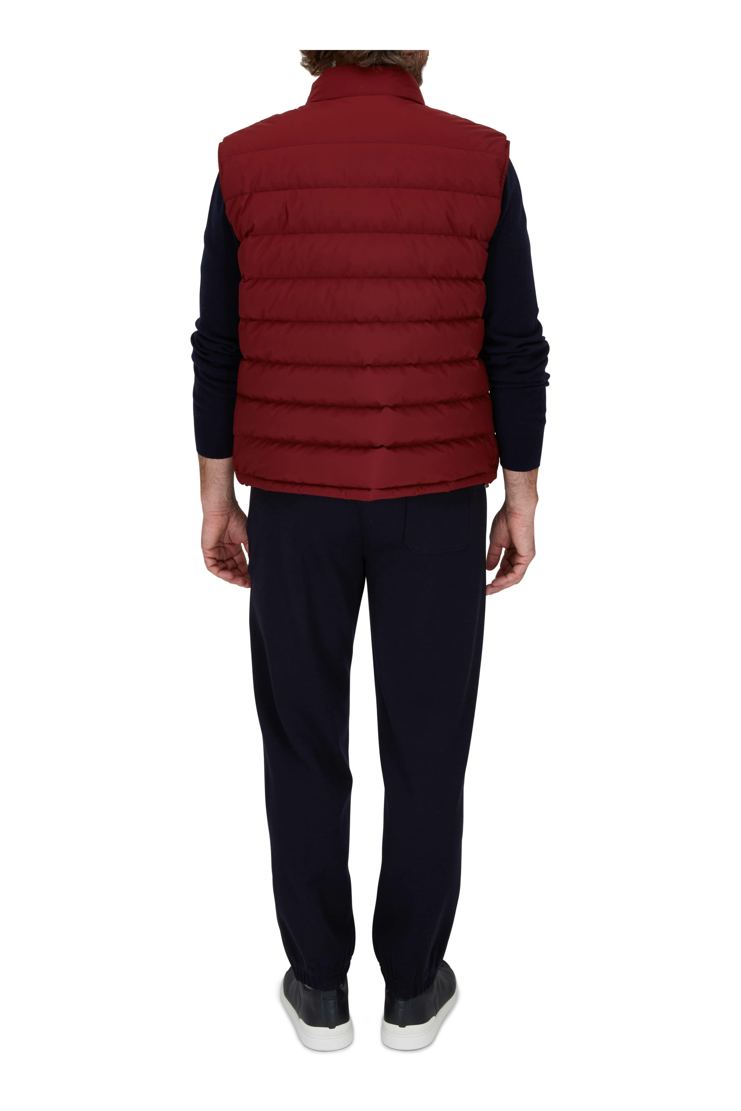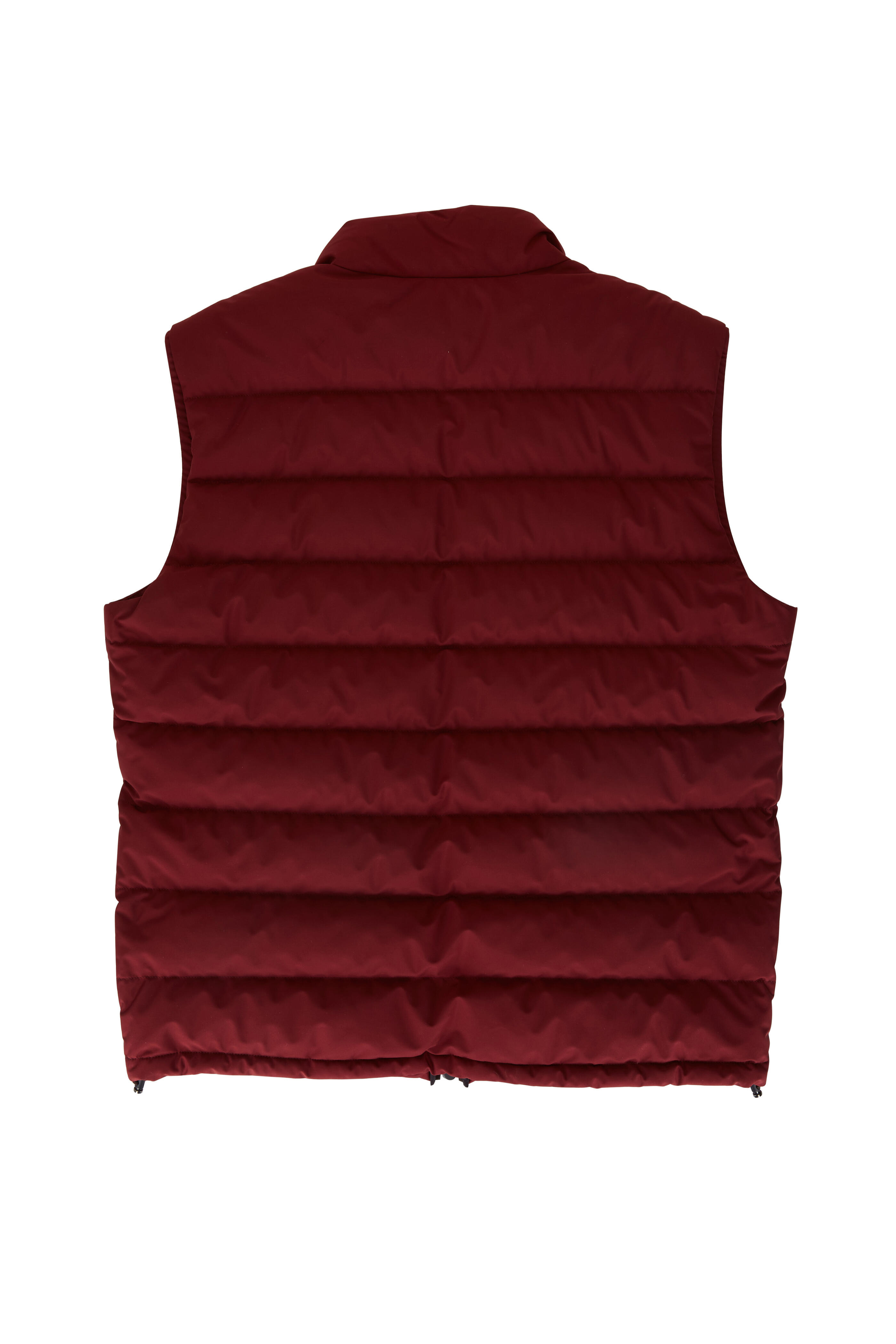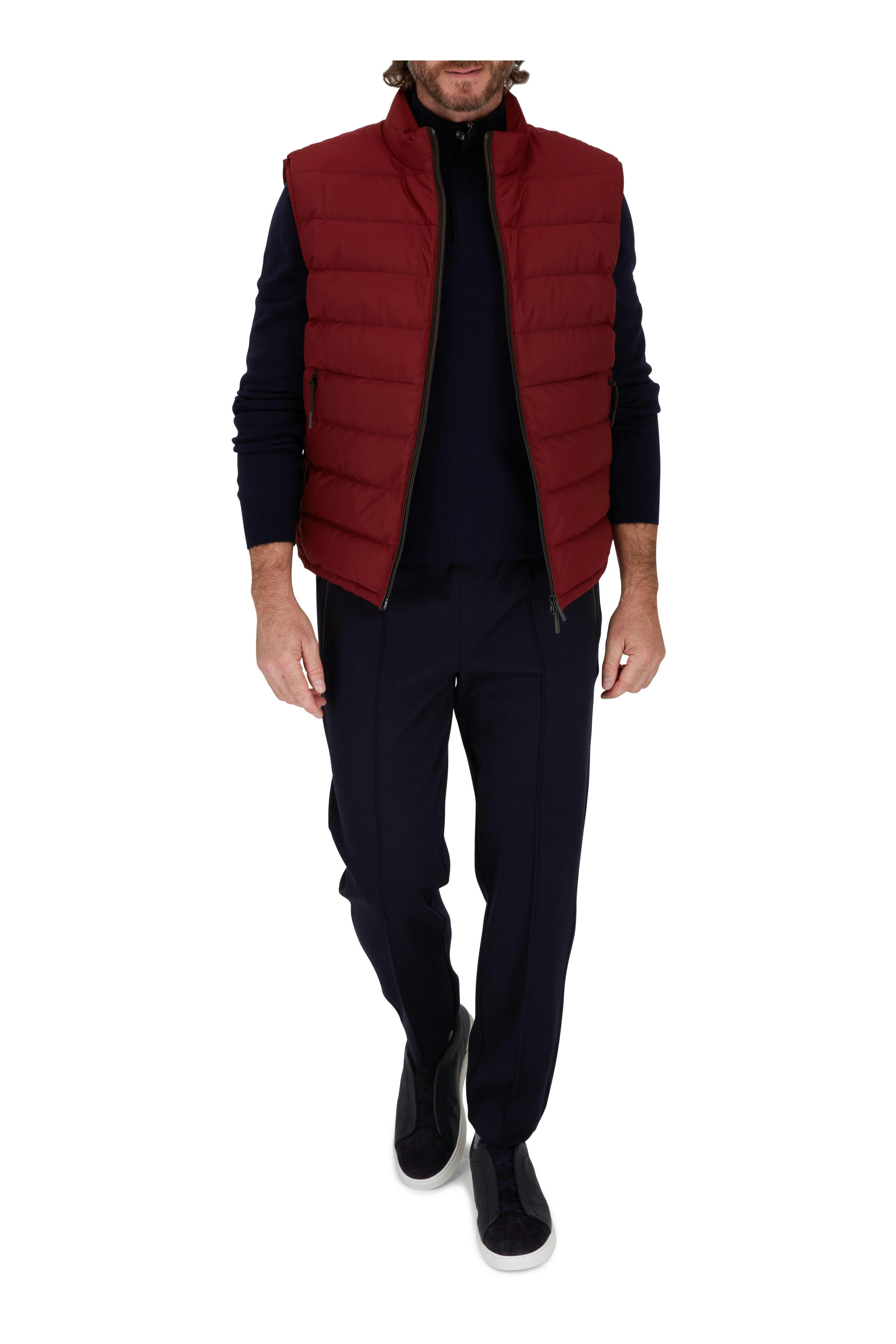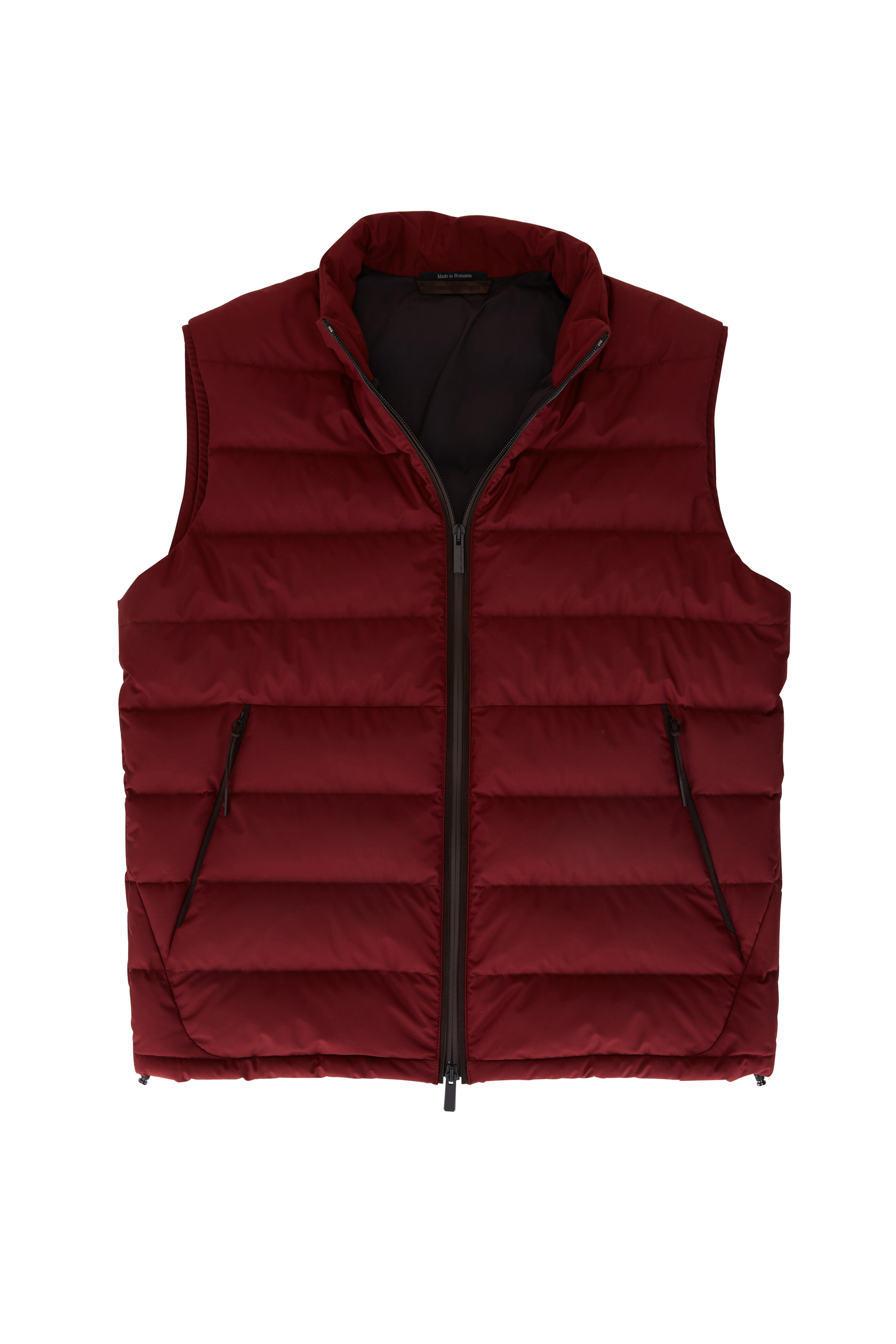 Stand collar. Two-way zip. Lower zip pockets. Imported. 100% polyester; fill: 97% goose down, 3% feathers. Dry clean.