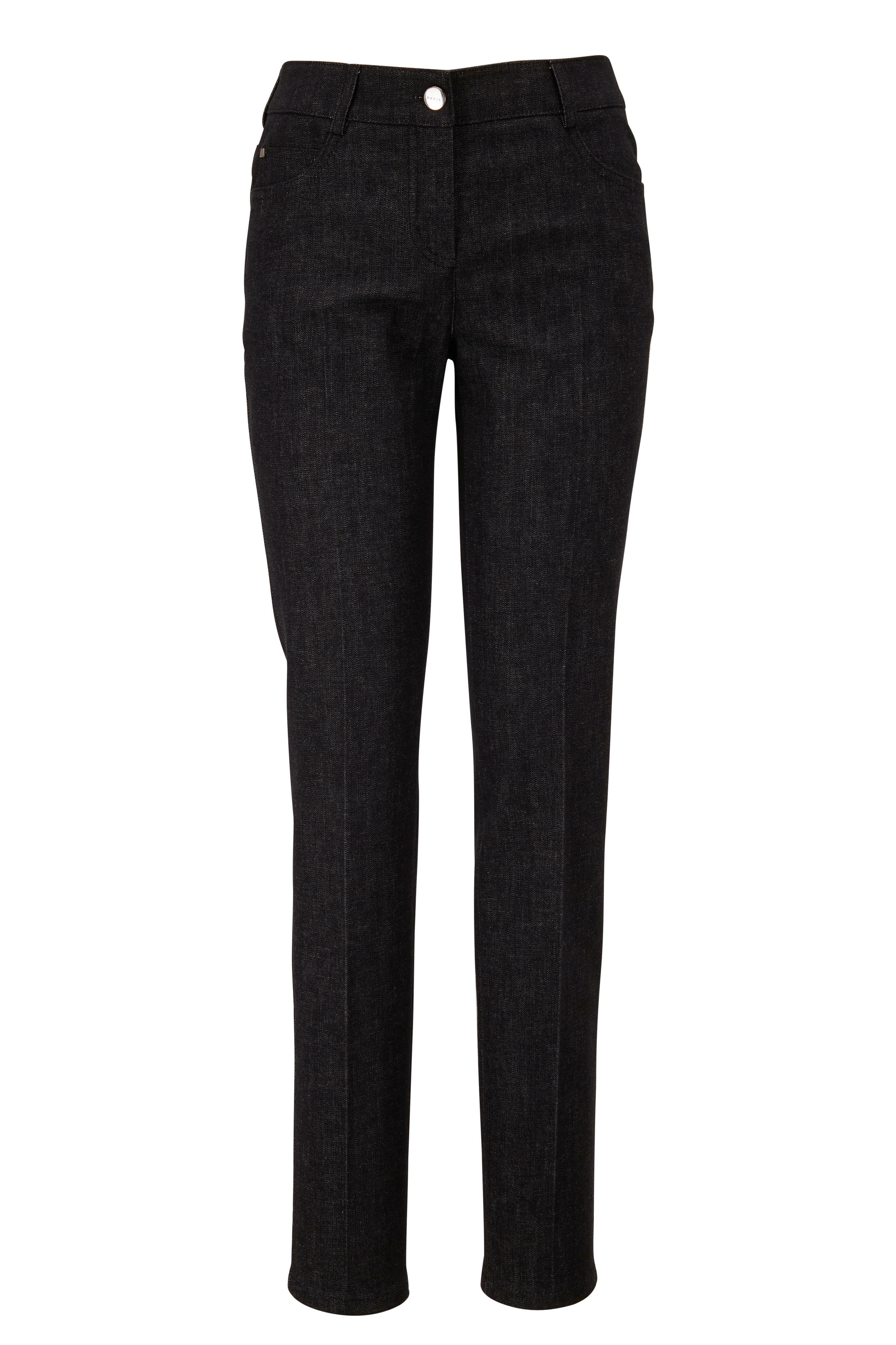 Five pocket styling. Imported. 98% cotton, 2% polyurethane; lined. Dry clean.