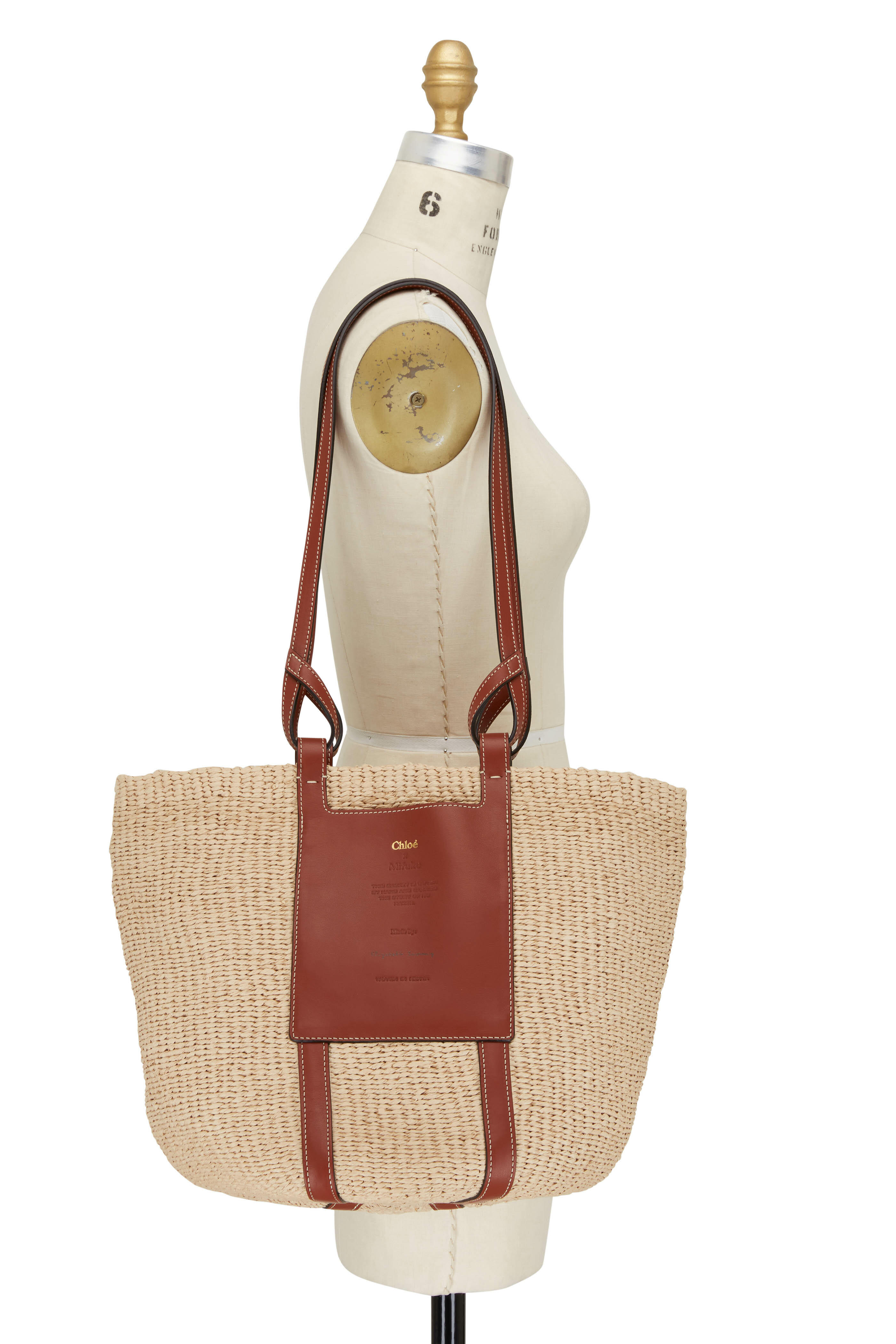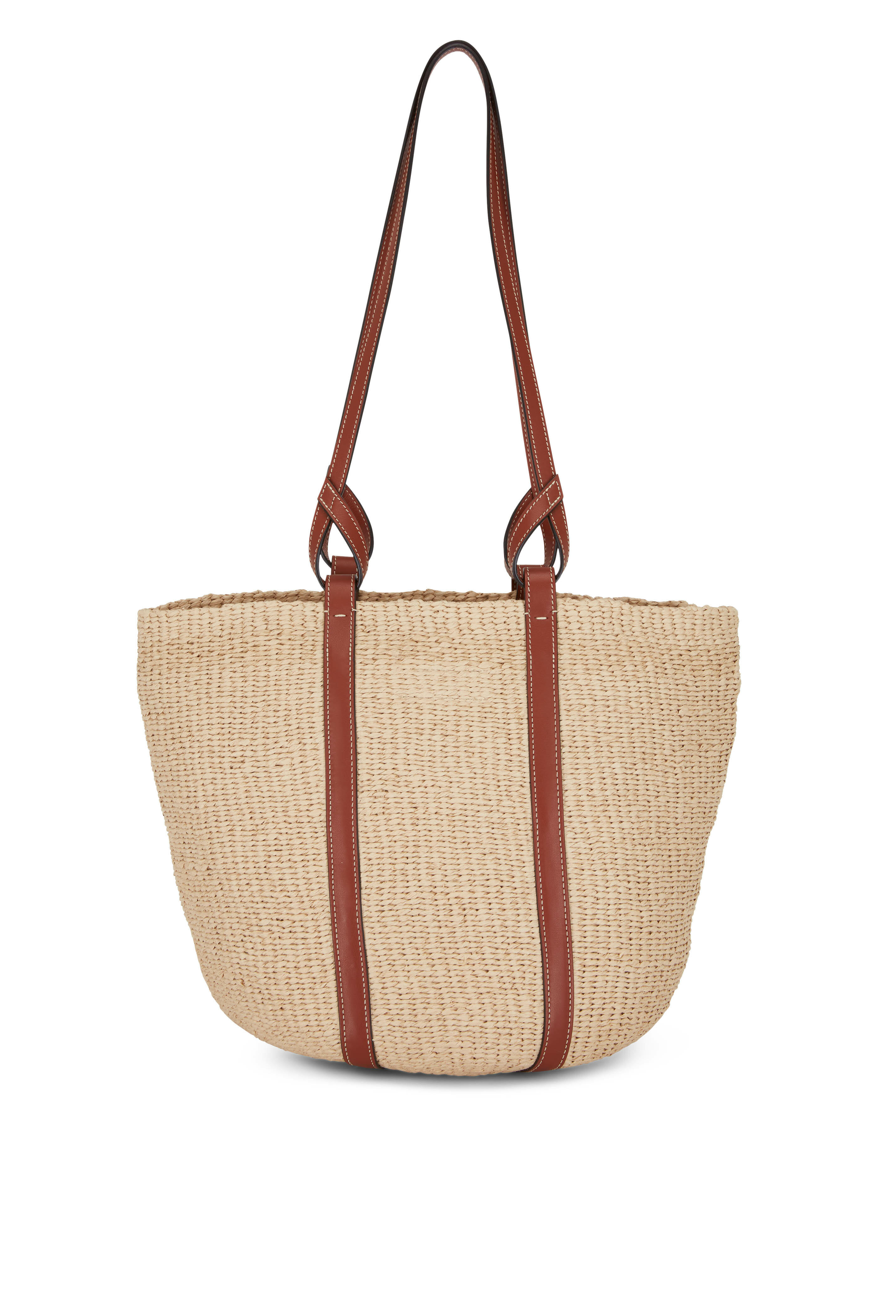 Sepia Raffia Basket Shopper Tote