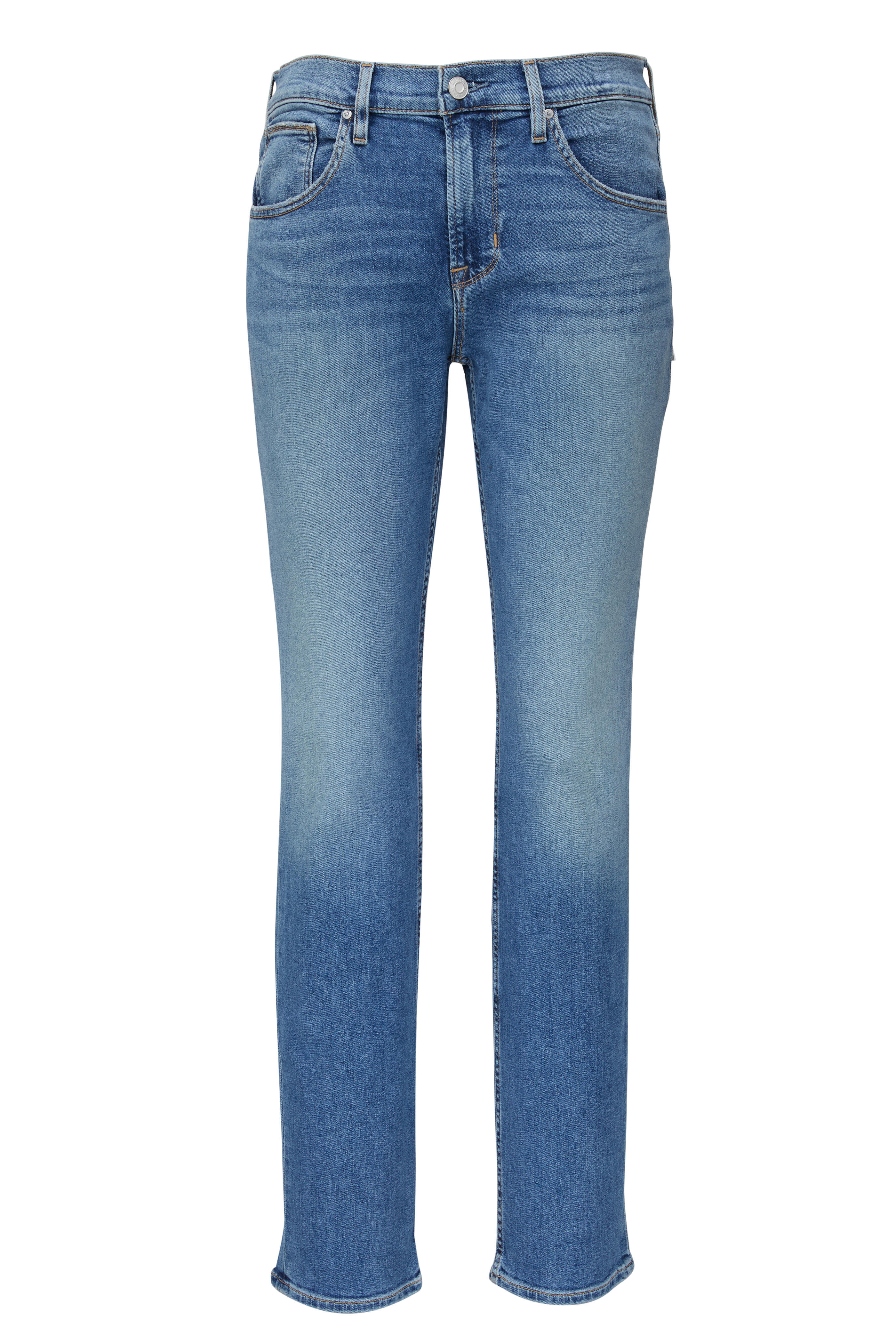 Zip fly with button closure. Five pocket styling. Slight distressed detailing. Imported. Color: Toldeo. 34" inseam. 12" rise. 93% cotton, 6% elasterel, 1% lycra. Machine wash.