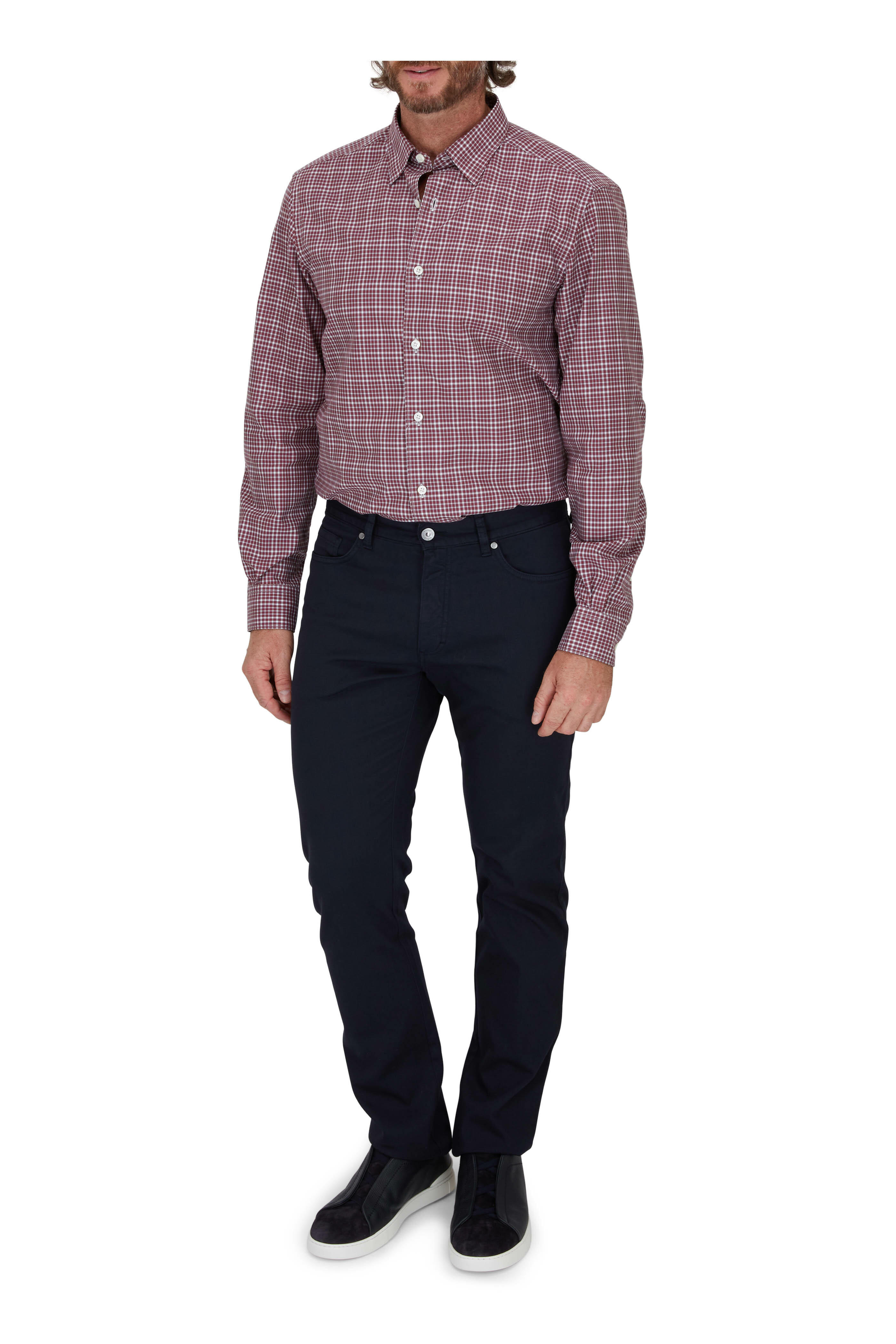 Spread collar. Single button barrel cuffs. Imported. 100% cotton. Machine wash.