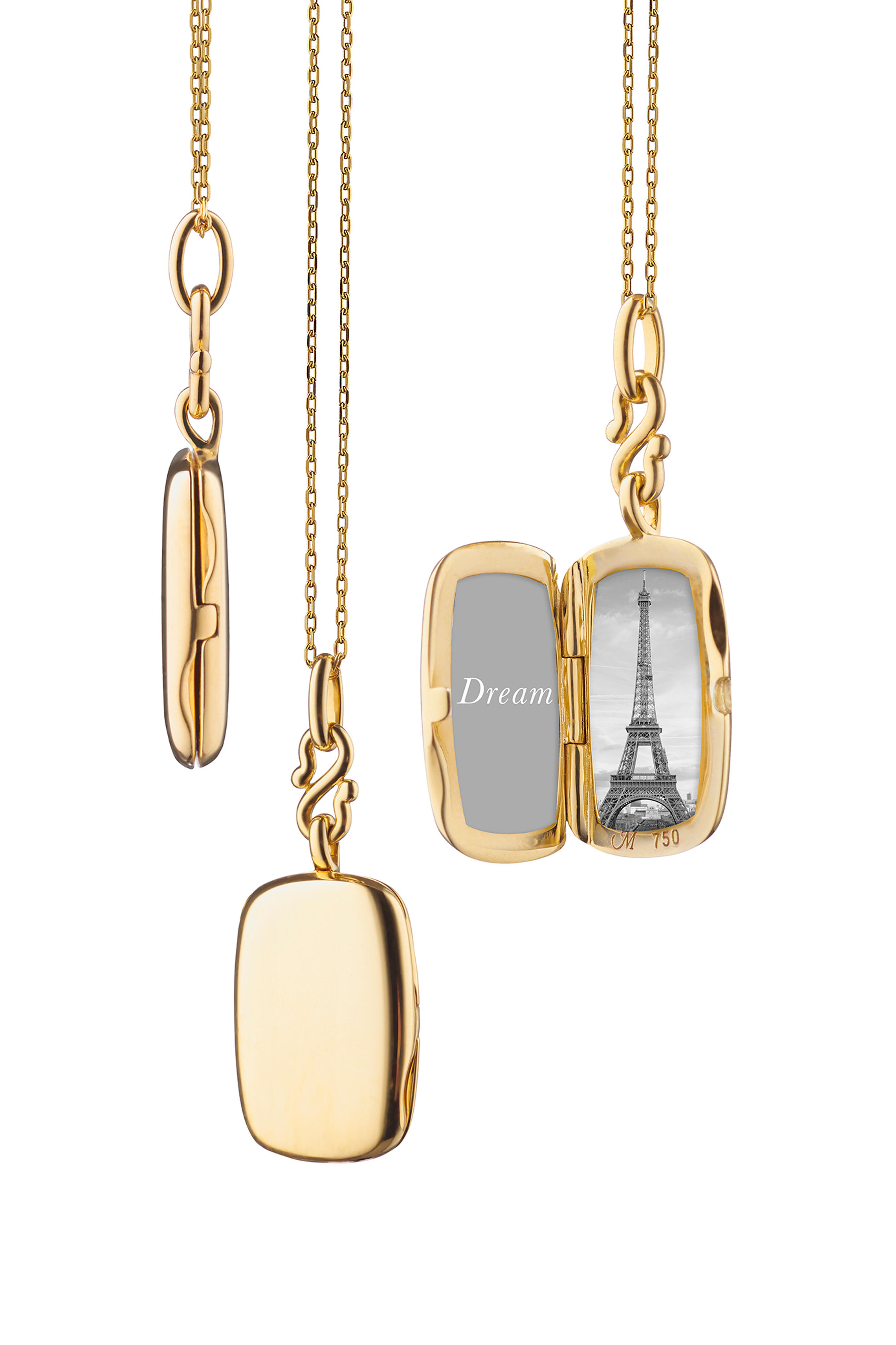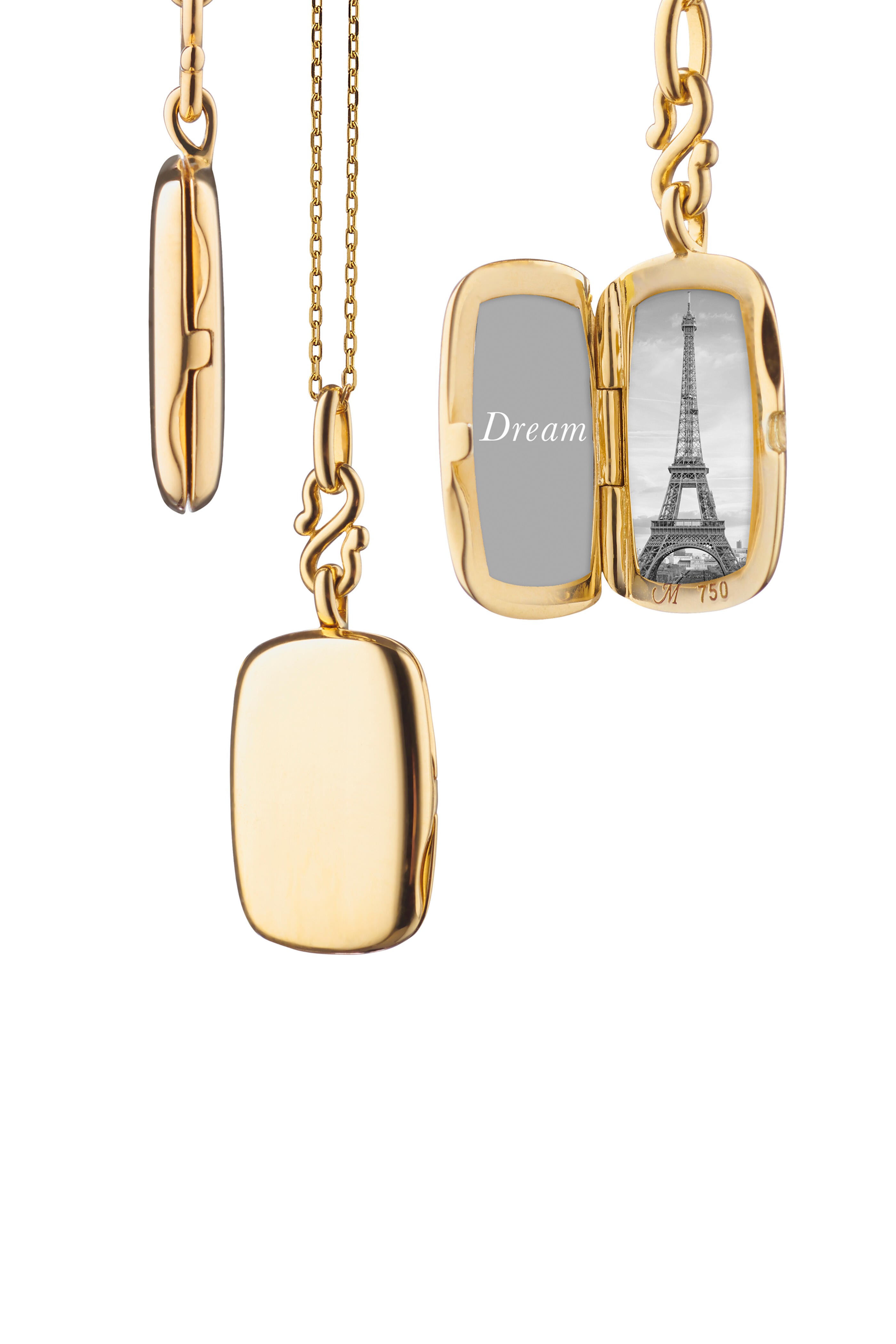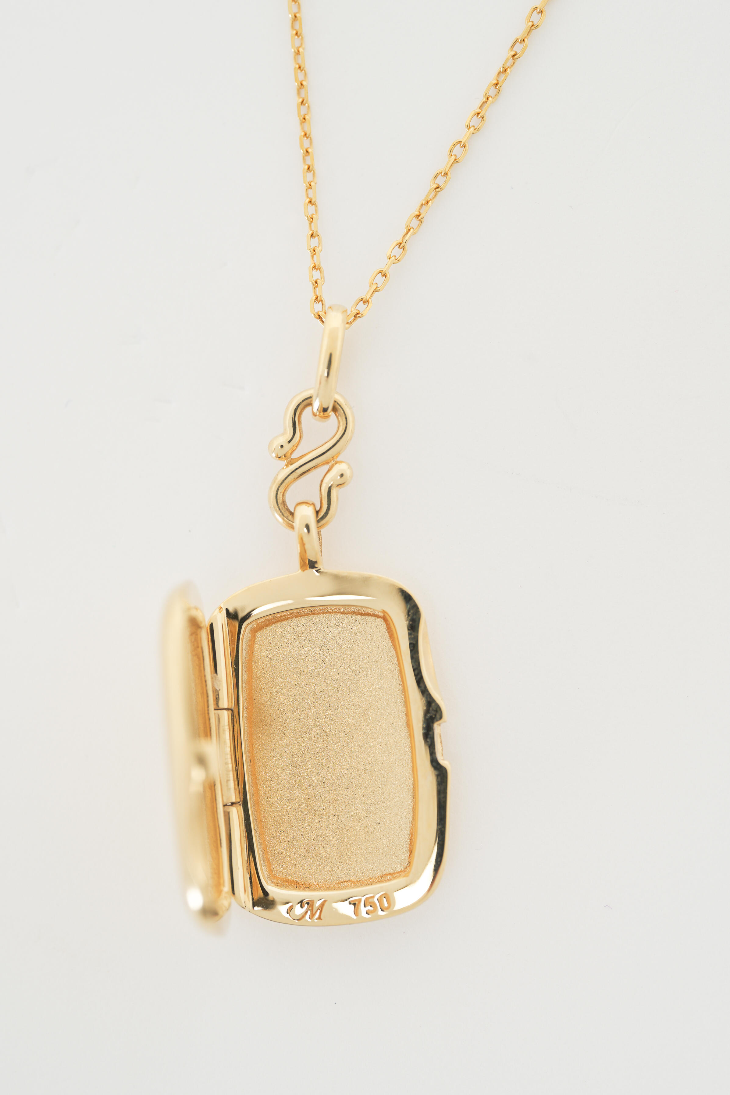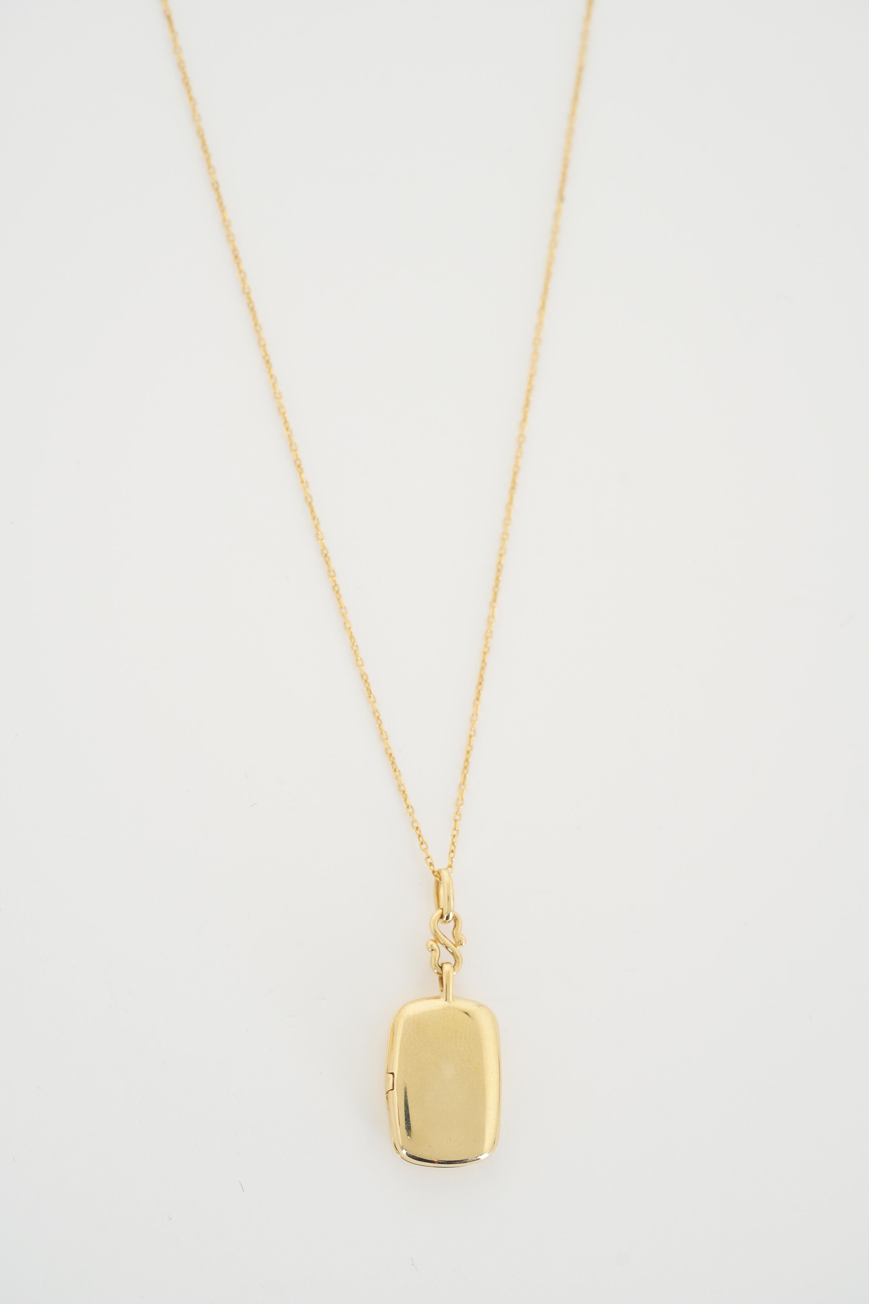 18K Yellow Gold. 3/16" Slim Side Profile. Two Image Locket: 3/4" x 1/2" wide. 22" Gold Chain, Adjustable at 20",17" or 16".