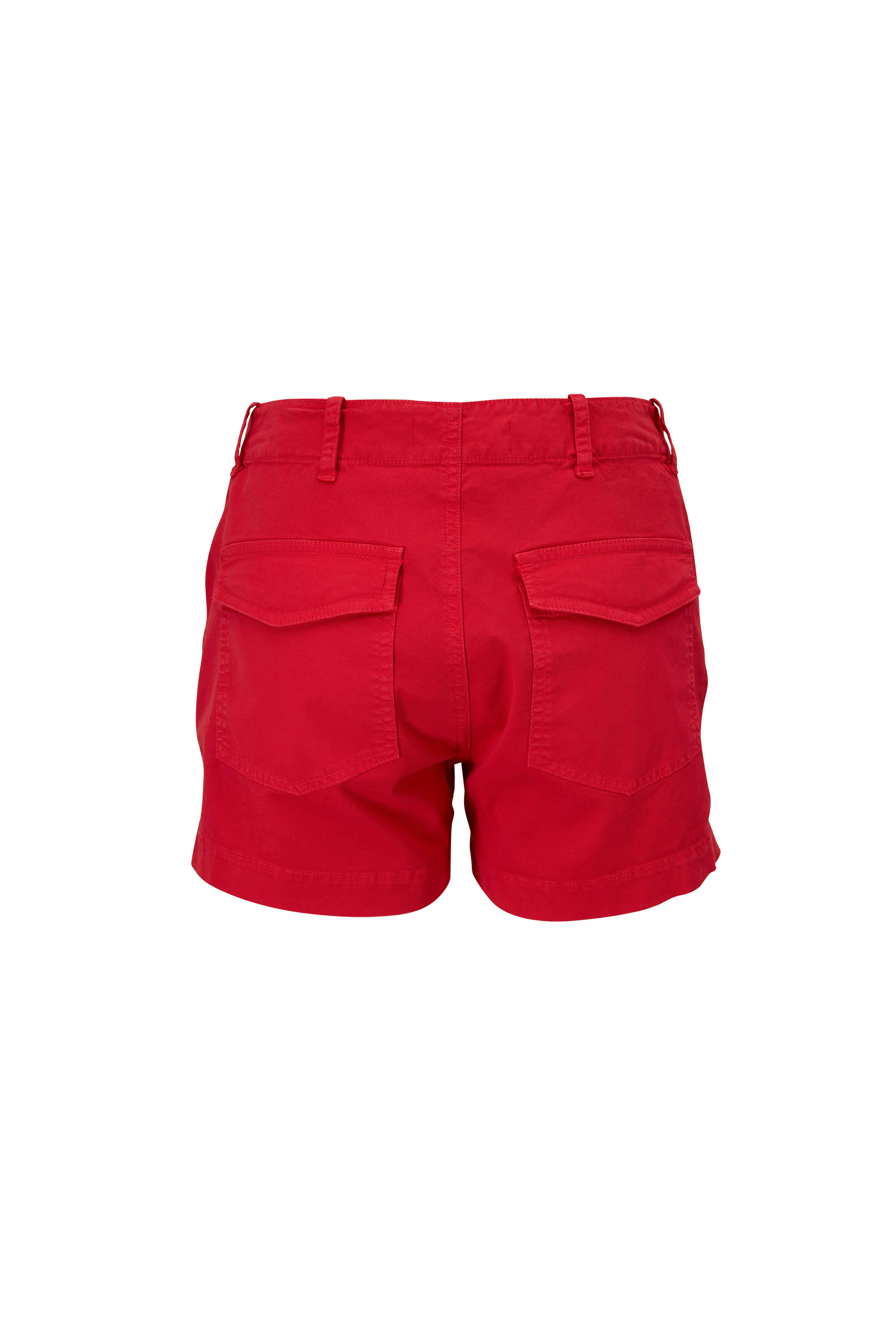Banded waist; belt loops. Front patch pockets; back flap pockets. Made in the USA. 3” inseam. 97% cotton, 3% elastane. Machine wash.