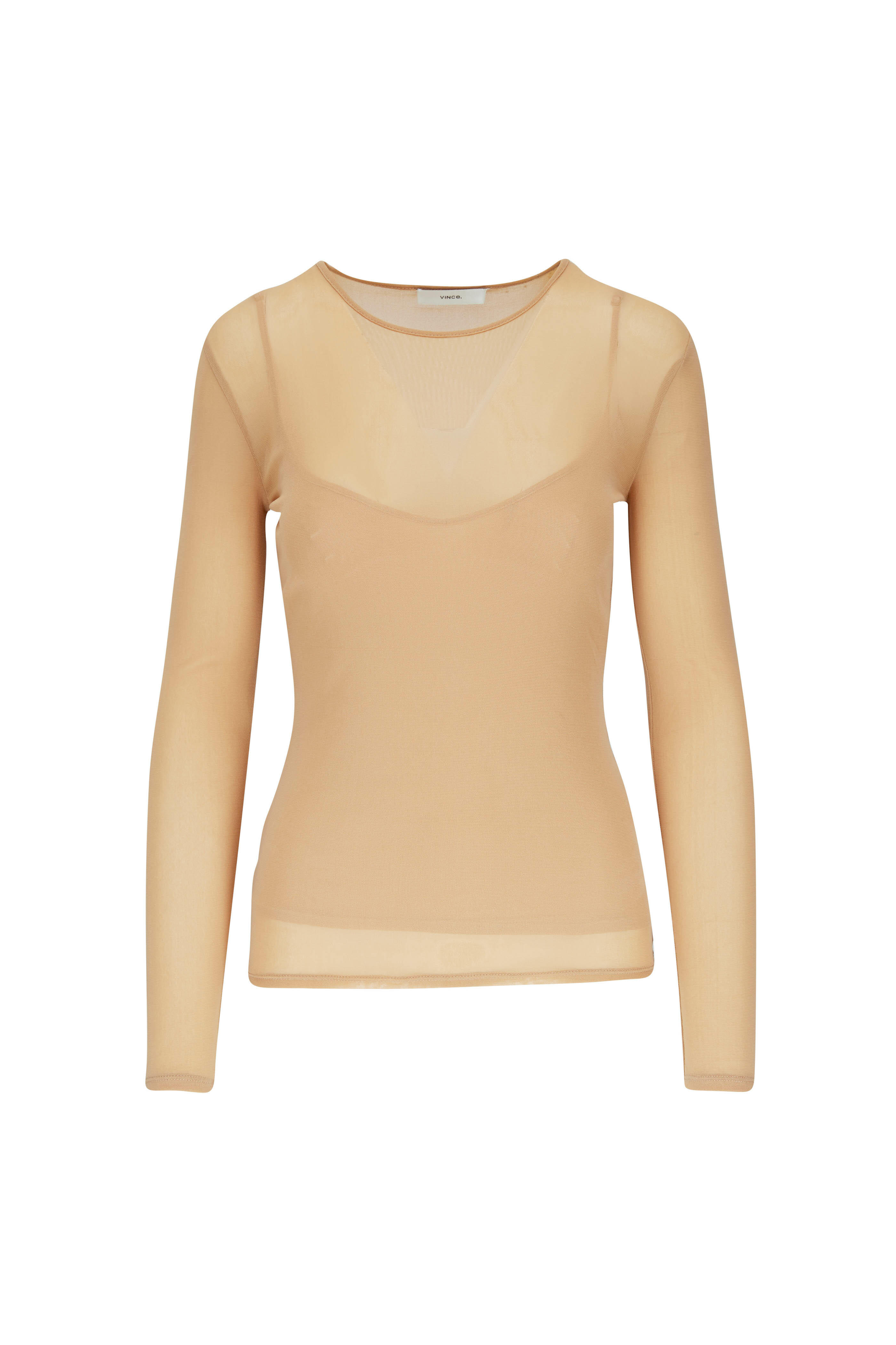 Sheer gauze. Crewneck. Removable cami with adjustable straps. Imported. Hand wash.