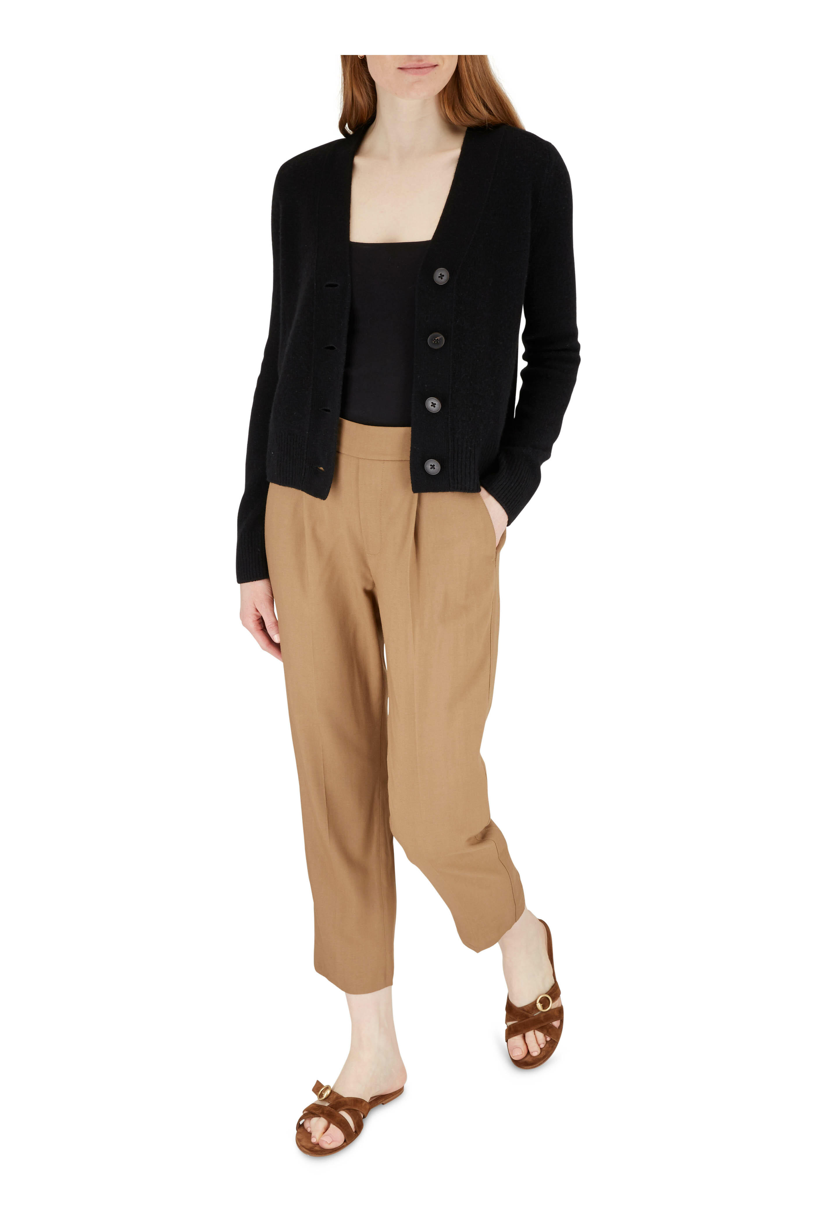 Black Cashmere Shrunken Button Cardigan