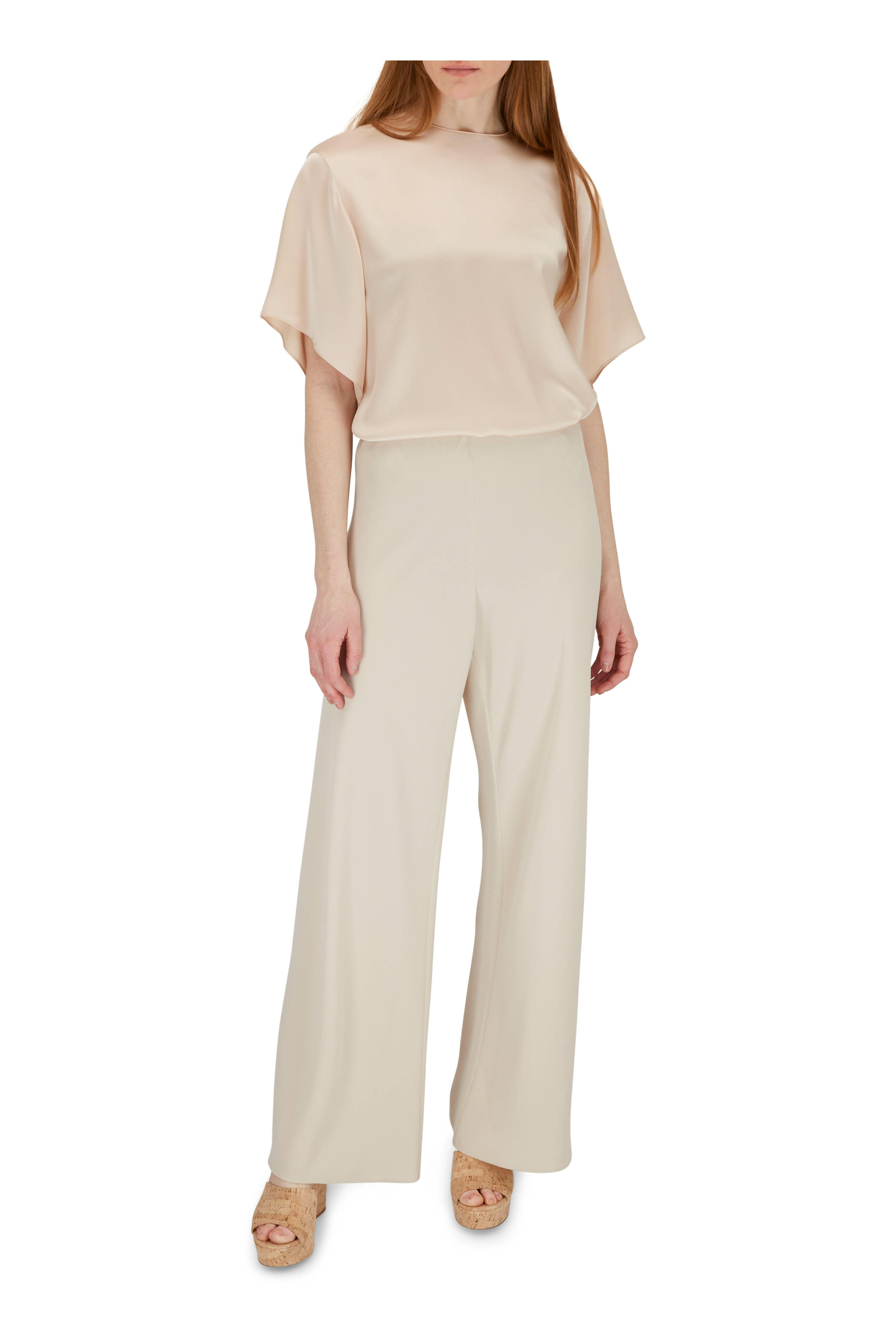 Natural cork upper. Leather lining. Cushioned footbed. Leather sole. Imported. 5" x 1.5" wedge platform.
