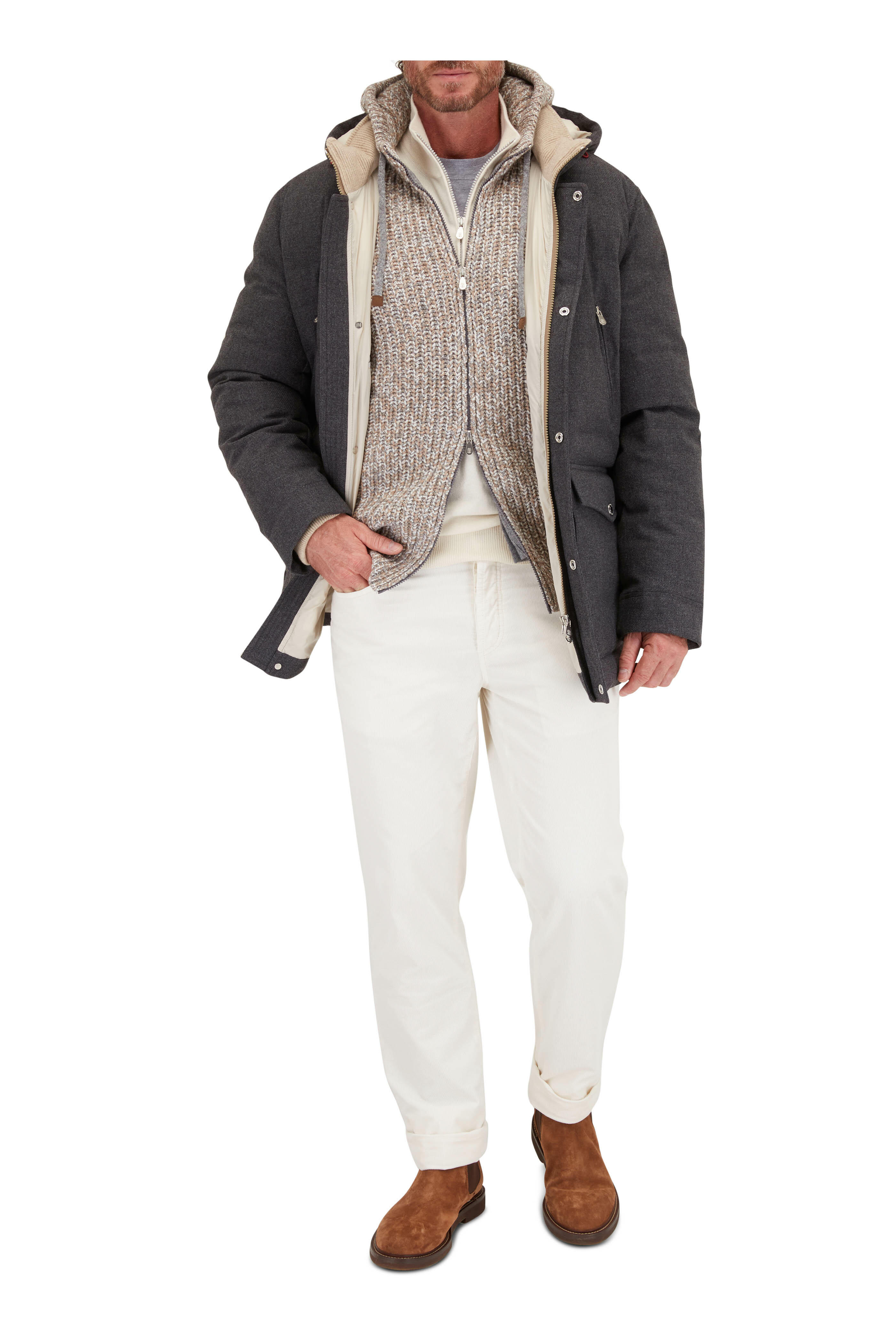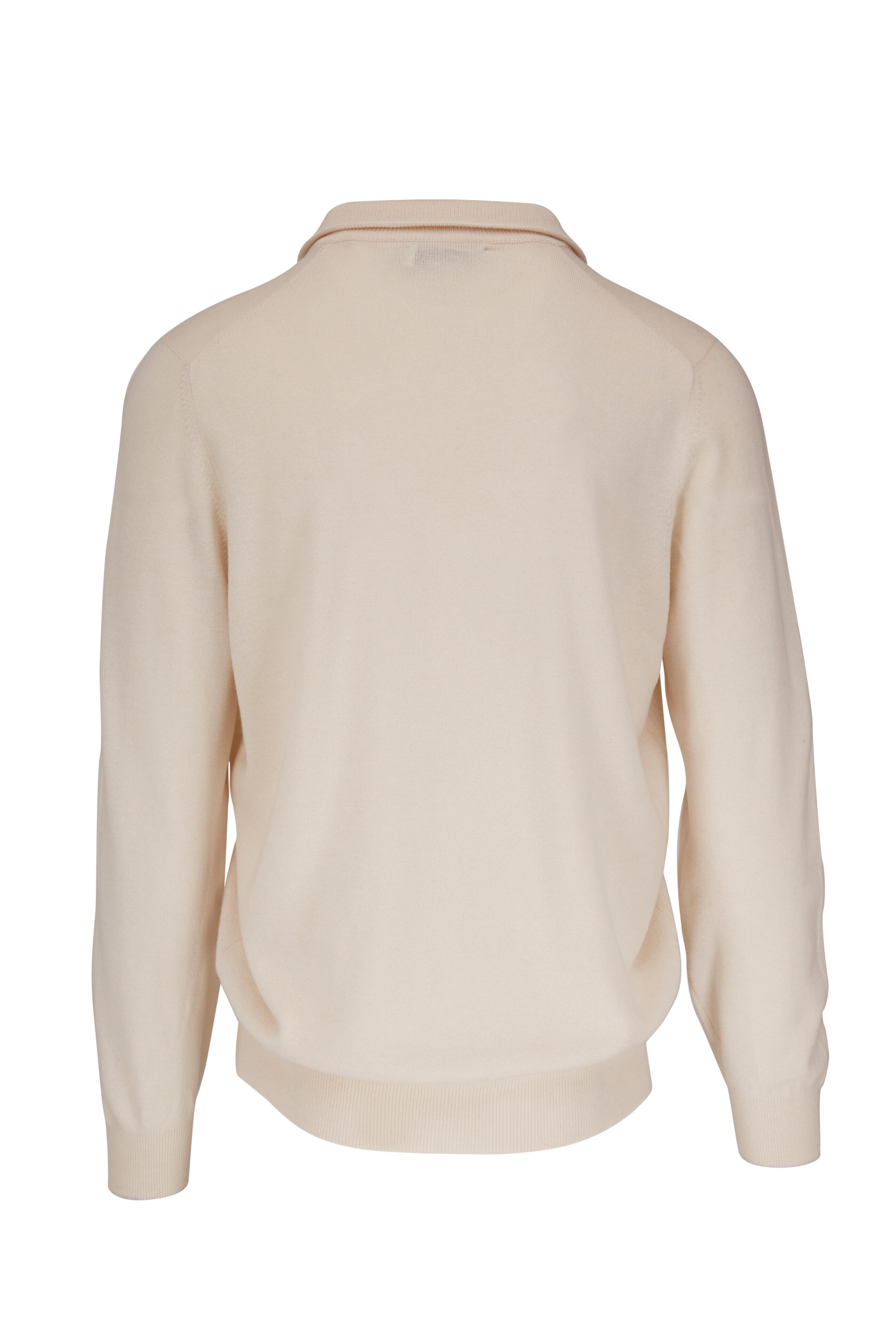 Stand collar. Quarter-zip placket. Ribbed trim. Made in Italy. 100% cashmere. Hand wash.