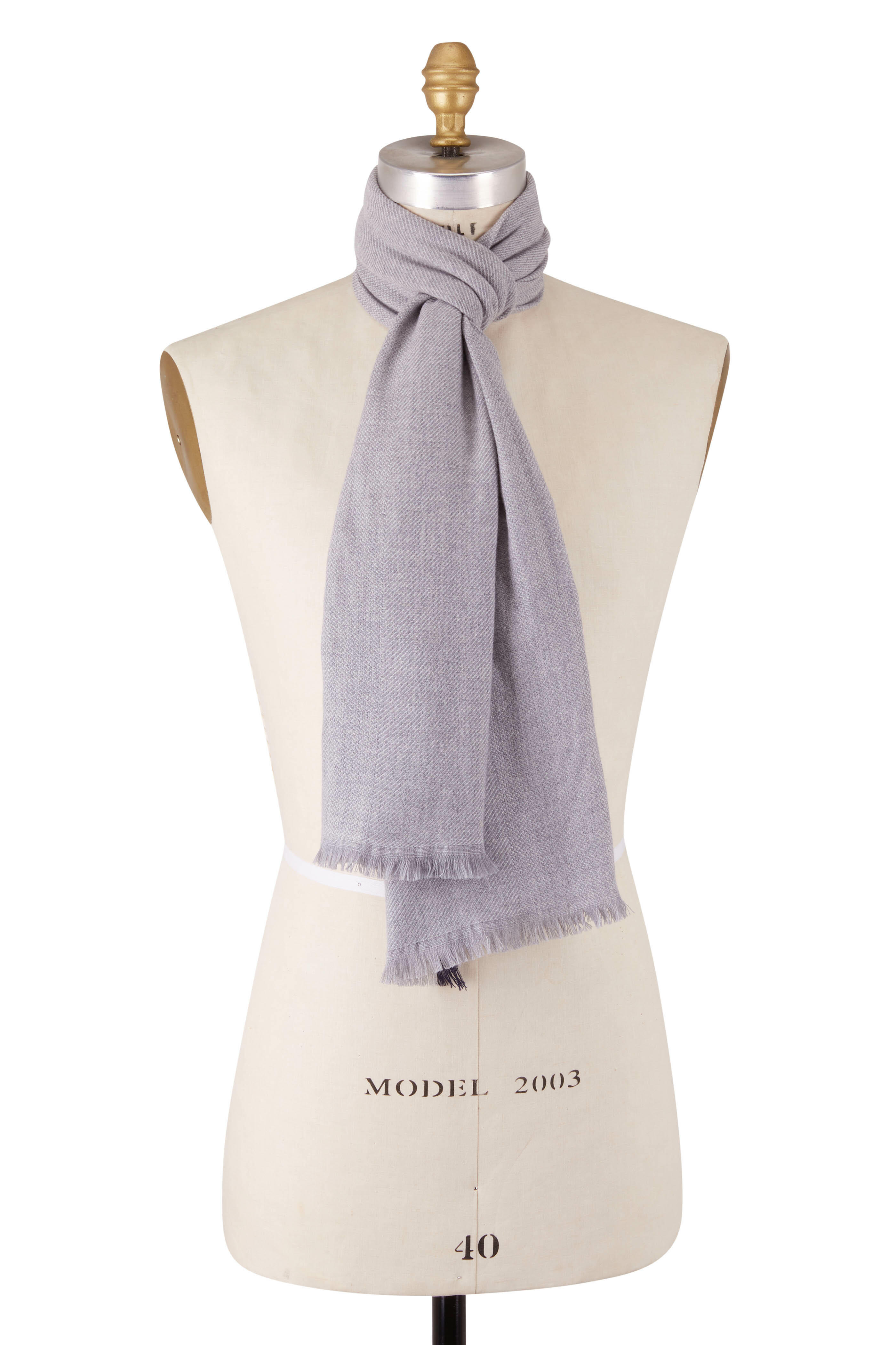 Light Gray Wool & Cashmere Tipped Scarf
