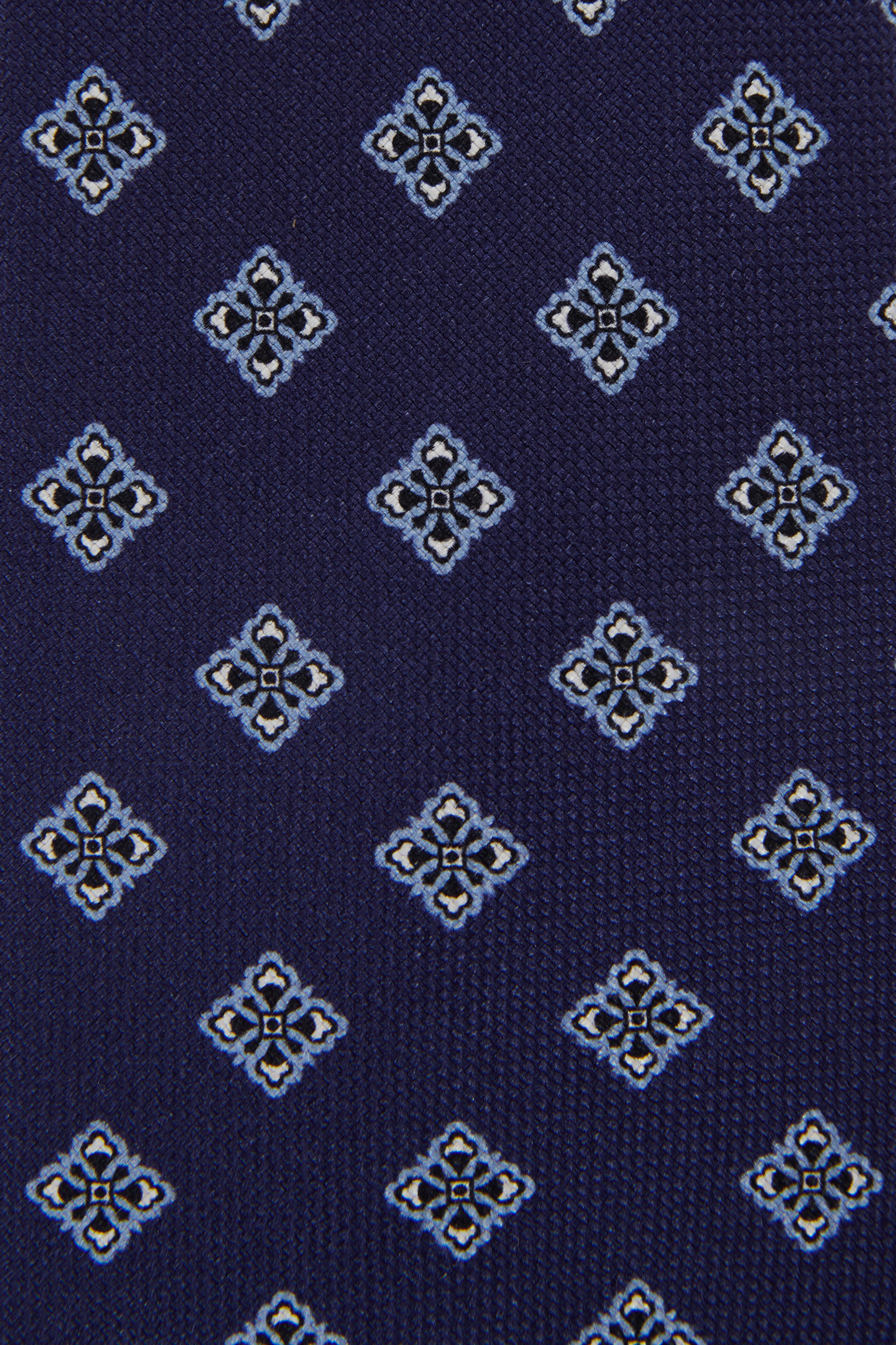 Blue Geometric Print Silk Necktie