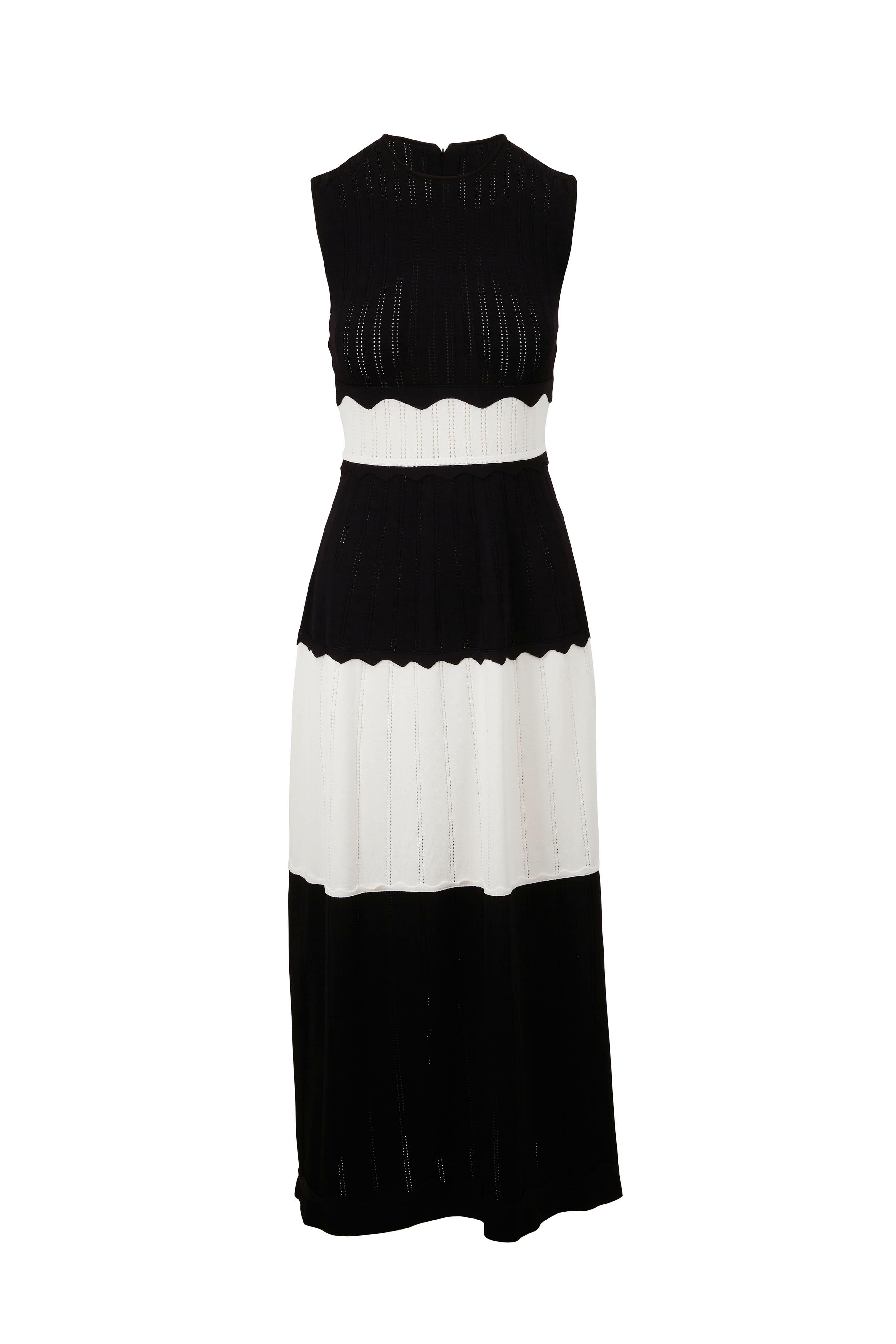 Crewneck. Sleeveless. Hidden back zipper. Imported. Fit and flare. 72% viscose, 27% nylon, 1% spandex. Dry clean.