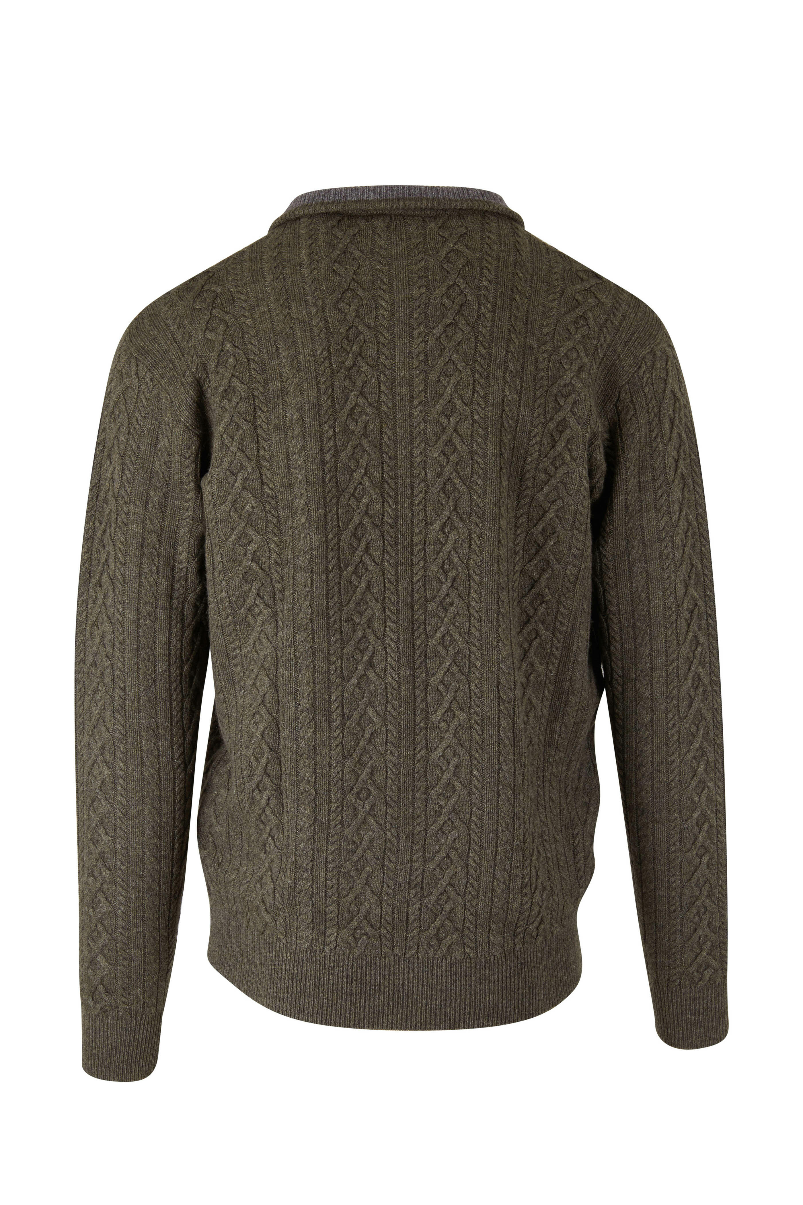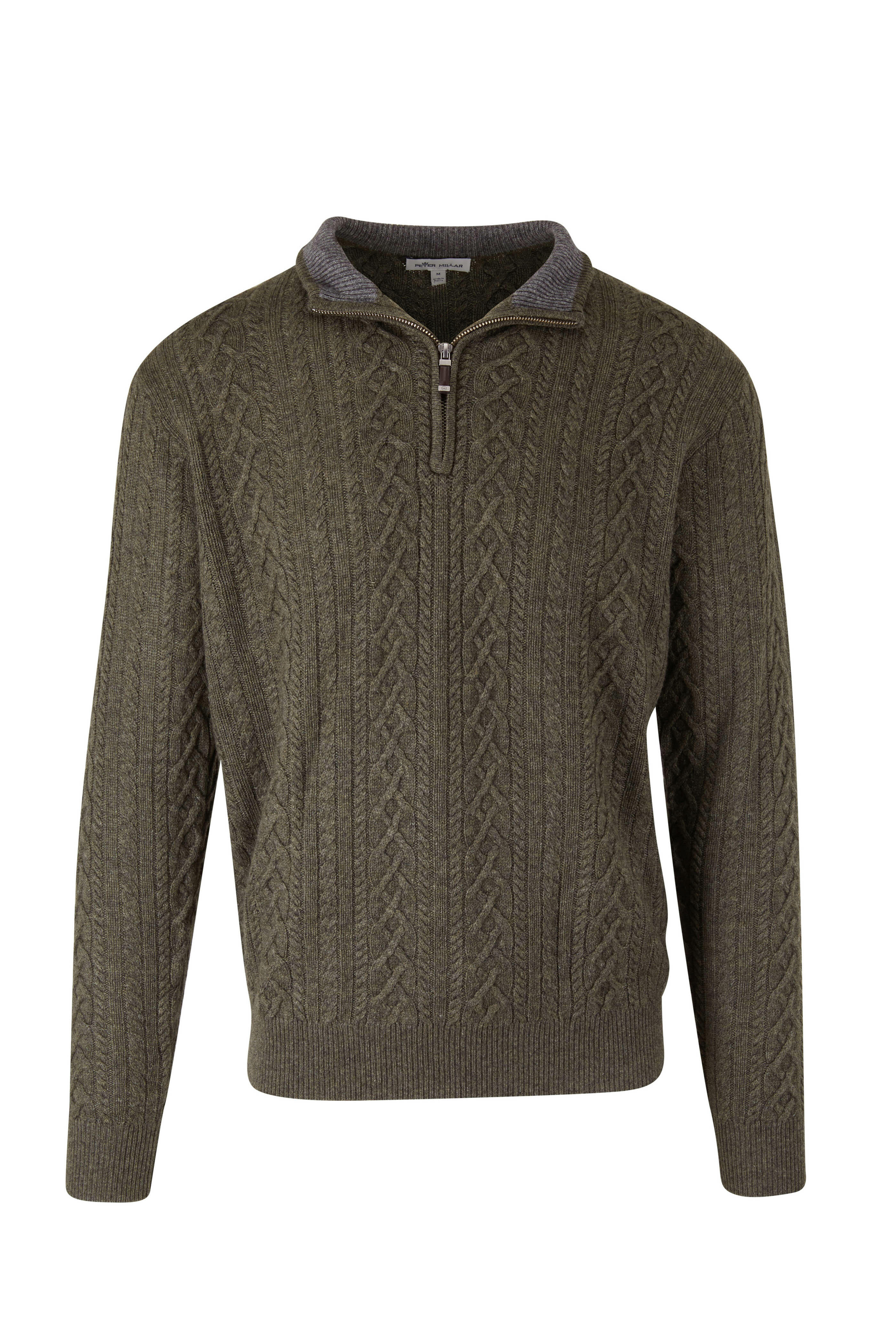 Olive Leaf Cable Knit Quarter Zip Pullover
