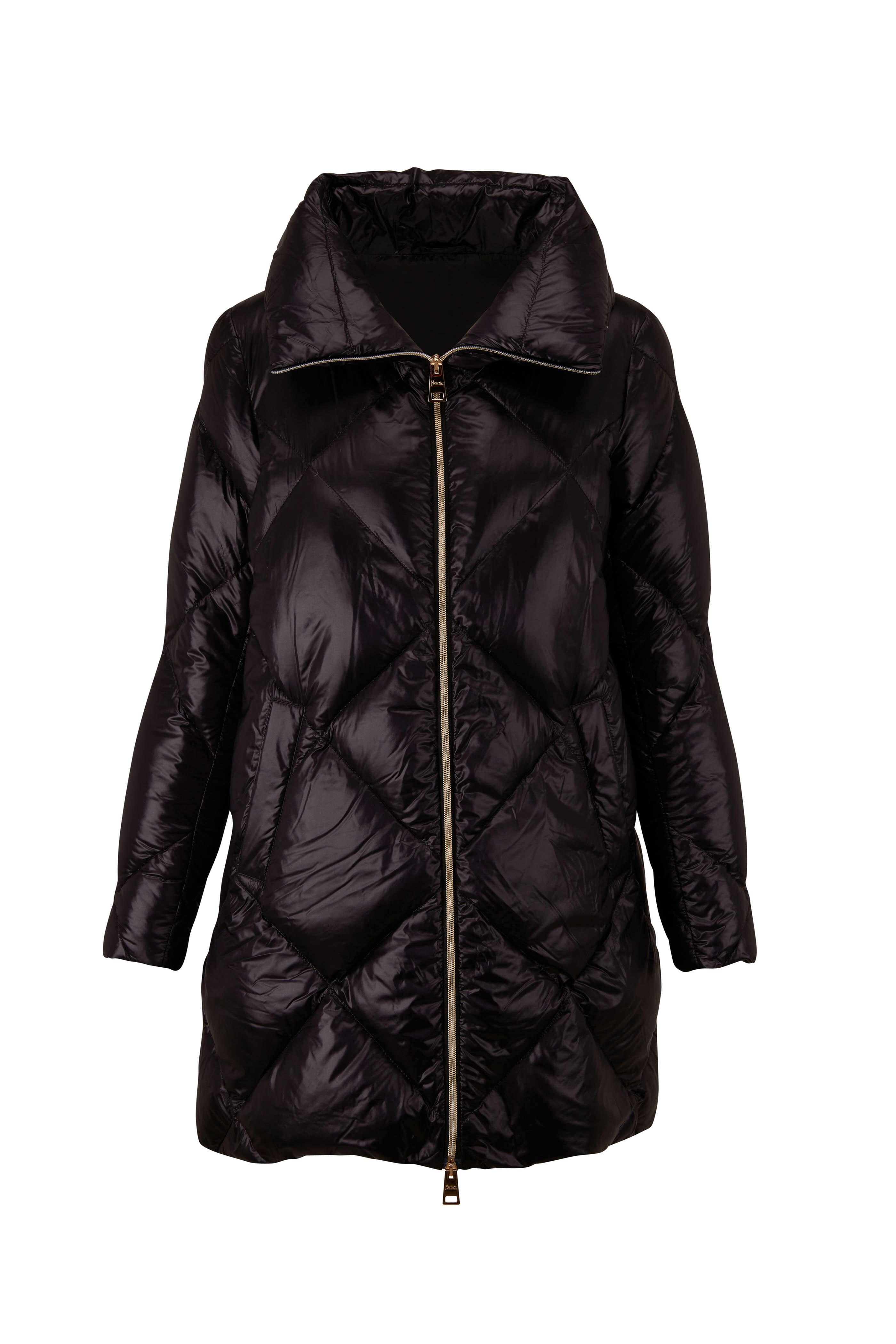 Black Ultralight Nylon Diamond Quilted Coat