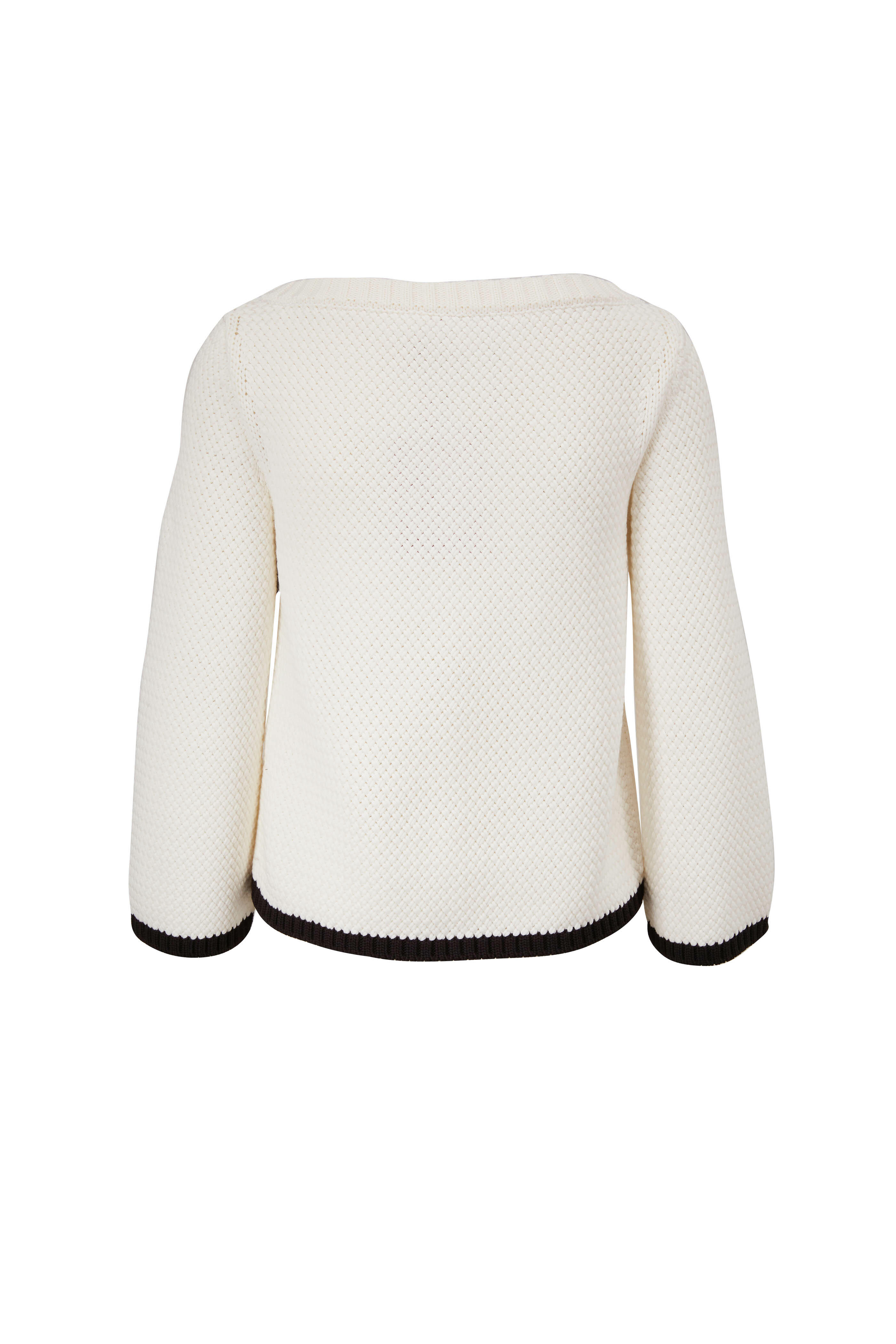 Boatneck. Contrasting trim. Made in Italy. About 22" from shoulder to hem. 55% cotton, 45% polyamide. Dry clean.