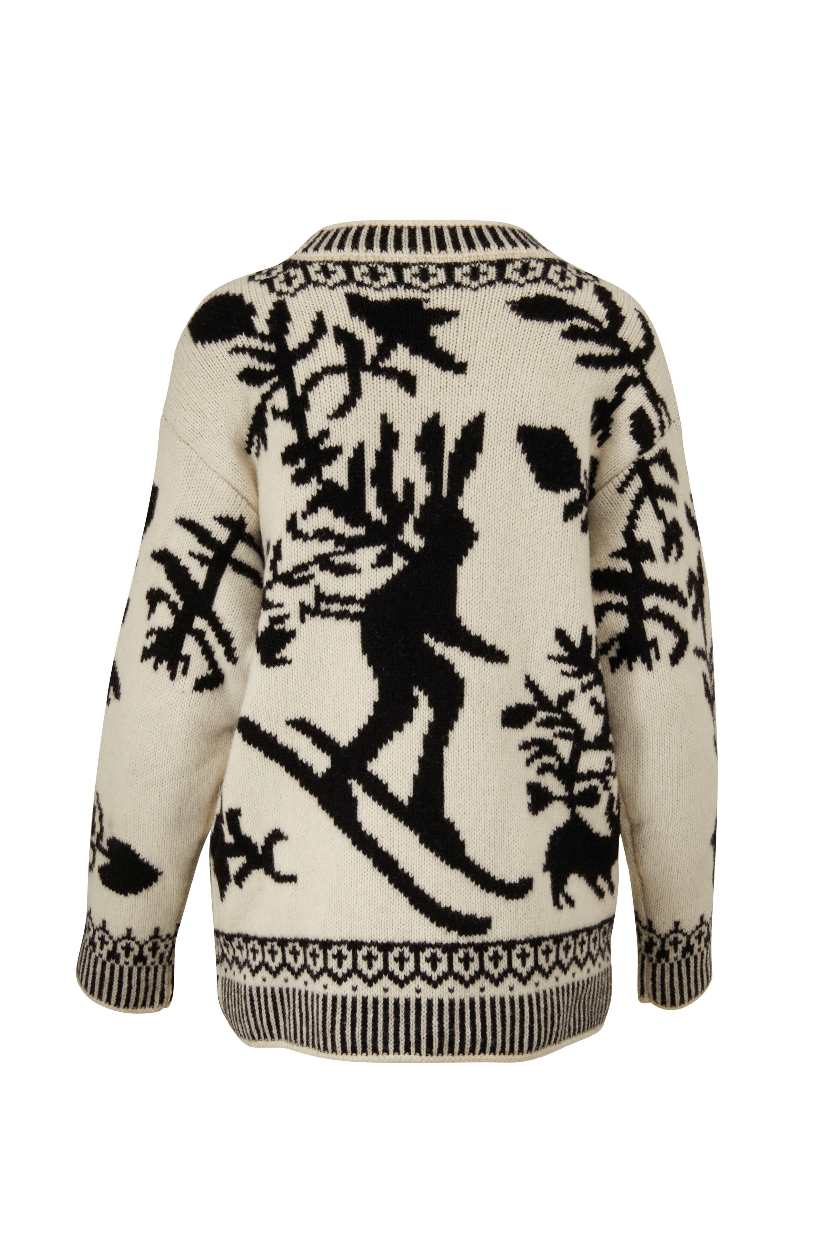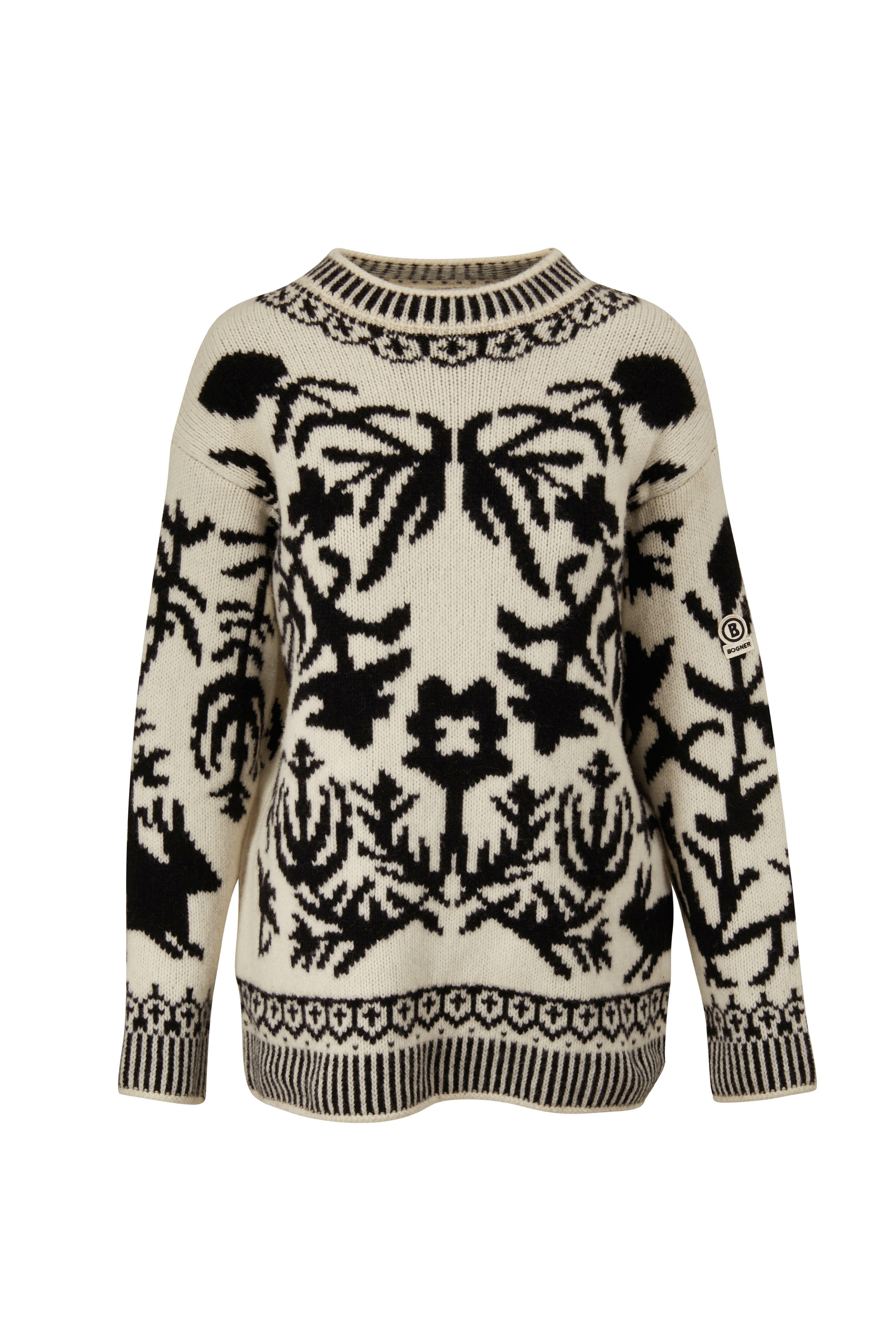 Round neck. Drop shoulders. Ribbed trim. Imported. 100% virgin wool. Hand wash.