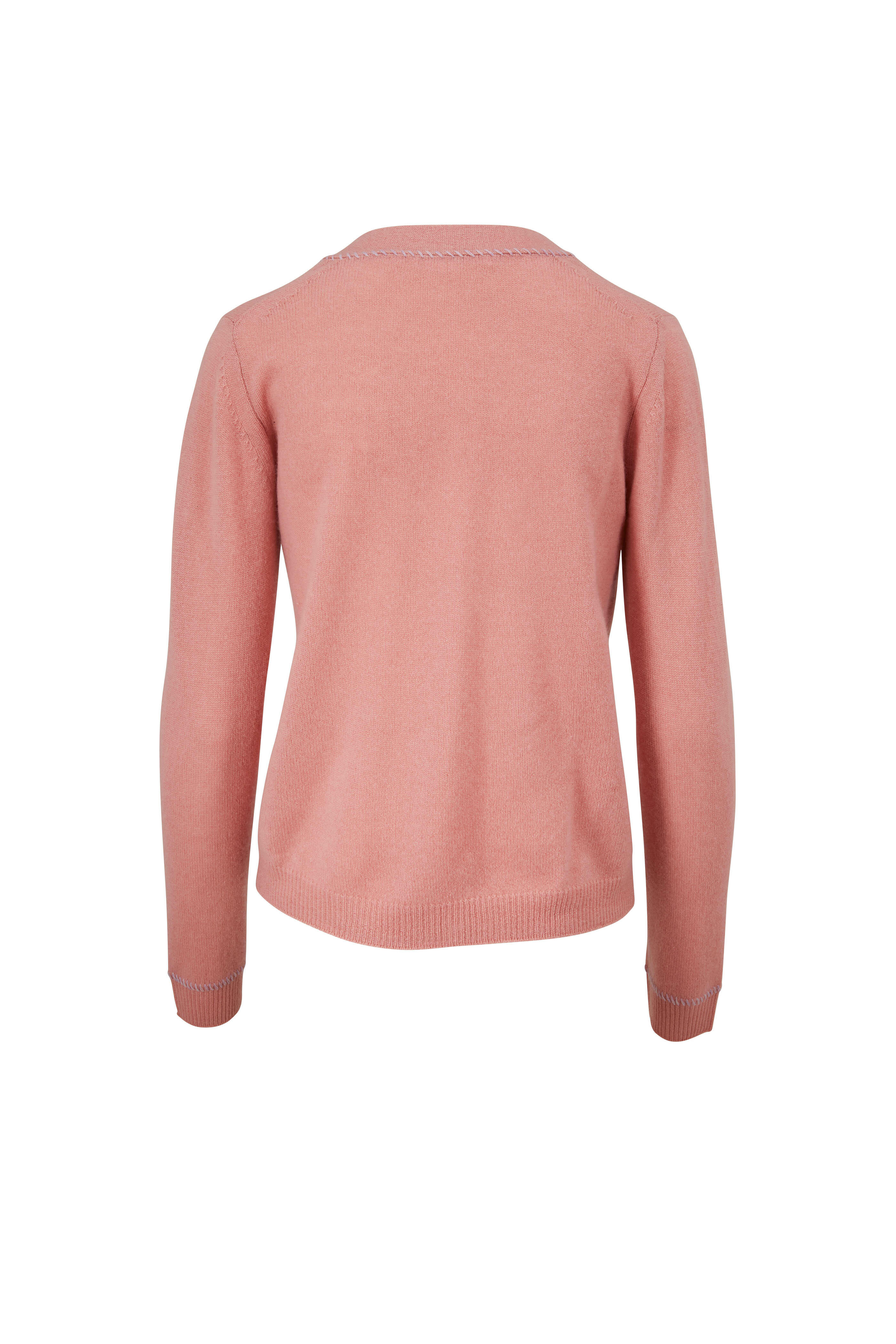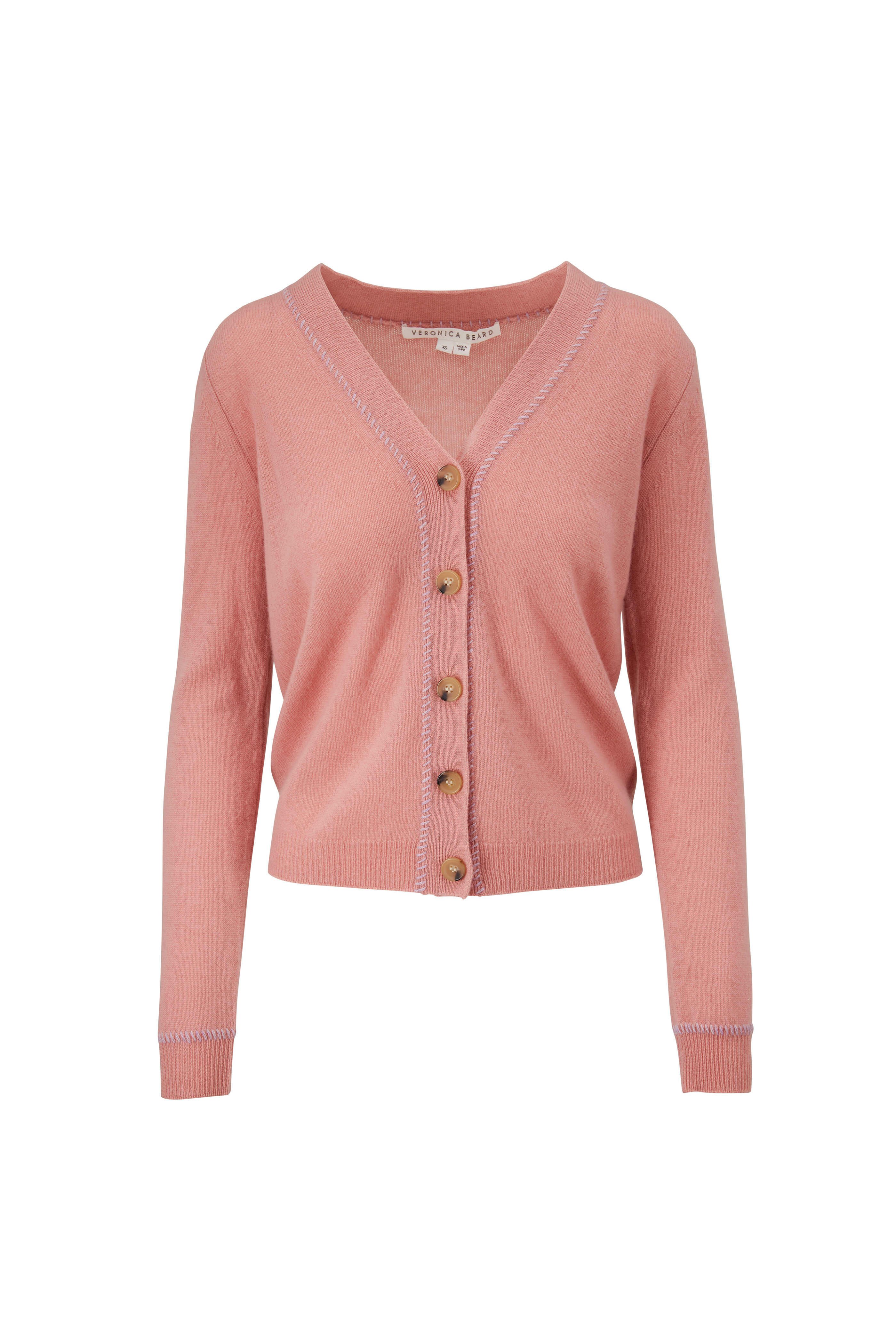 V-neckline. Button placket. Ribbed trim. Imported. 100% cashmere. Dry clean.