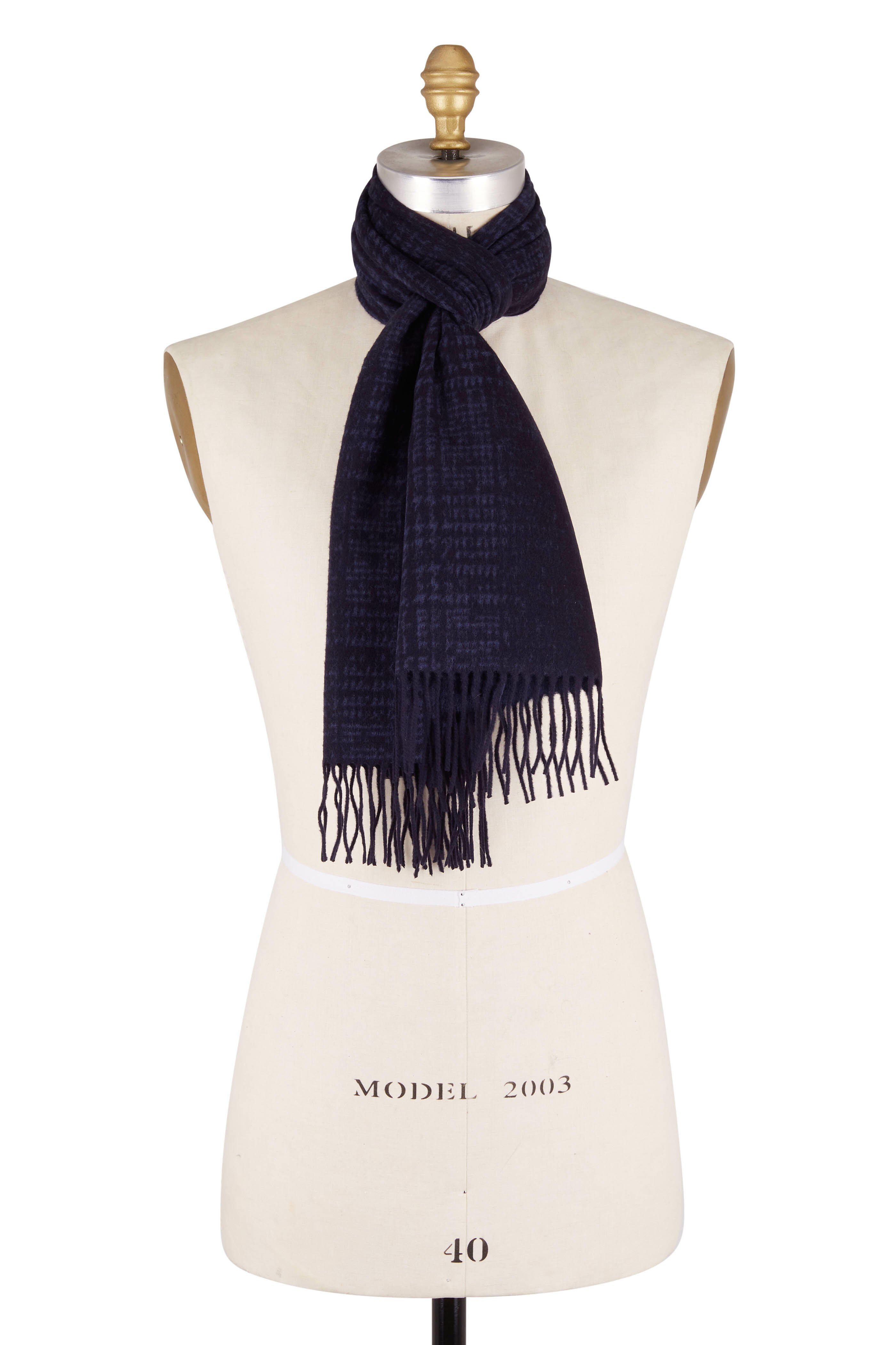 Navy Geometric Silk Scarf