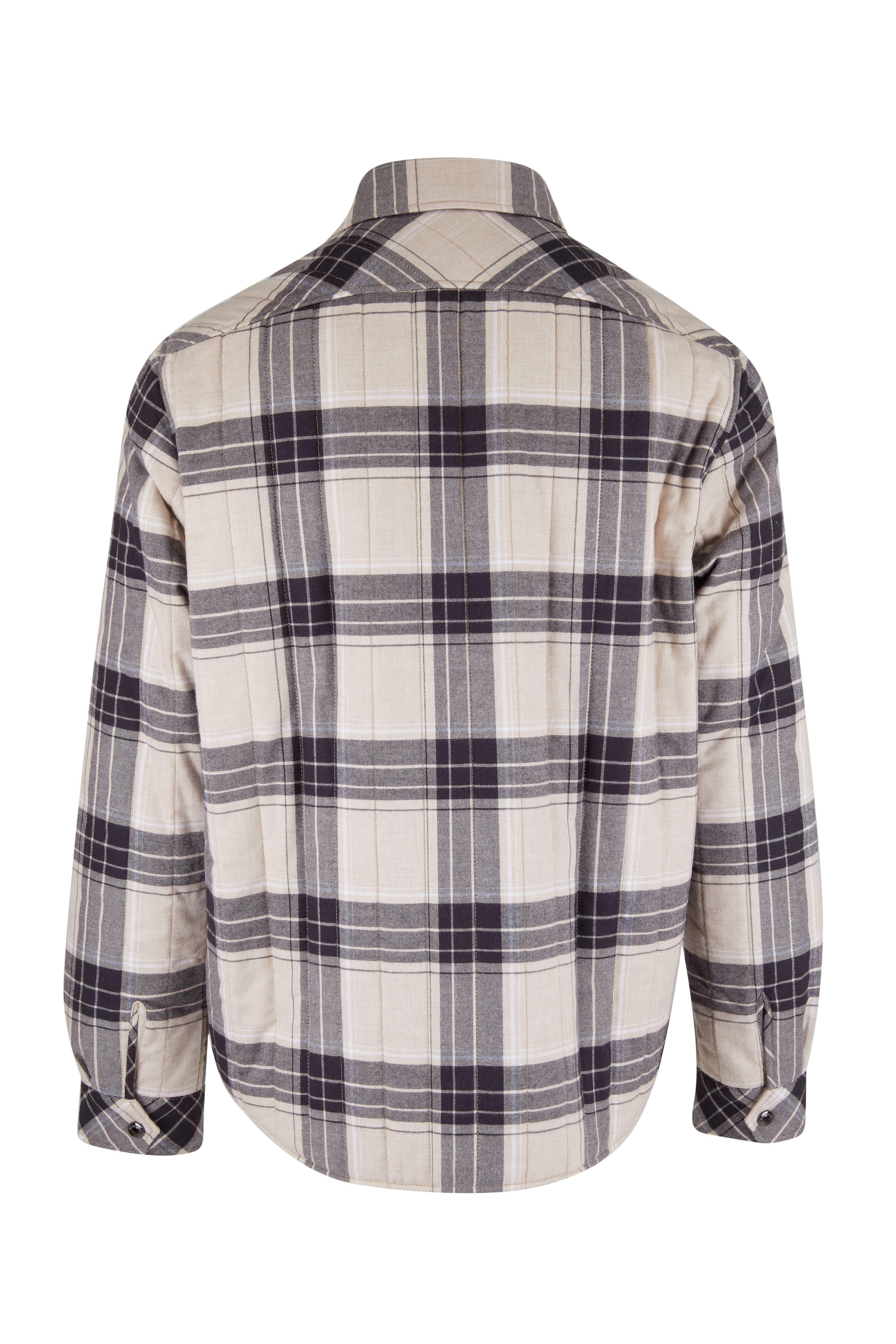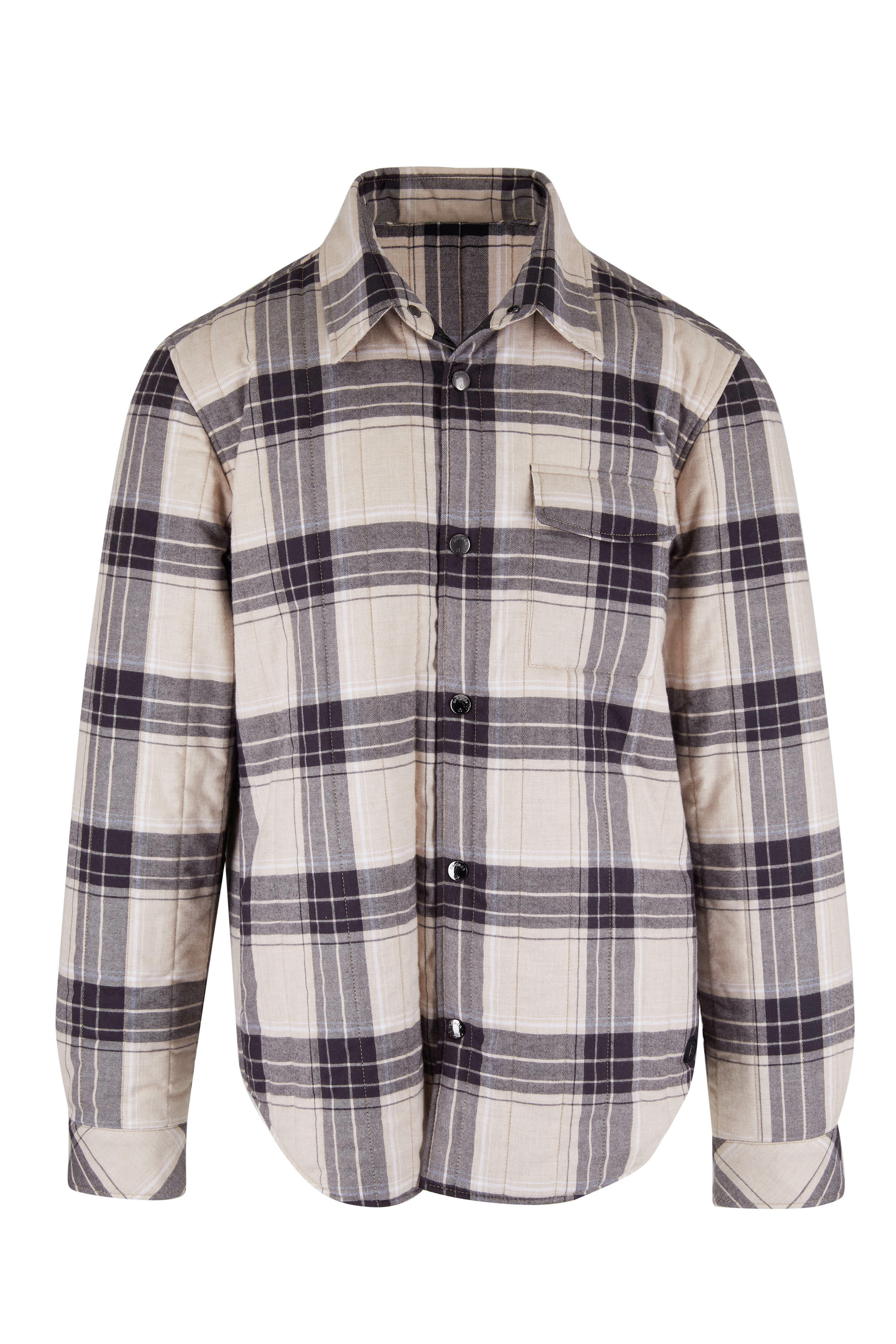 Spread collar. Single snap cuffs. Chest snap flap pocket; lower slip pockets. Imported. 80% cotton, 20% wool. Machine wash.