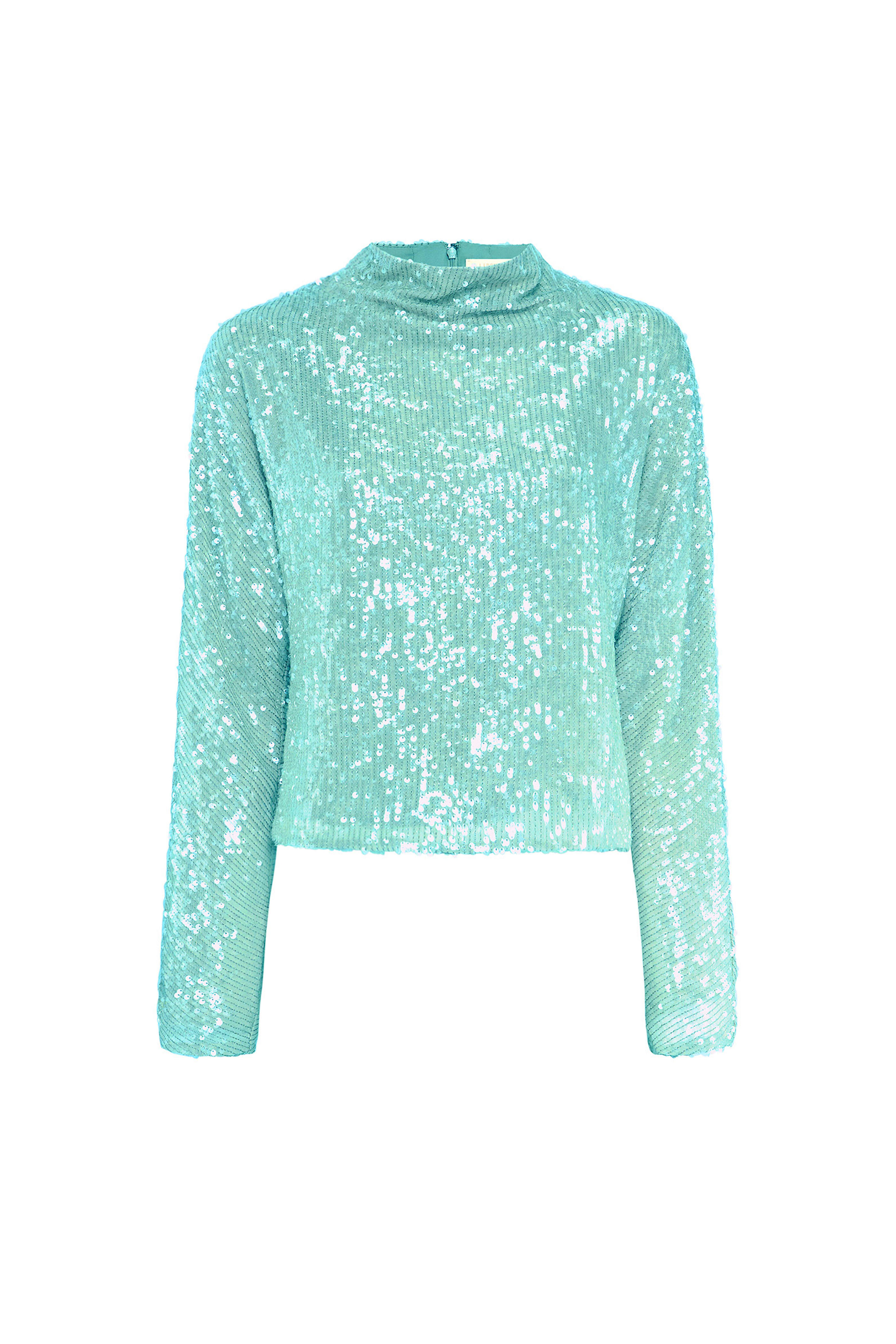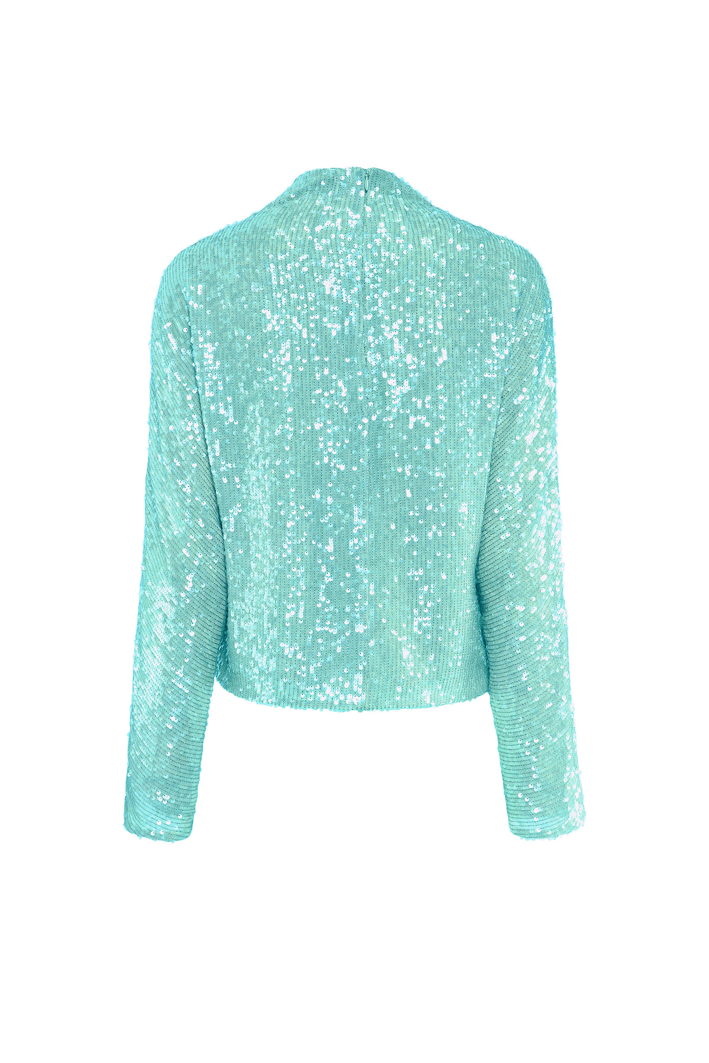 Aqua Sequin Viscose Cropped Relaxed Dolman Top
