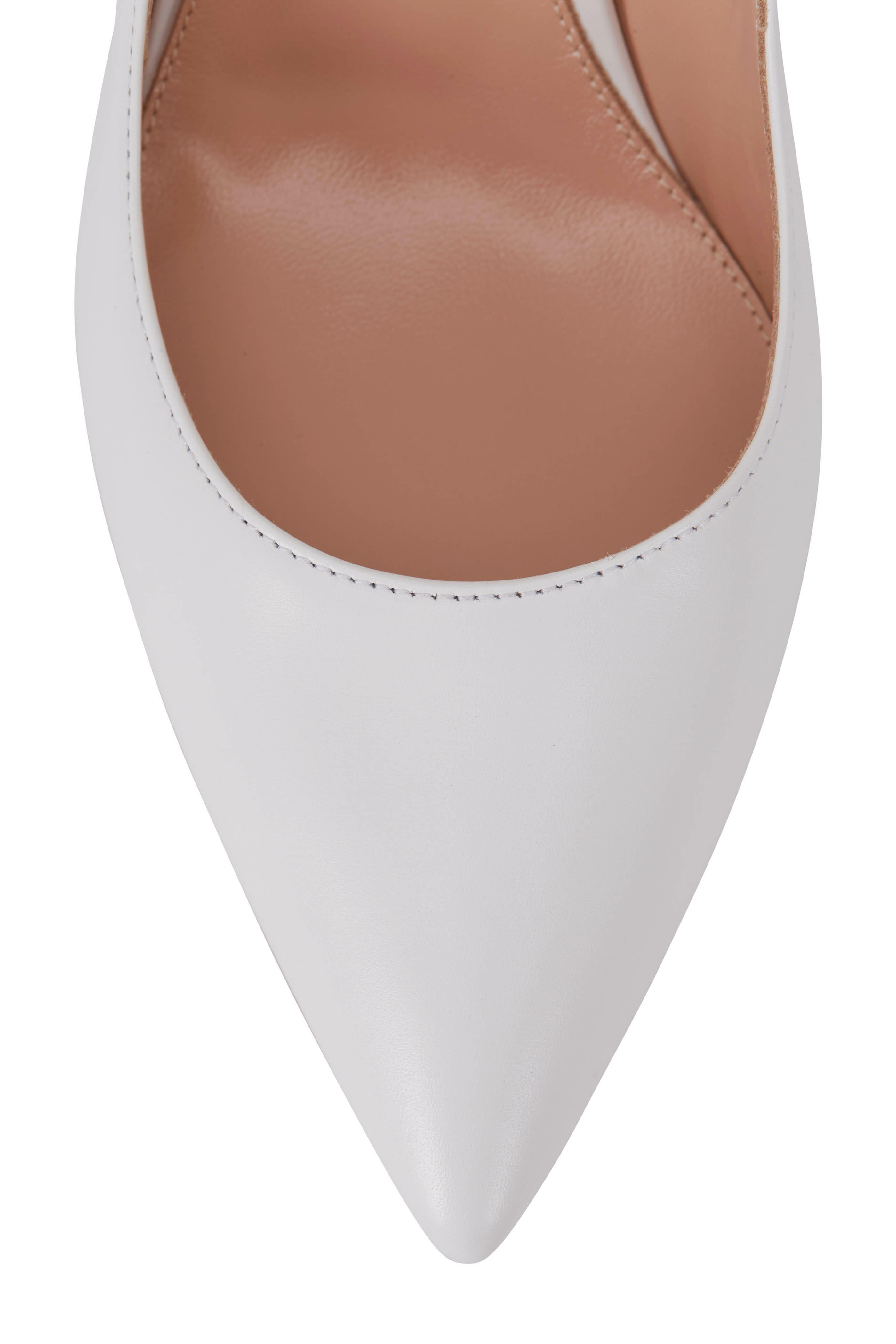 Soft calf leather upper. Pointed toe. Self-covered heel. Leather lining and insole. Leather sole. Made in Italy. Heel measurement: 85mm (3.3").