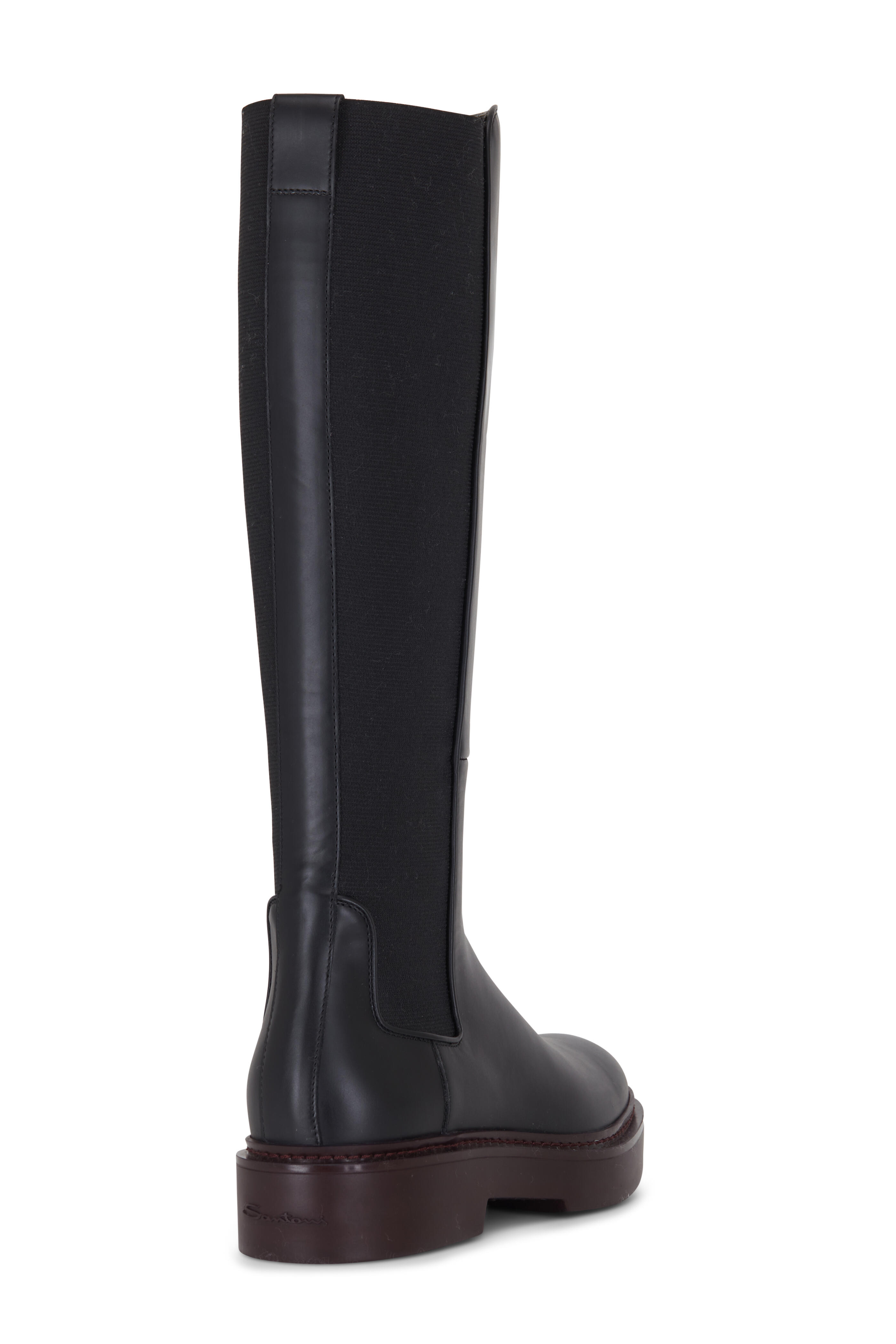 Black Leather Calf Stretch Back Tall Boot