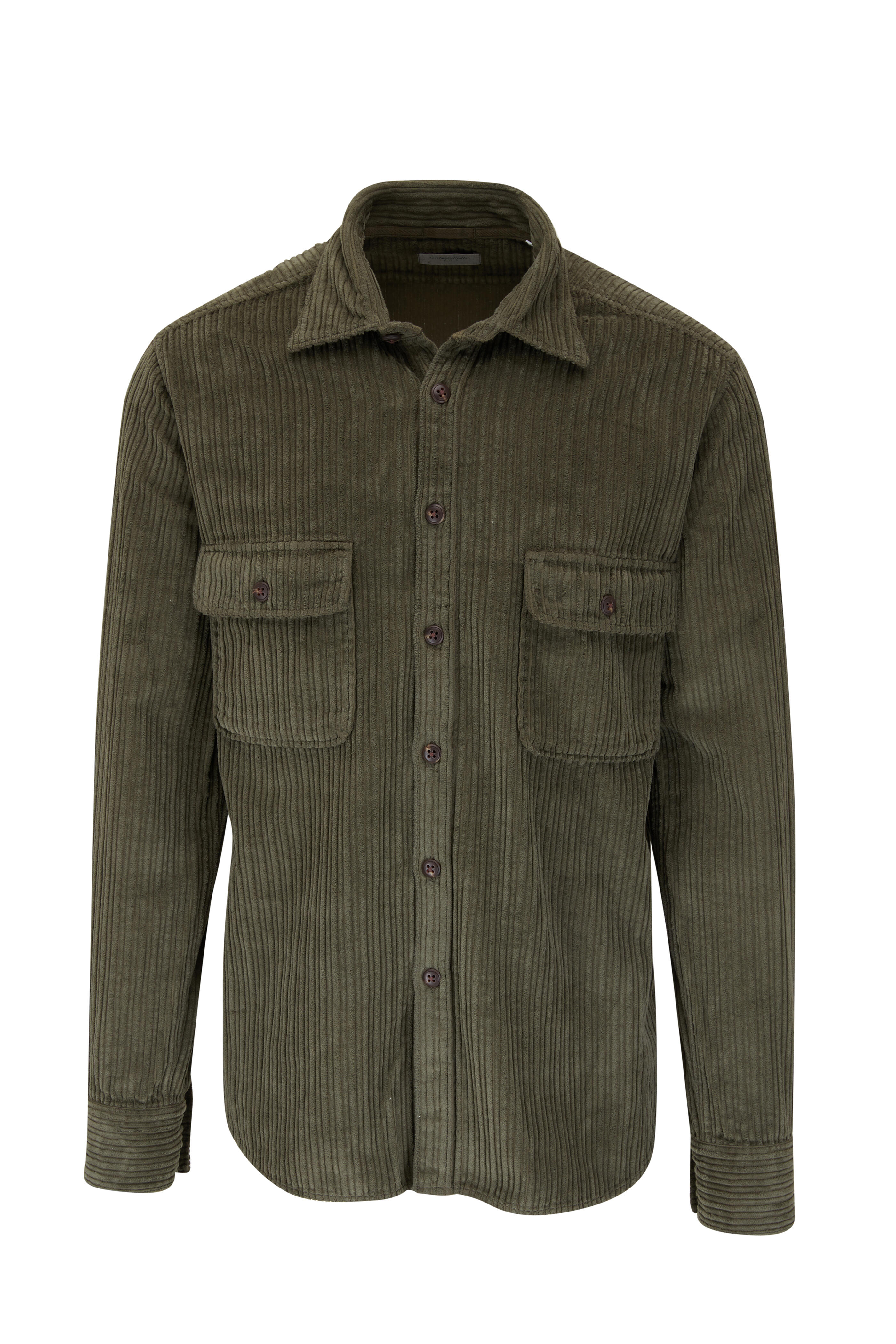 Spread collar. Button placket. Two button squared cuffs. Chest button flap pockets. Made in Italy. 100% cotton. Machine wash.