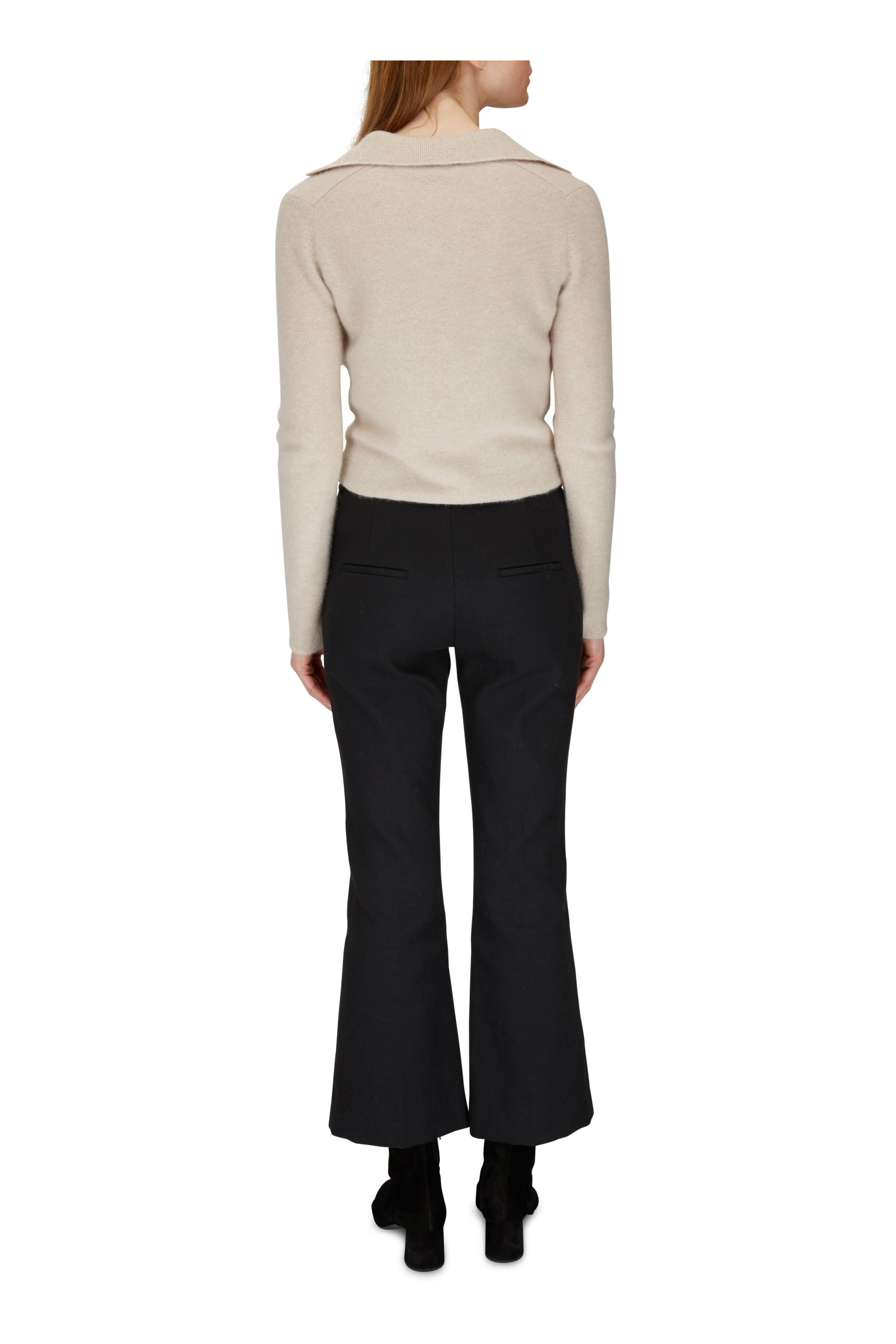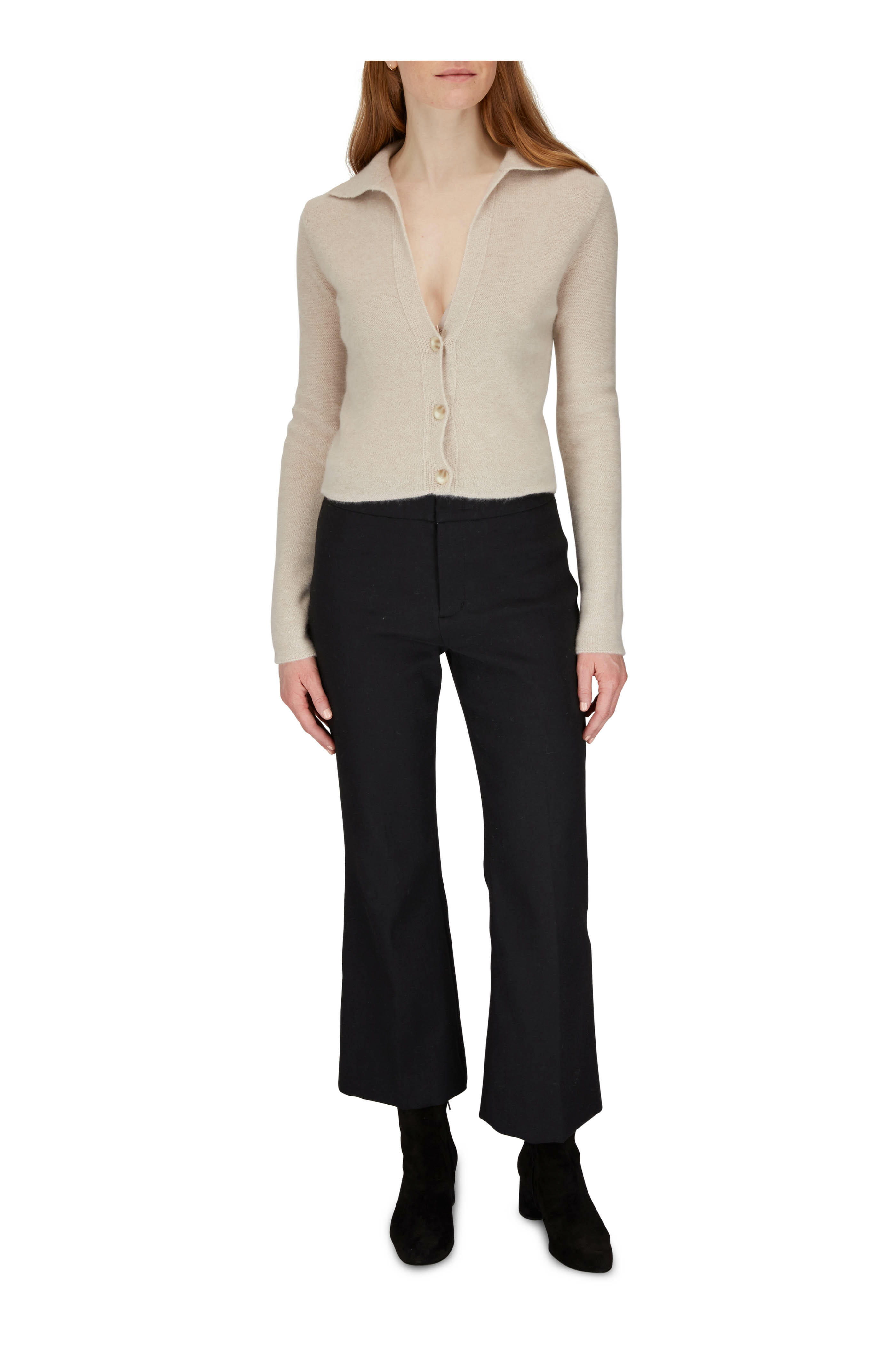 Ribbed collar. Button placket. Imported. 100% boiled cashmere. Hand wash.