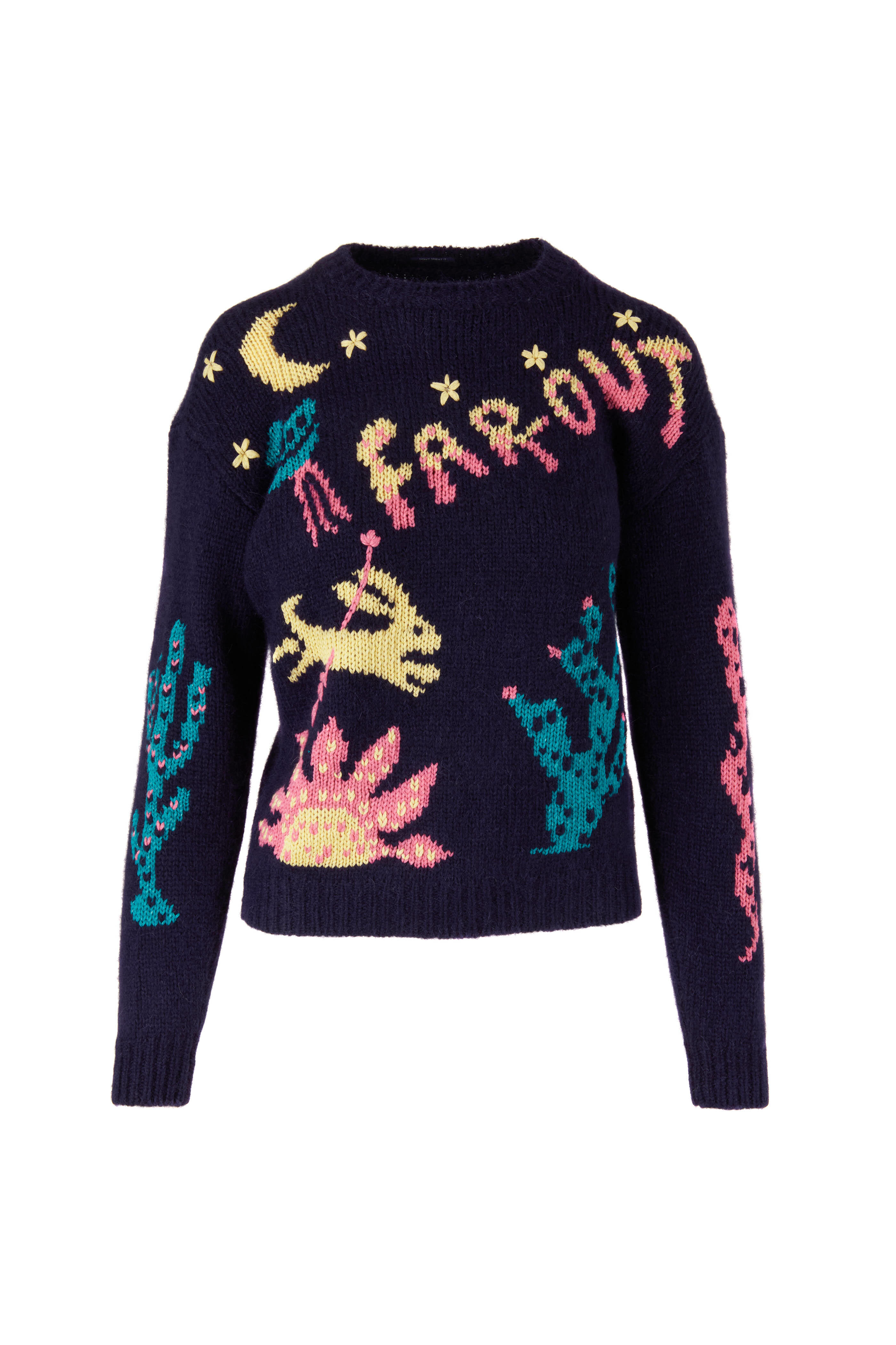 Crewneck. Ribbed trim. Made in Peru. 44% alpaca, 36% cotton, 16% polyamide, 4% merino wool. Dry clean.