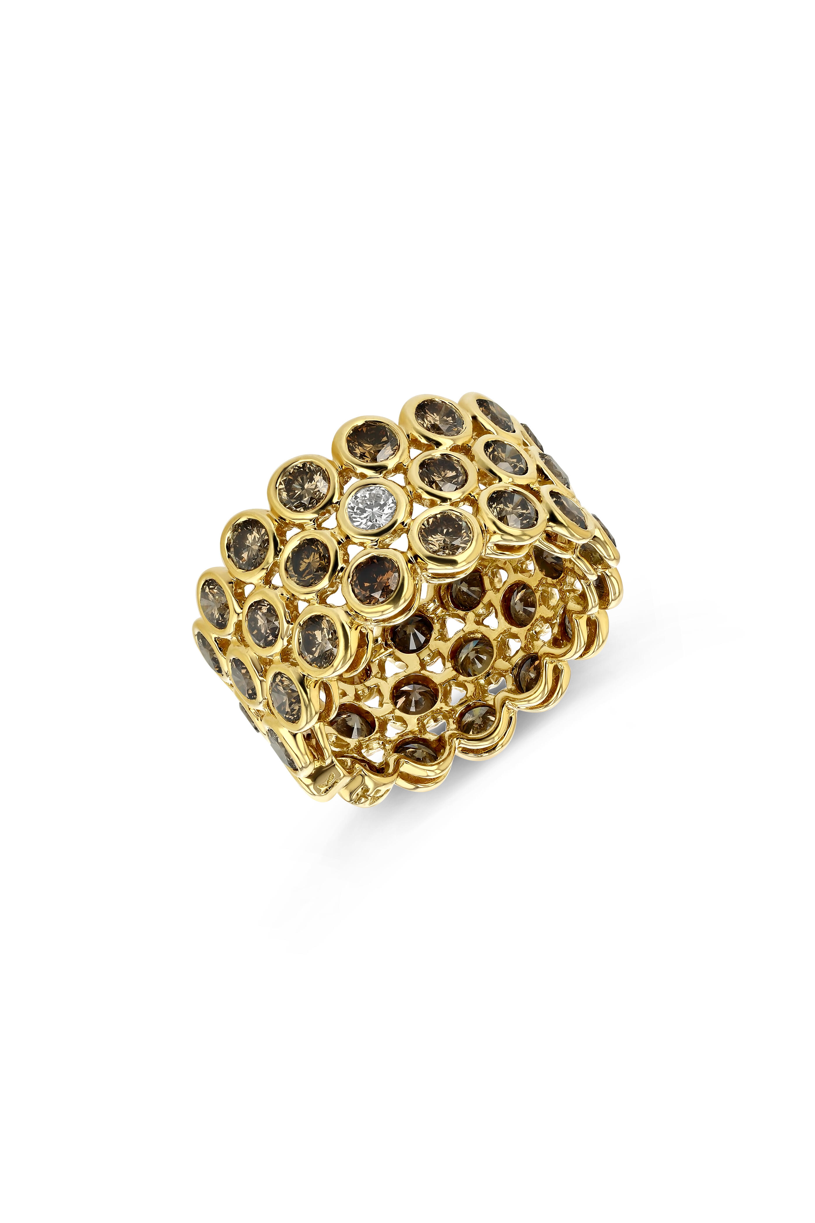 18k Yellow Gold 3 Row Champagne Diamond Ring
