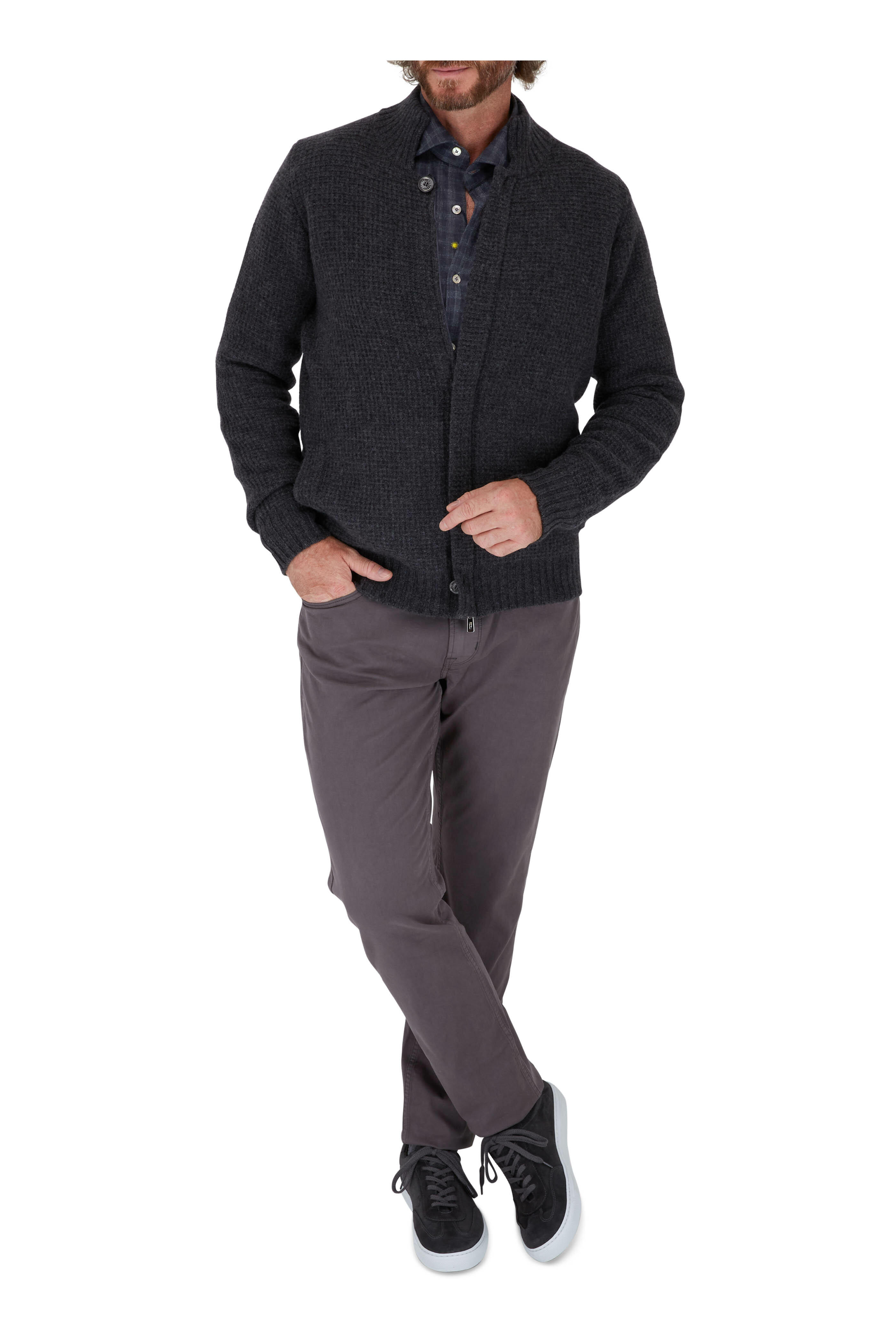 Dark Grey Cotton Check Sport Shirt