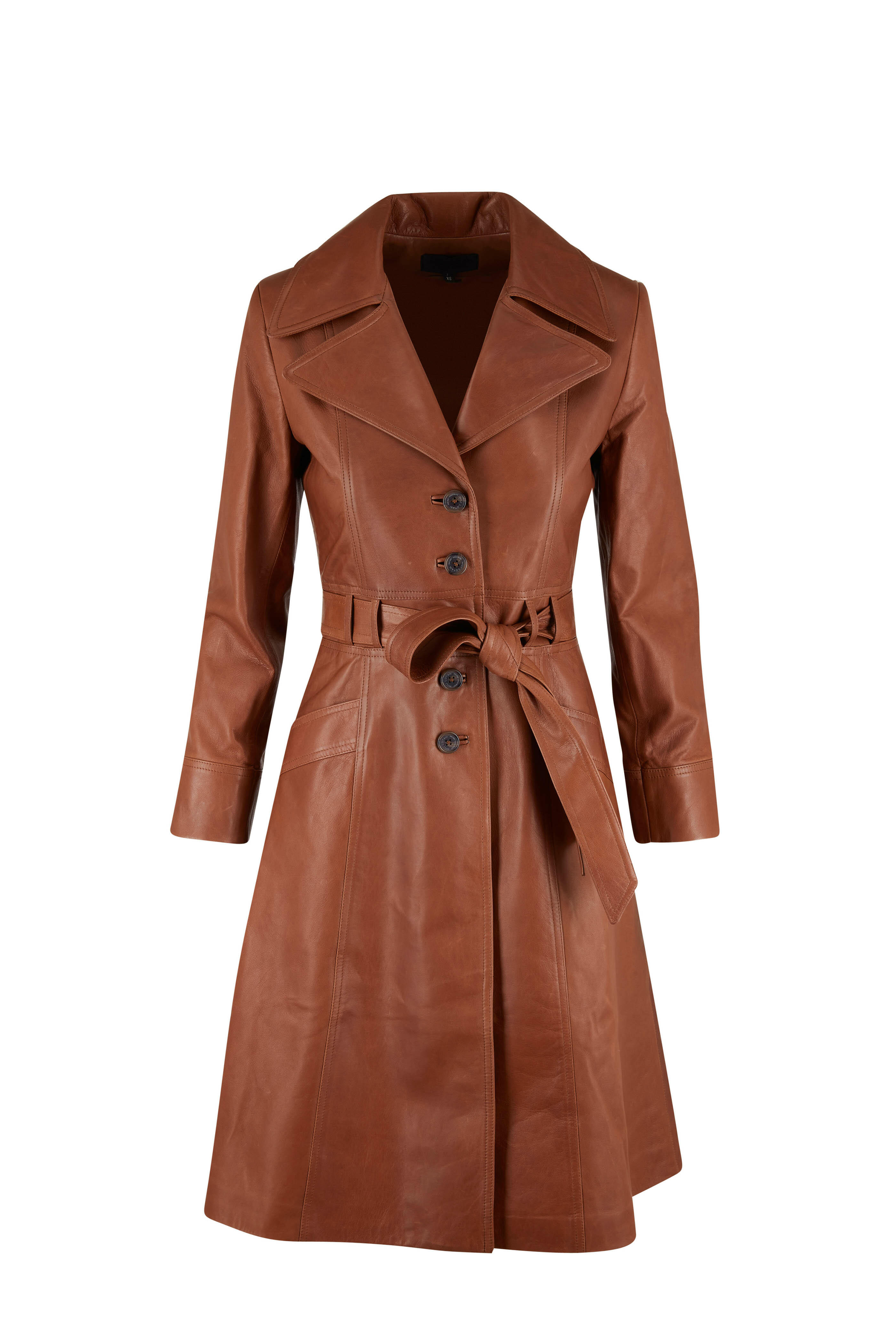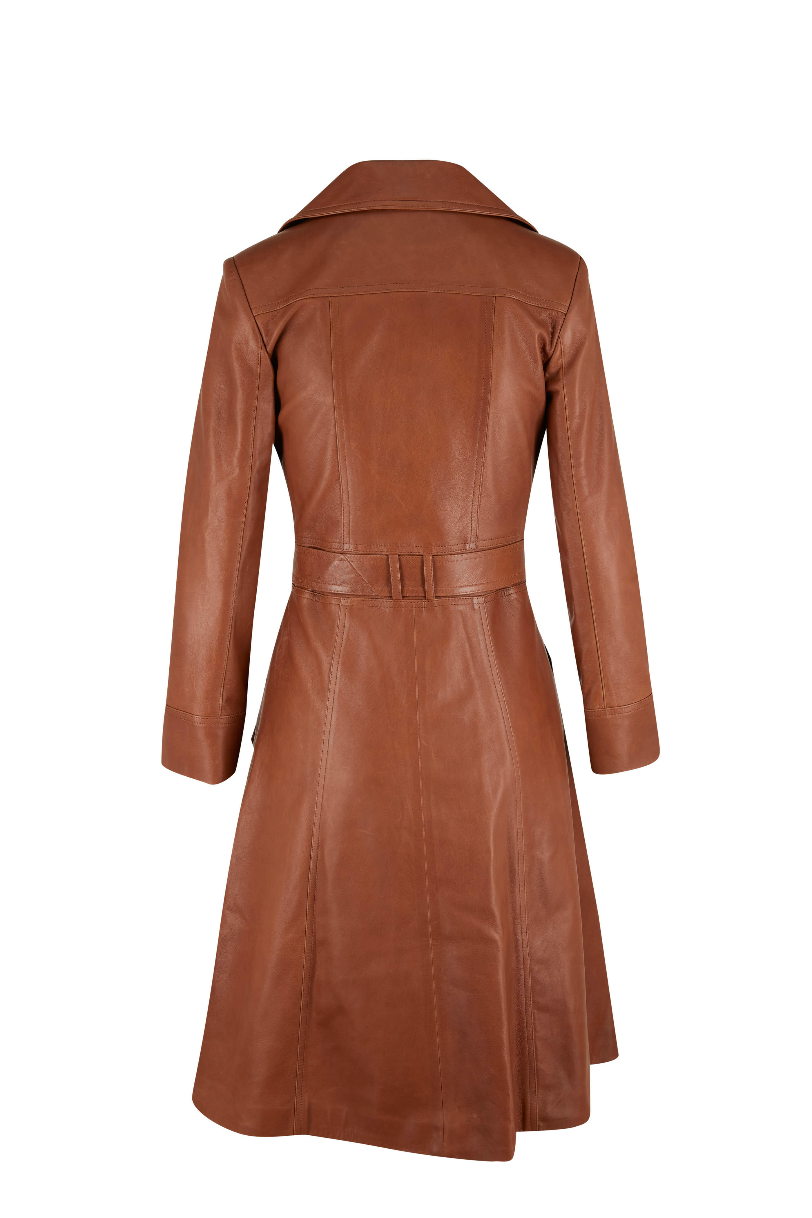 Joni Chestnut Leather Belted Coat