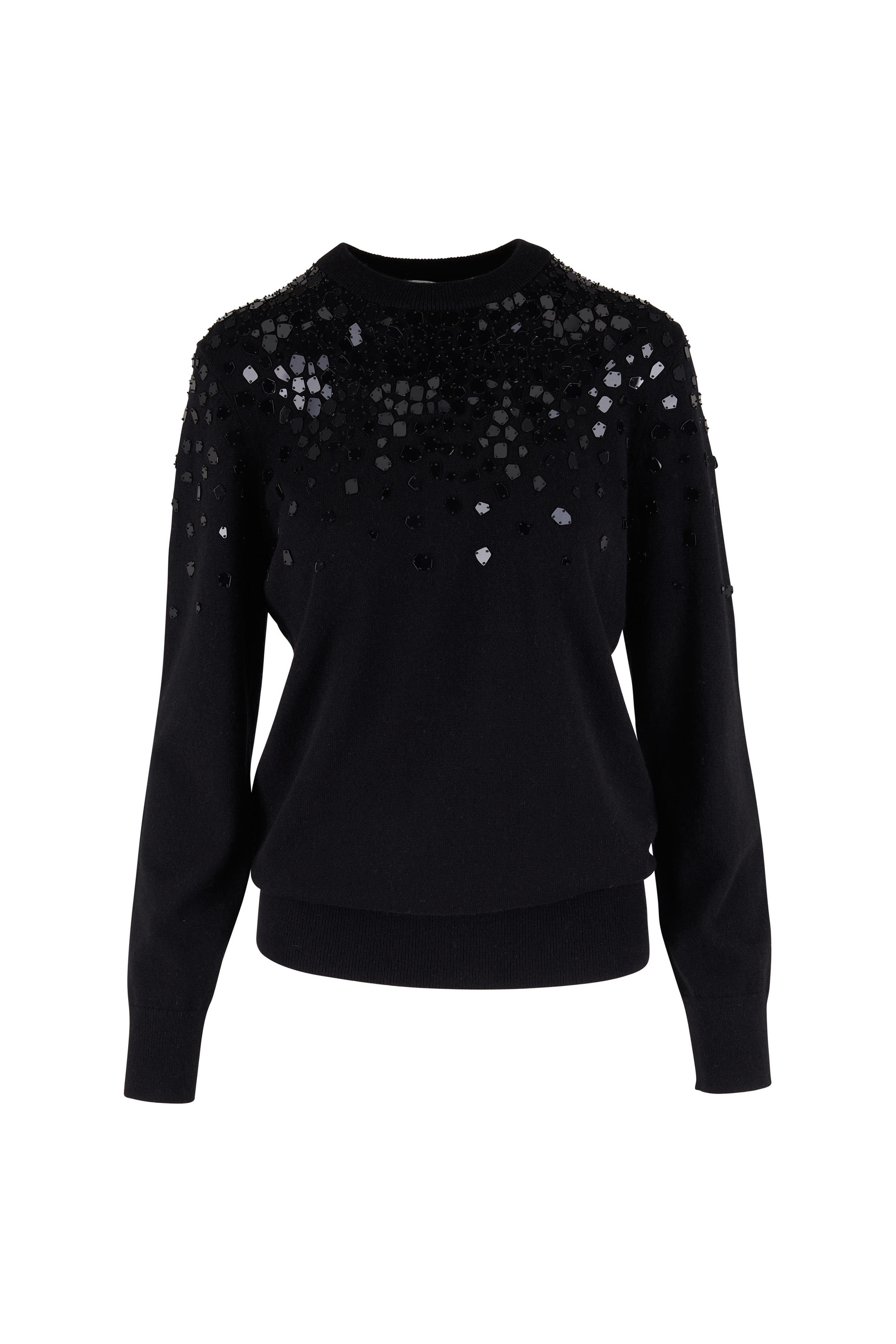Black Mirror Embellished Cashmere Crewneck Sweater