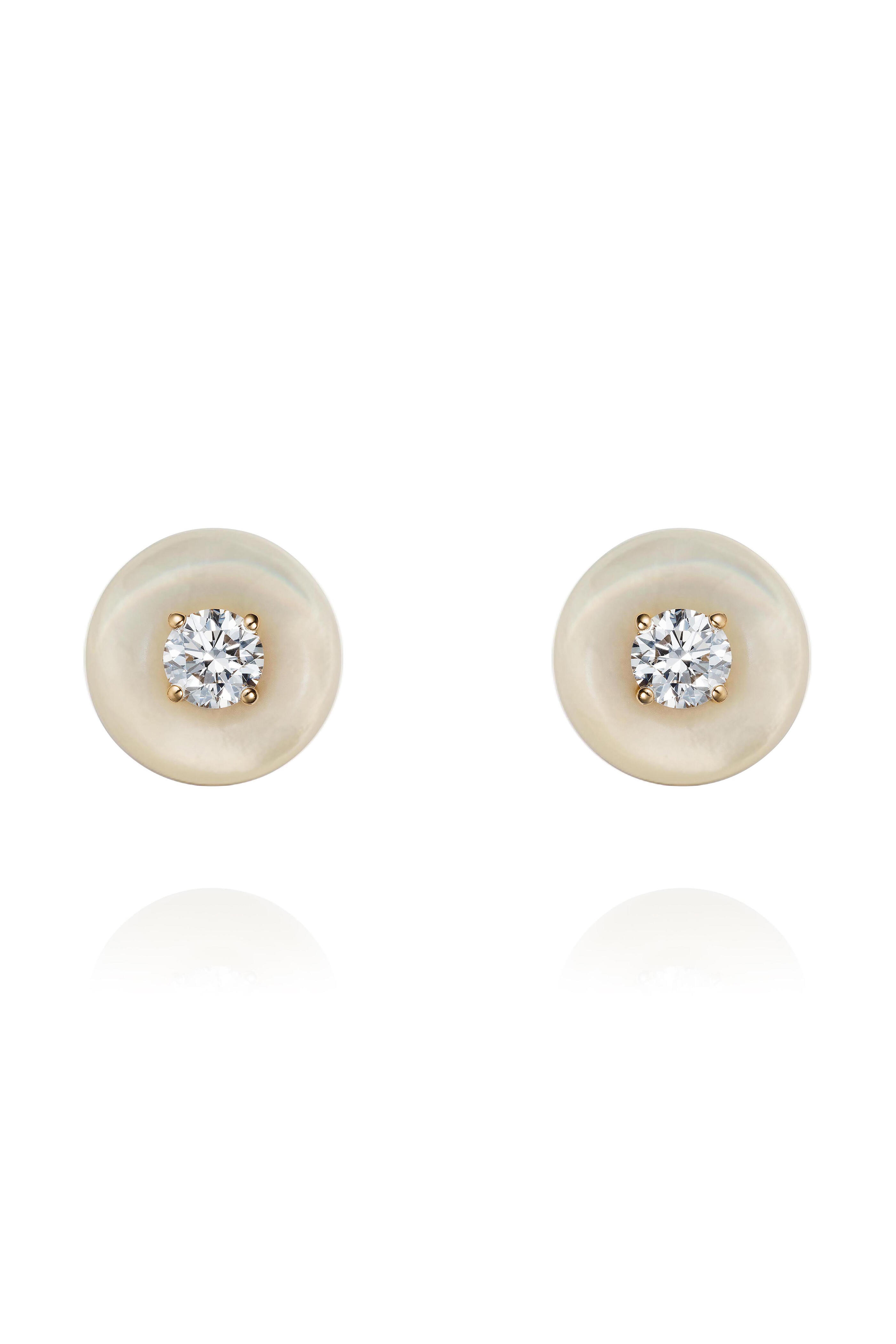 18K yellow gold. Diamonds, 0.02 tcw. Mother of pearl.