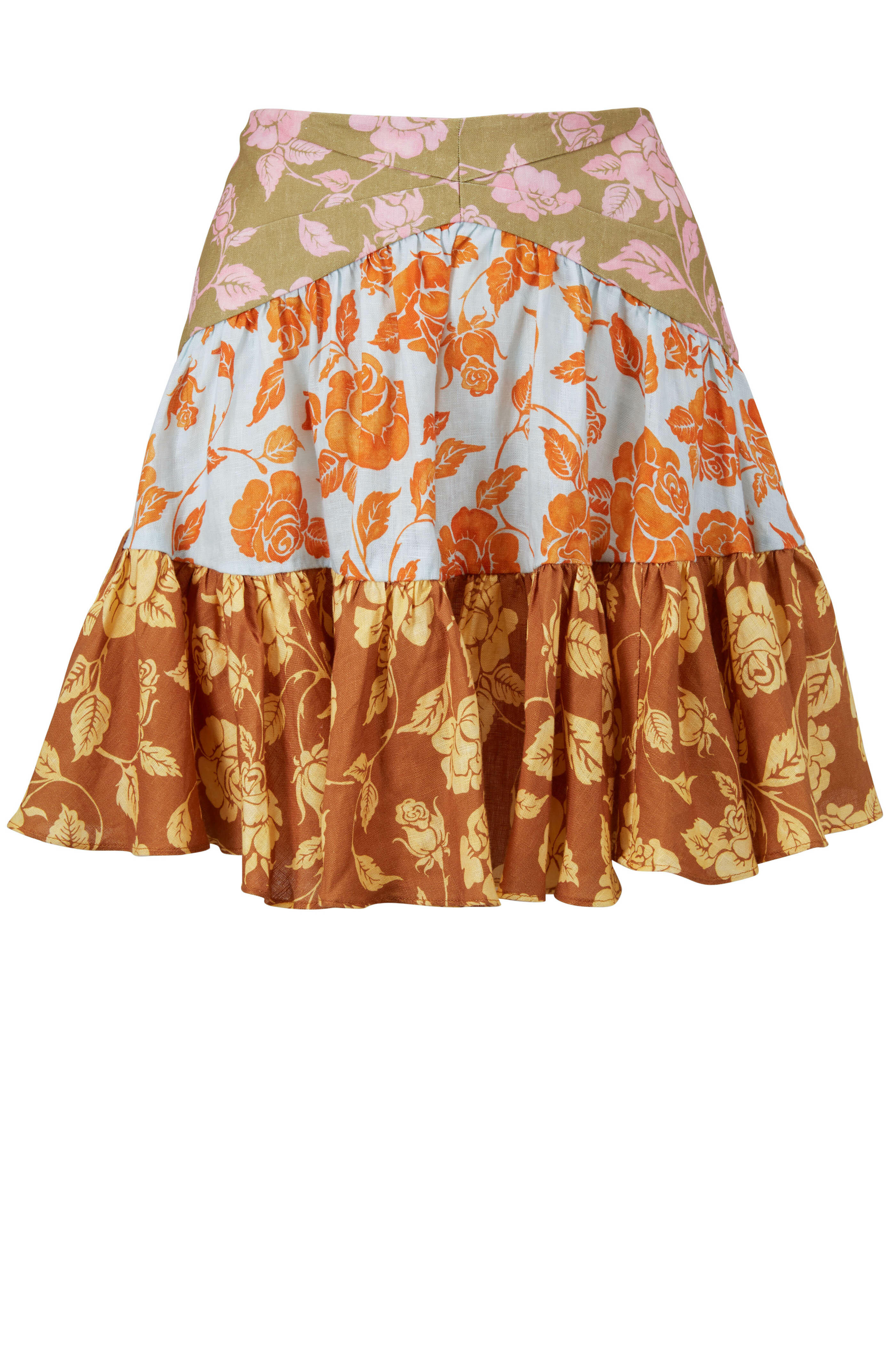 Linen. Back zipper. Flounce hem. Imported. Mini length. A-line silhouette. Dry clean.