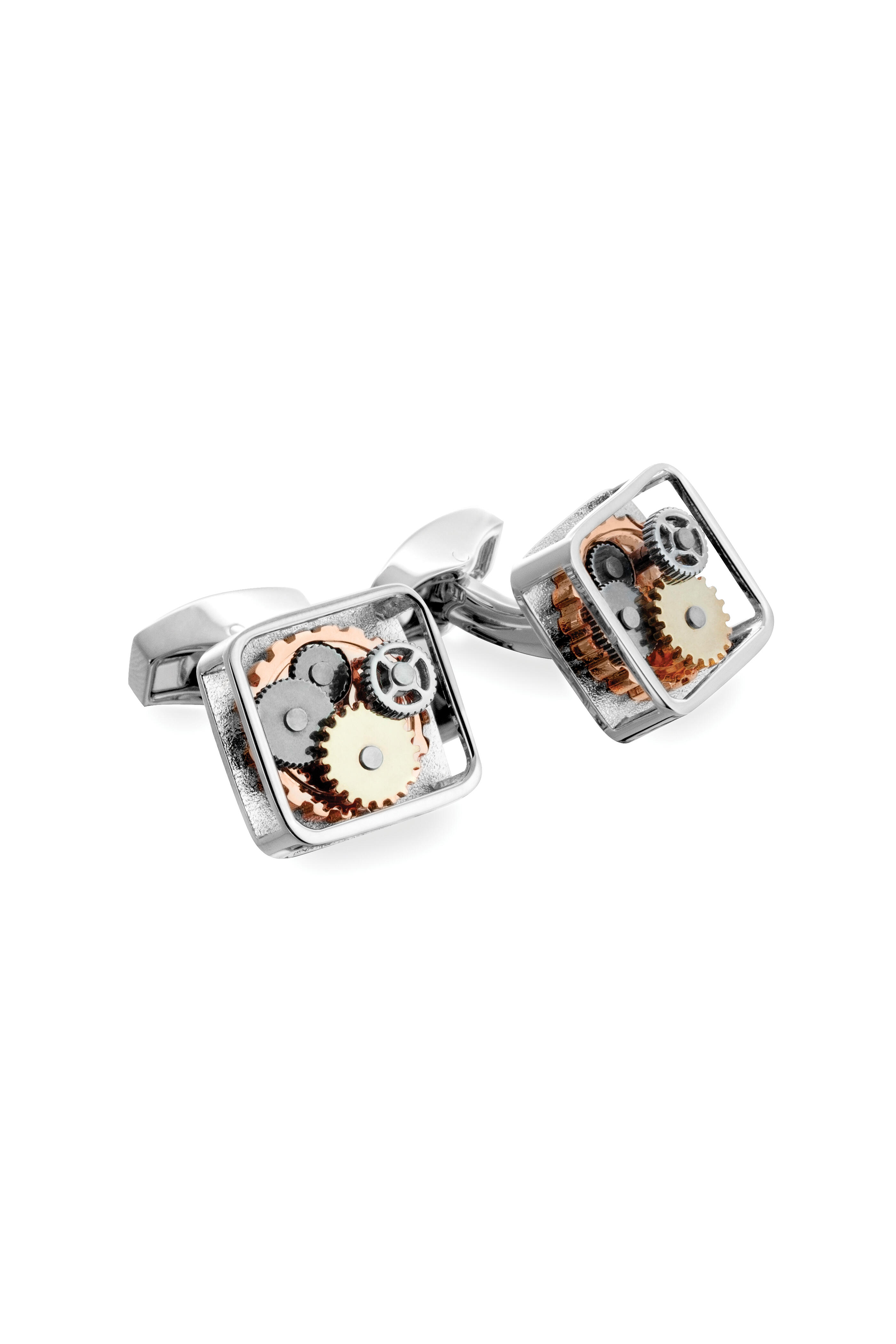 Rhodium Silver Square Gear Cufflinks