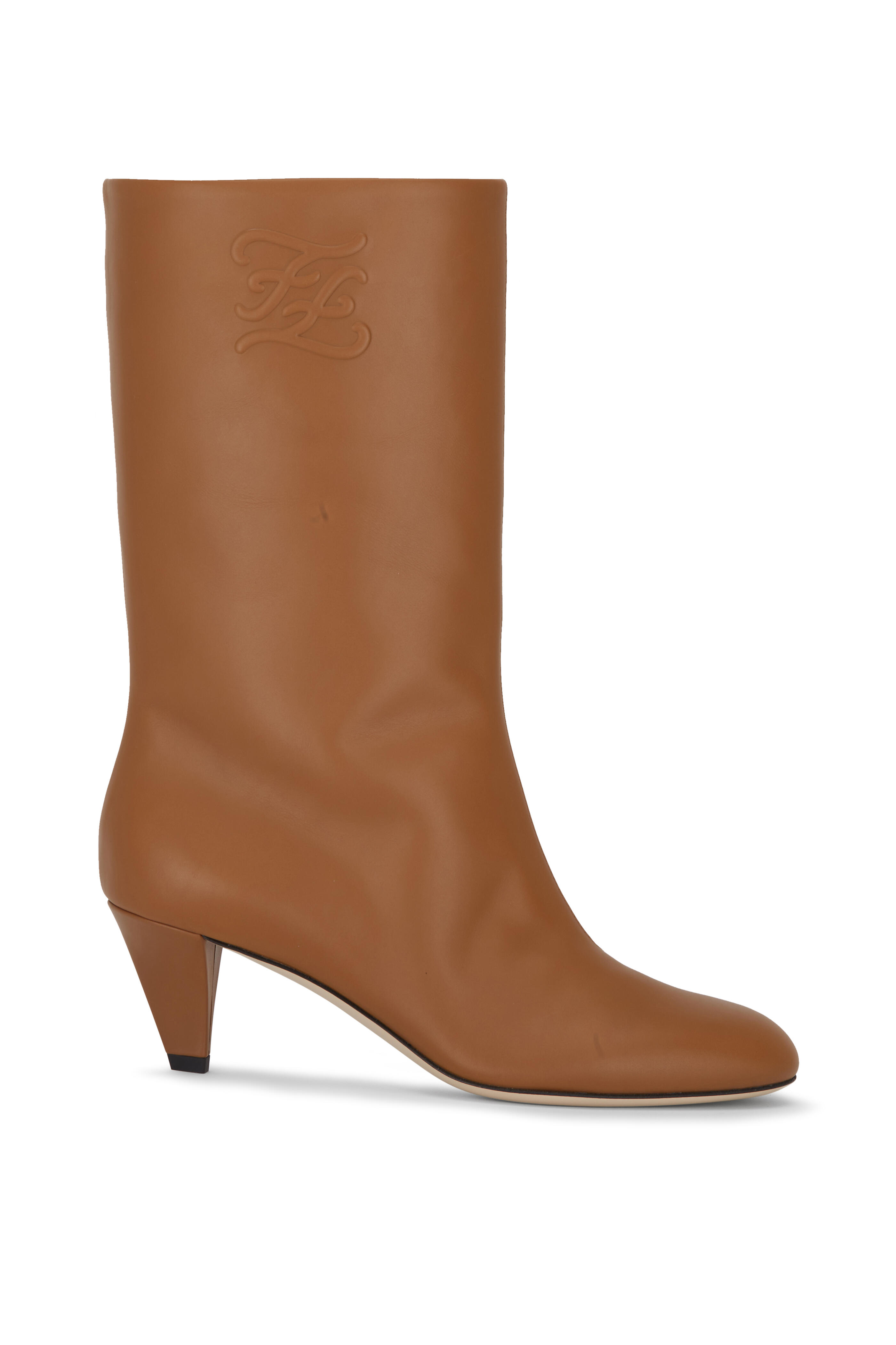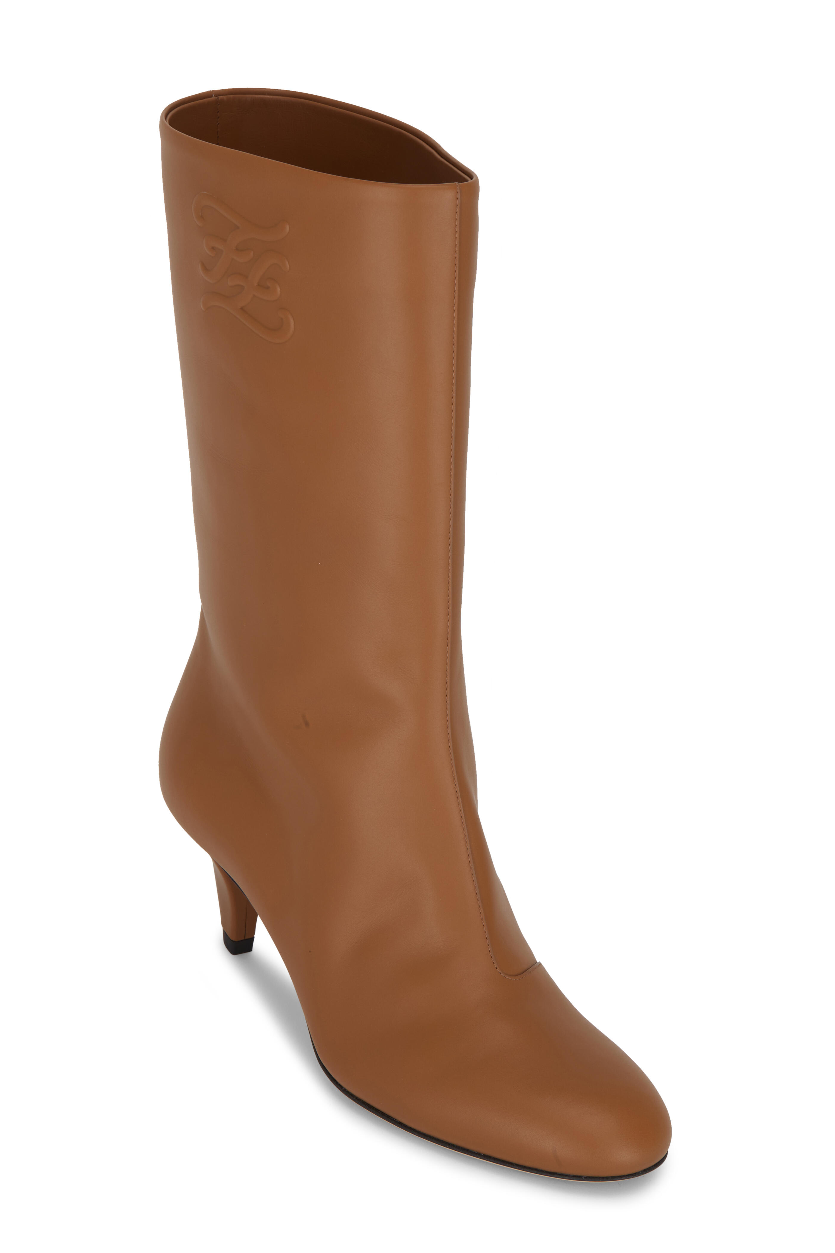 Smooth leather. Pull on style. Embossed logo detail. Self-covered heel. Leather lining and insole. Leather sole. Made in Italy. Heel height: 55mm (2.1").