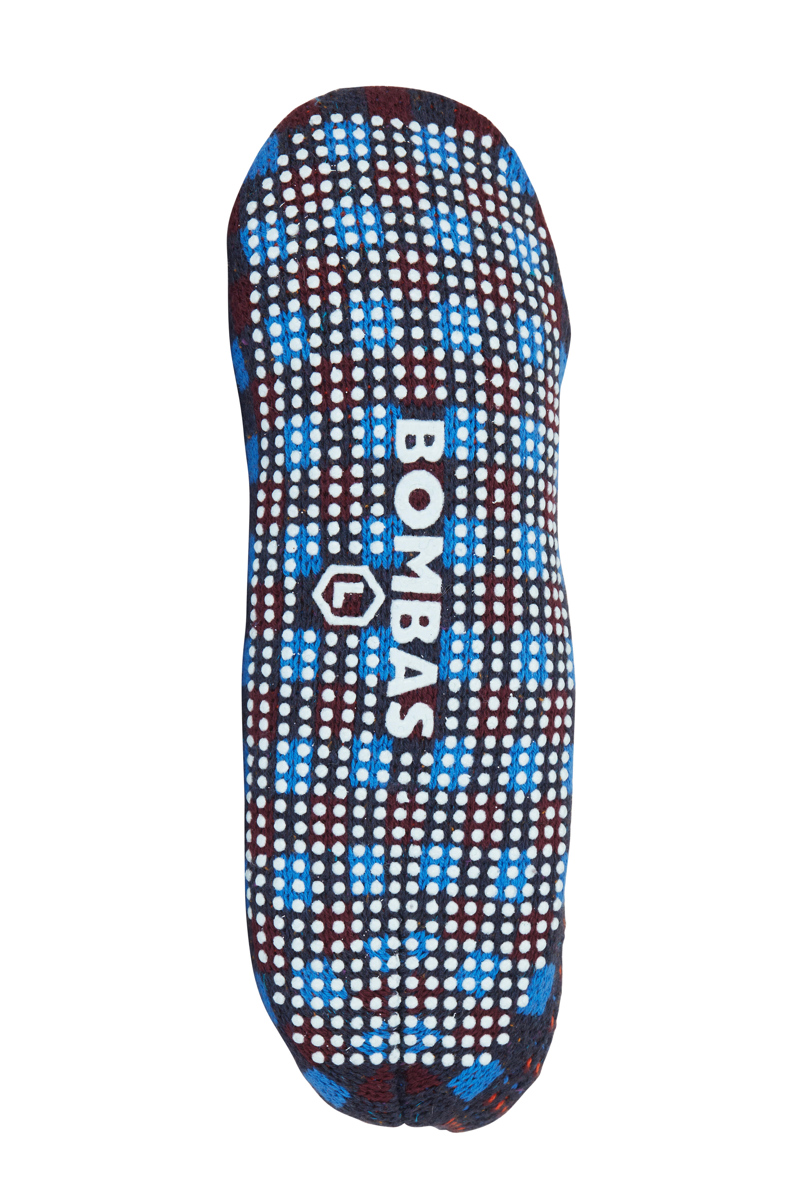 Back pull tab. Gripper soles. Imported. 80% supima cotton, 20% wool. Machine wash.