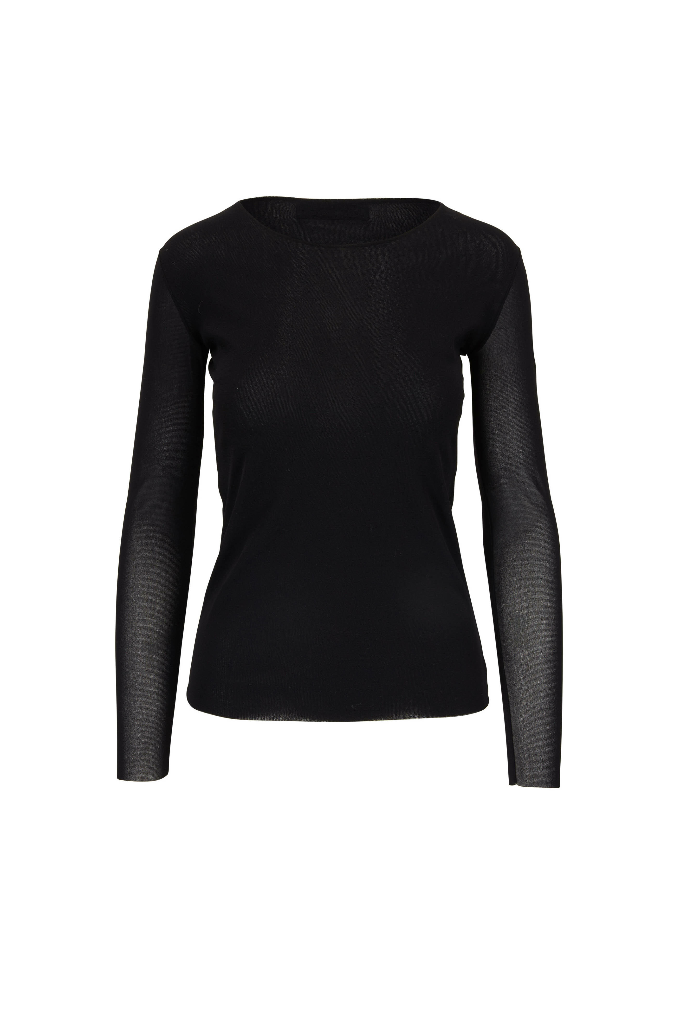 Black Sheer Sleeve Crewneck Top