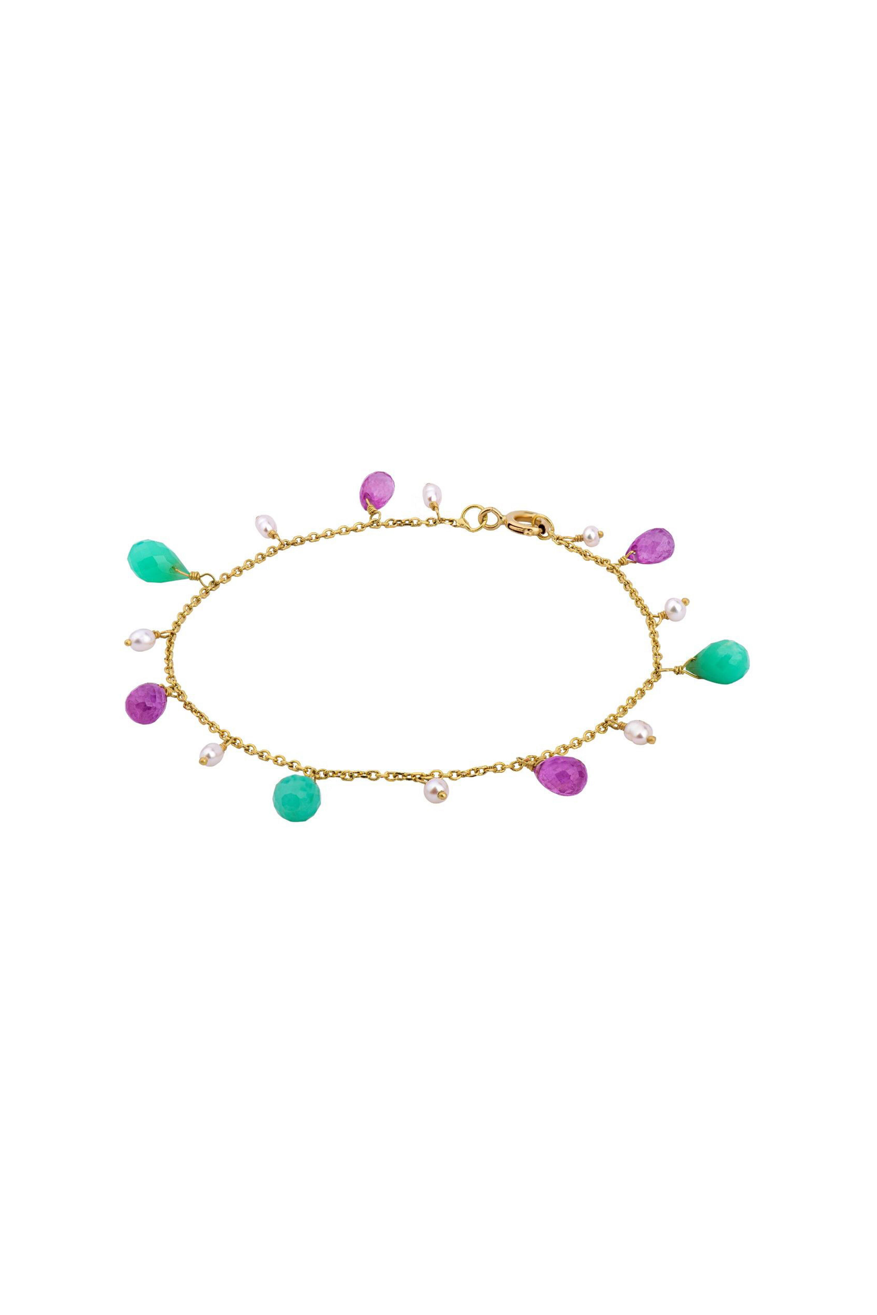 Yellow Gold Beaded Multi Gem Drop Bracelet