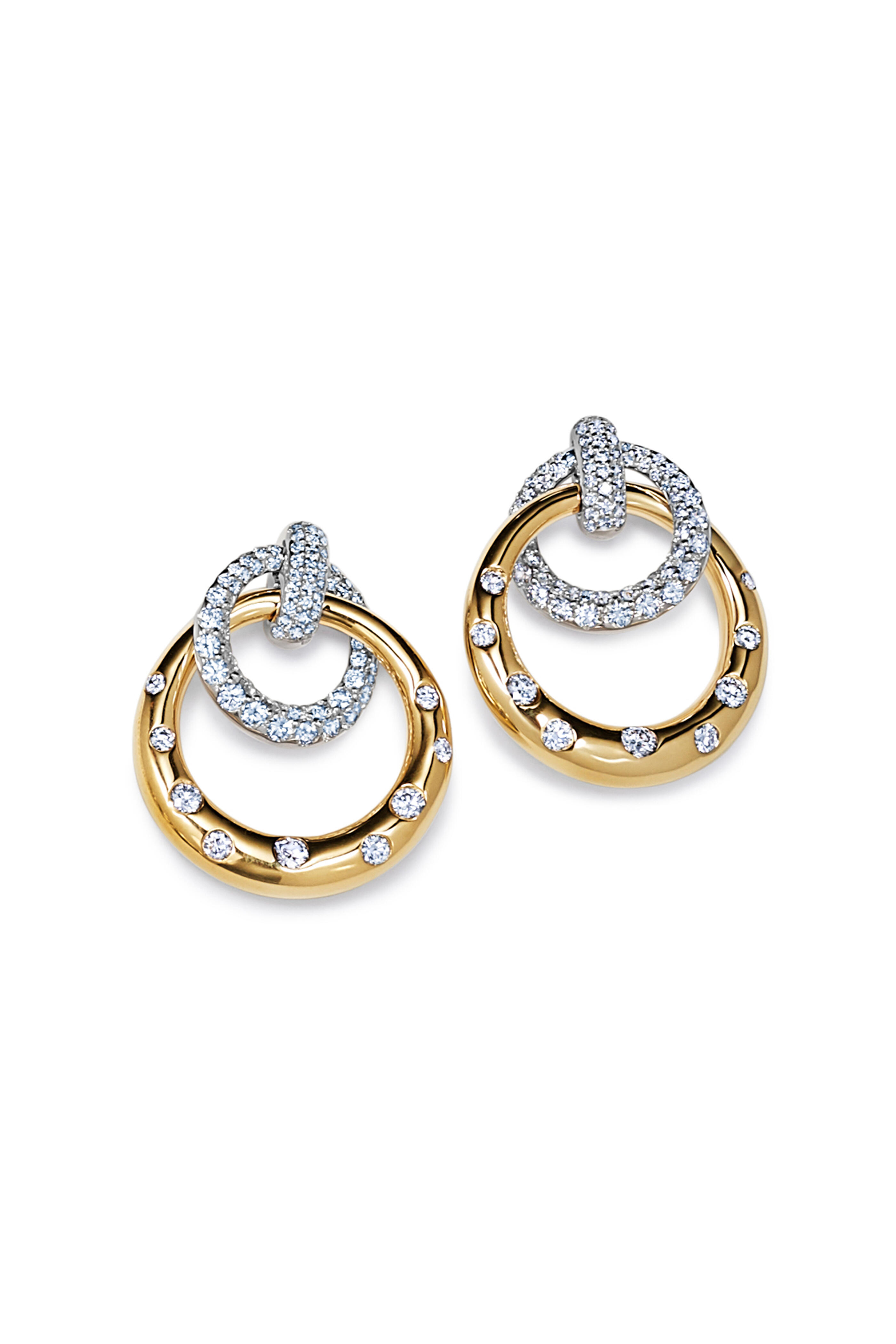 18K Gold Diamond Cobblestone Interlock Earrings