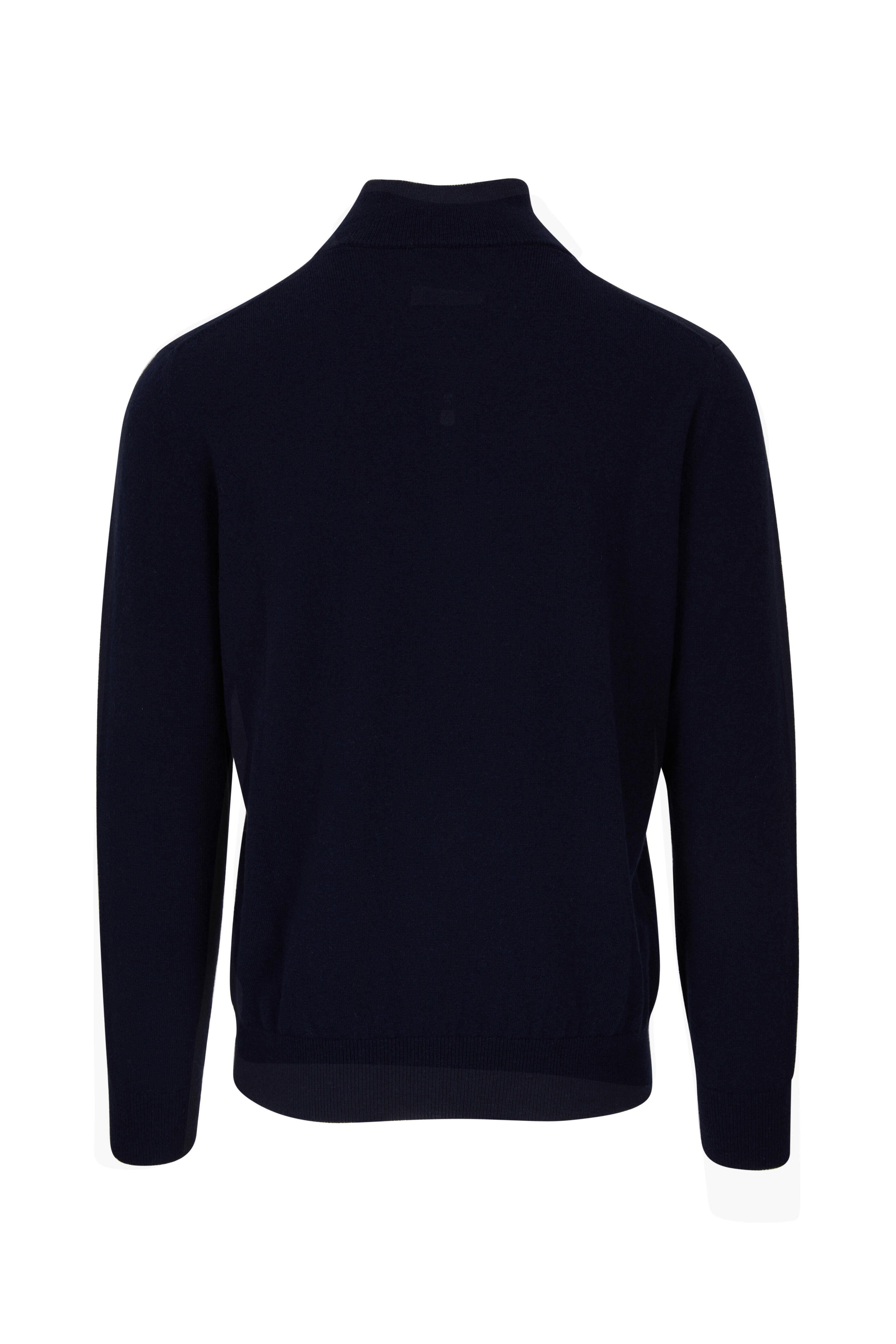 Mockneck. Quarter zip closure. Ribbed trim. Made in Italy. 100% cashmere. Hand wash.