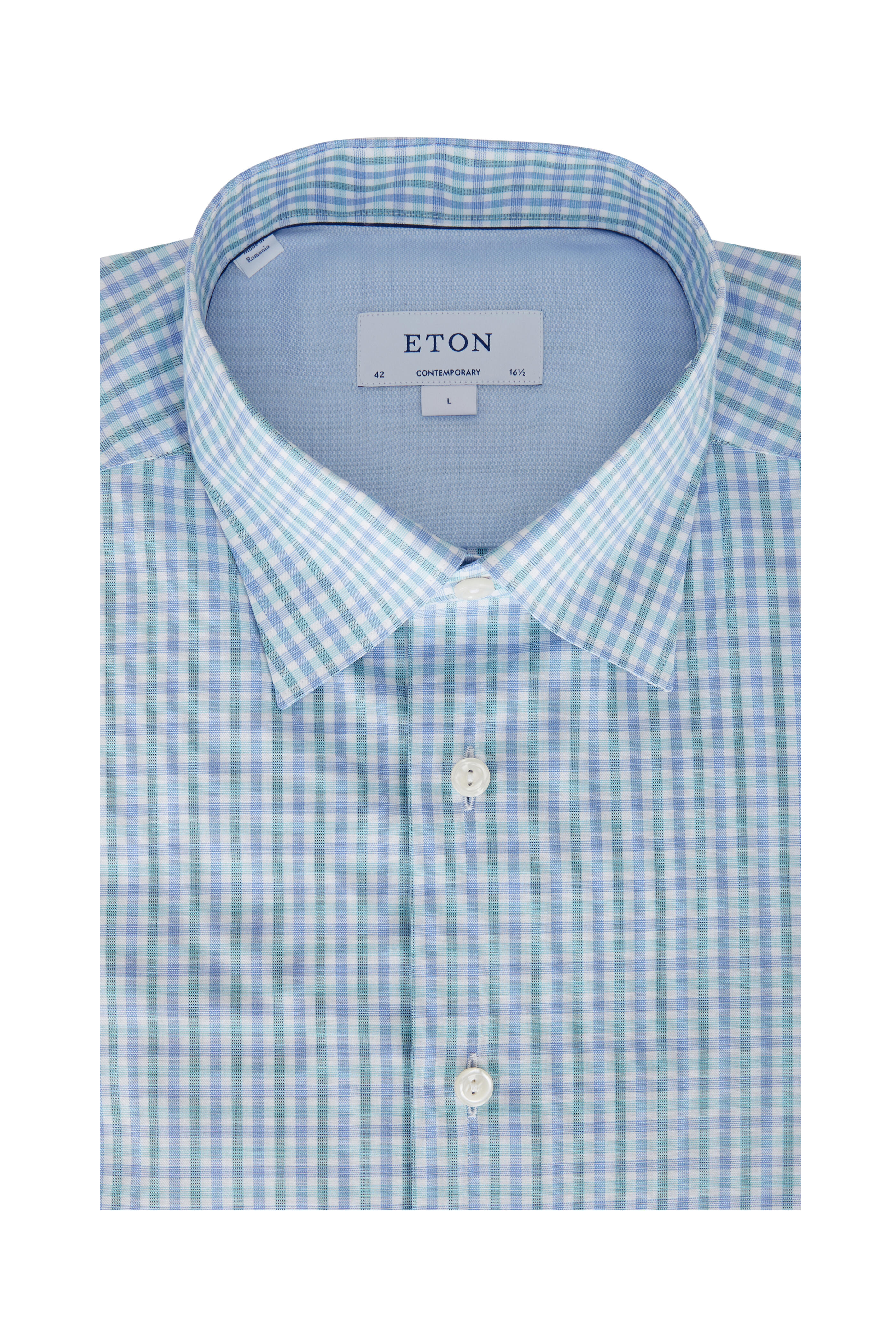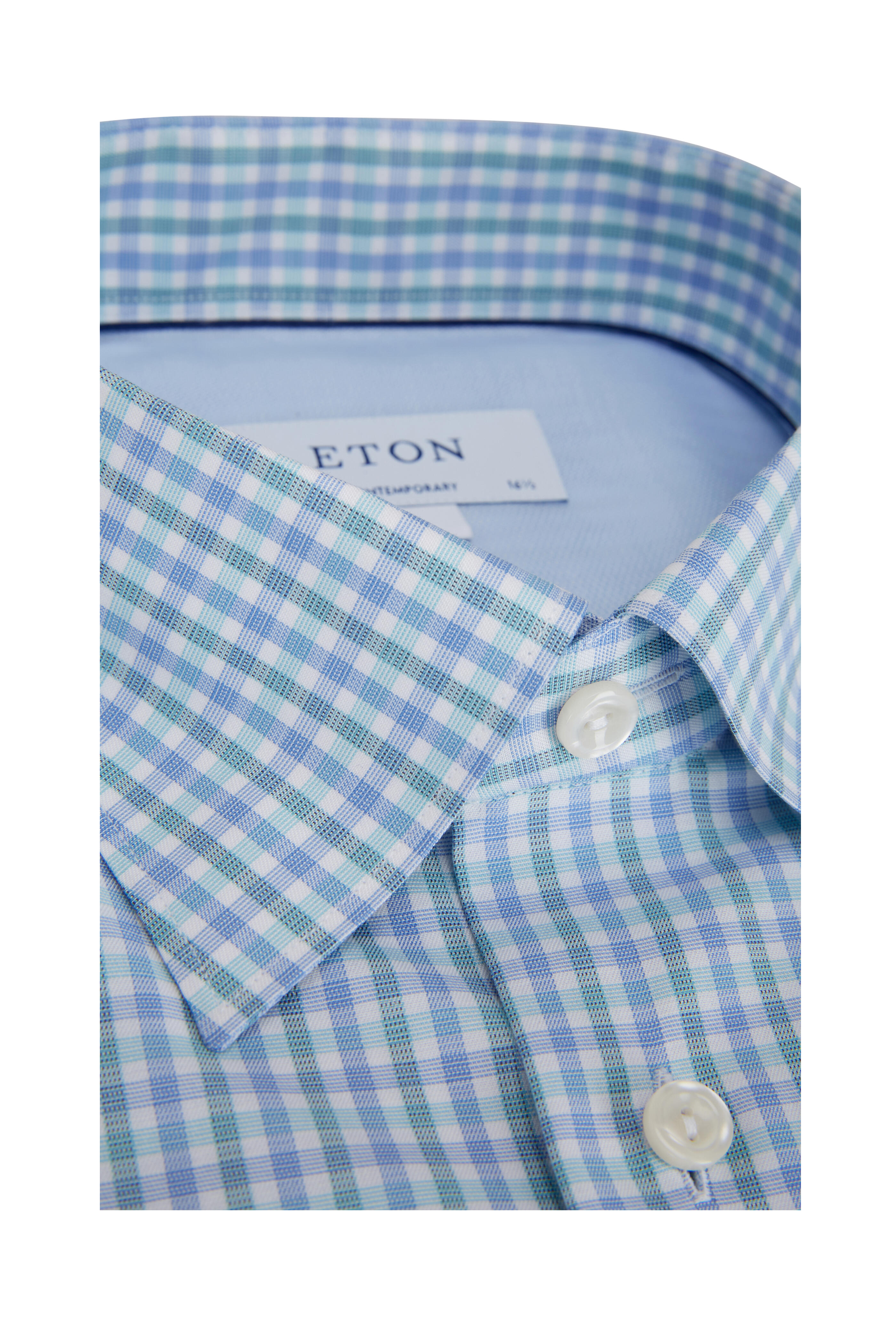 Spread collar. Single button mitered cuffs. Imported. Contemporary Fit. 100% cotton. Machine wash.