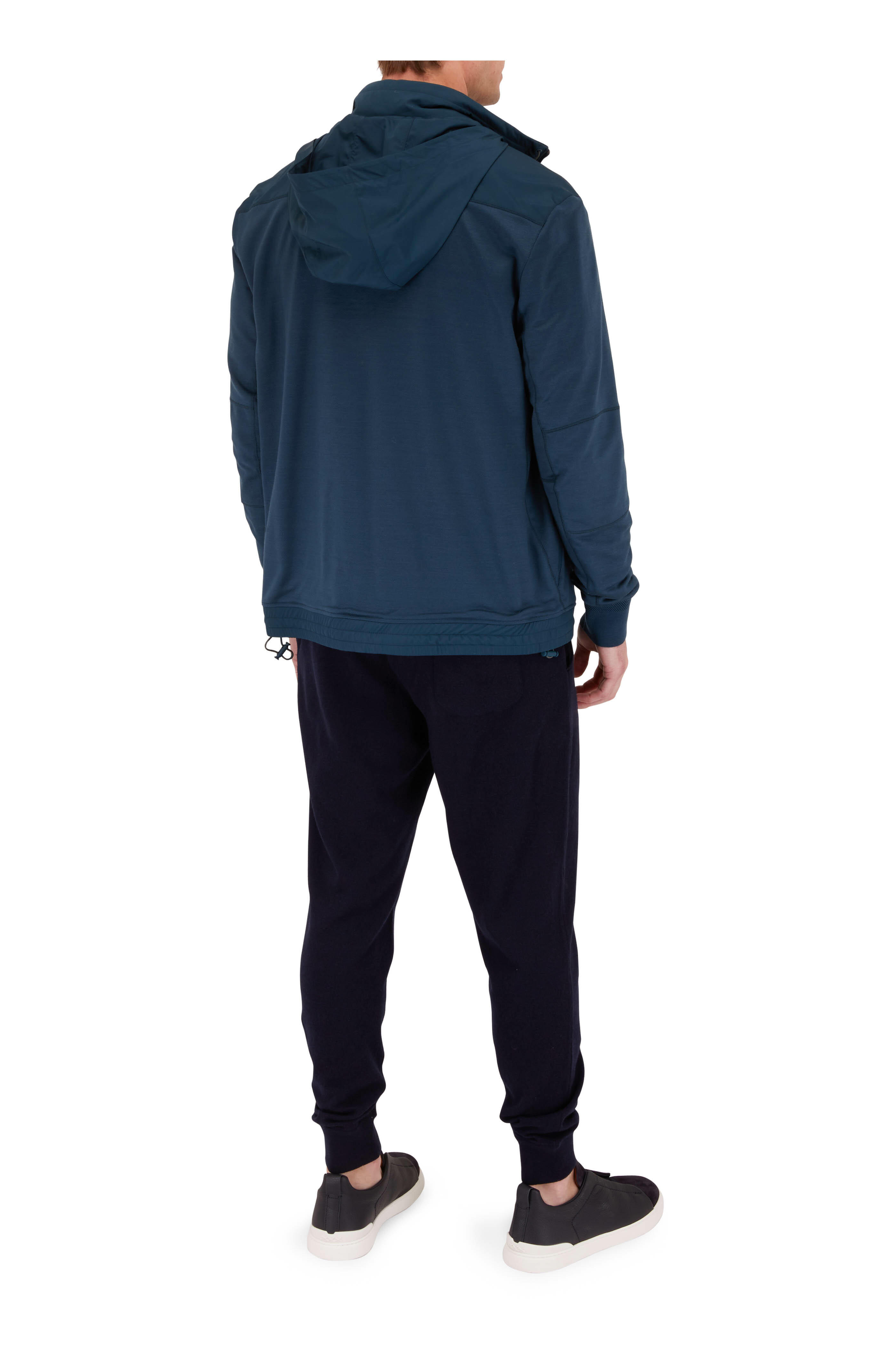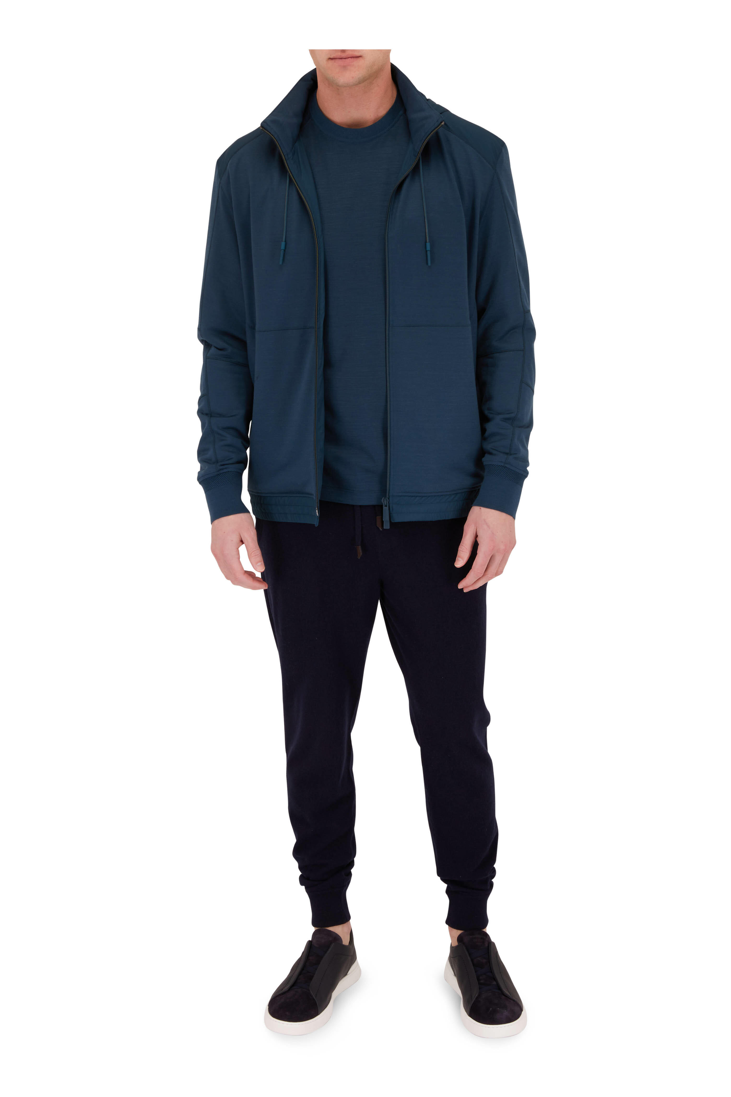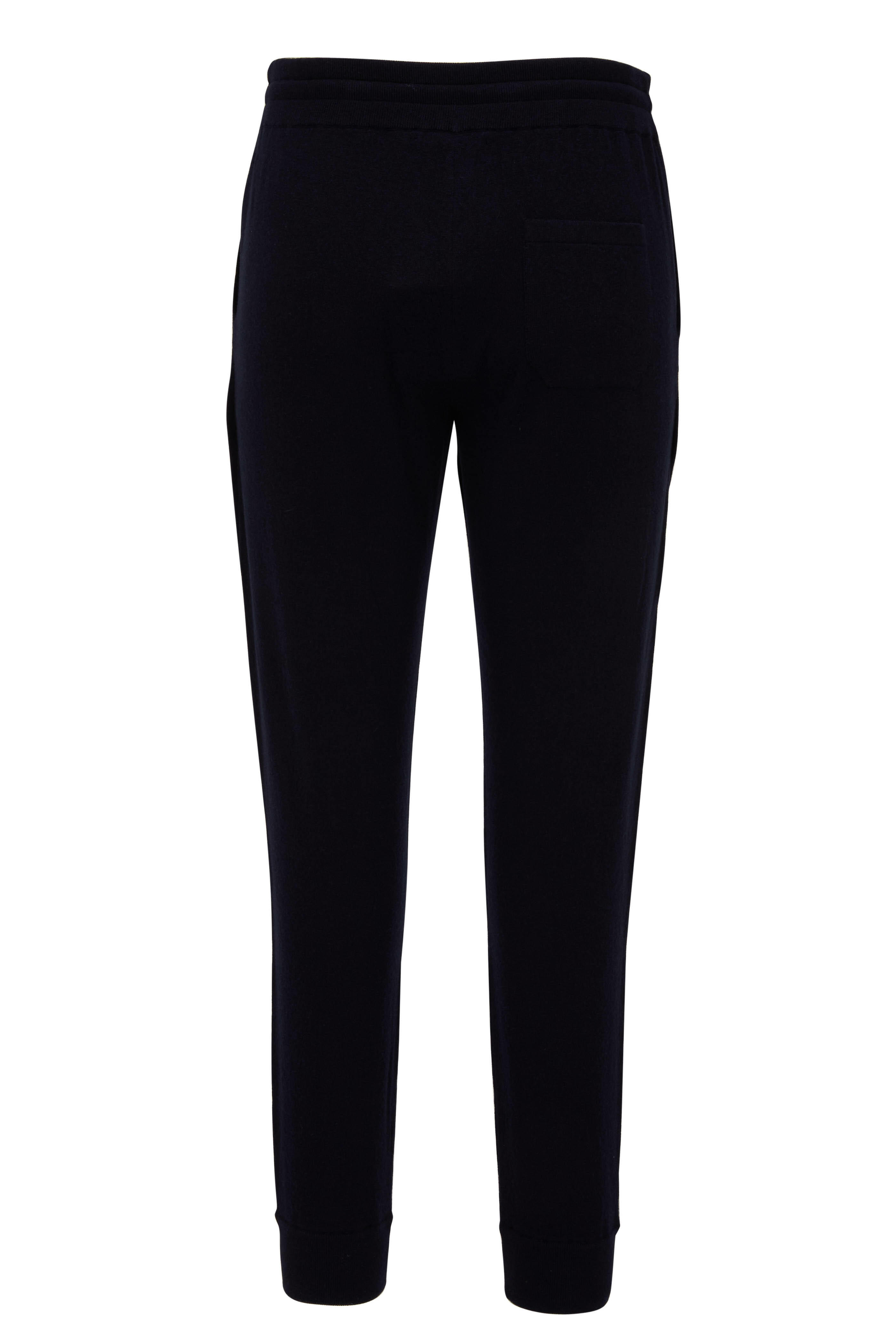 Elasticized, banded drawstring waist. Back patch pocket; front slip pockets. Ribbed, banded cuffs. Made in Italy. 100% cashmere. Hand wash.