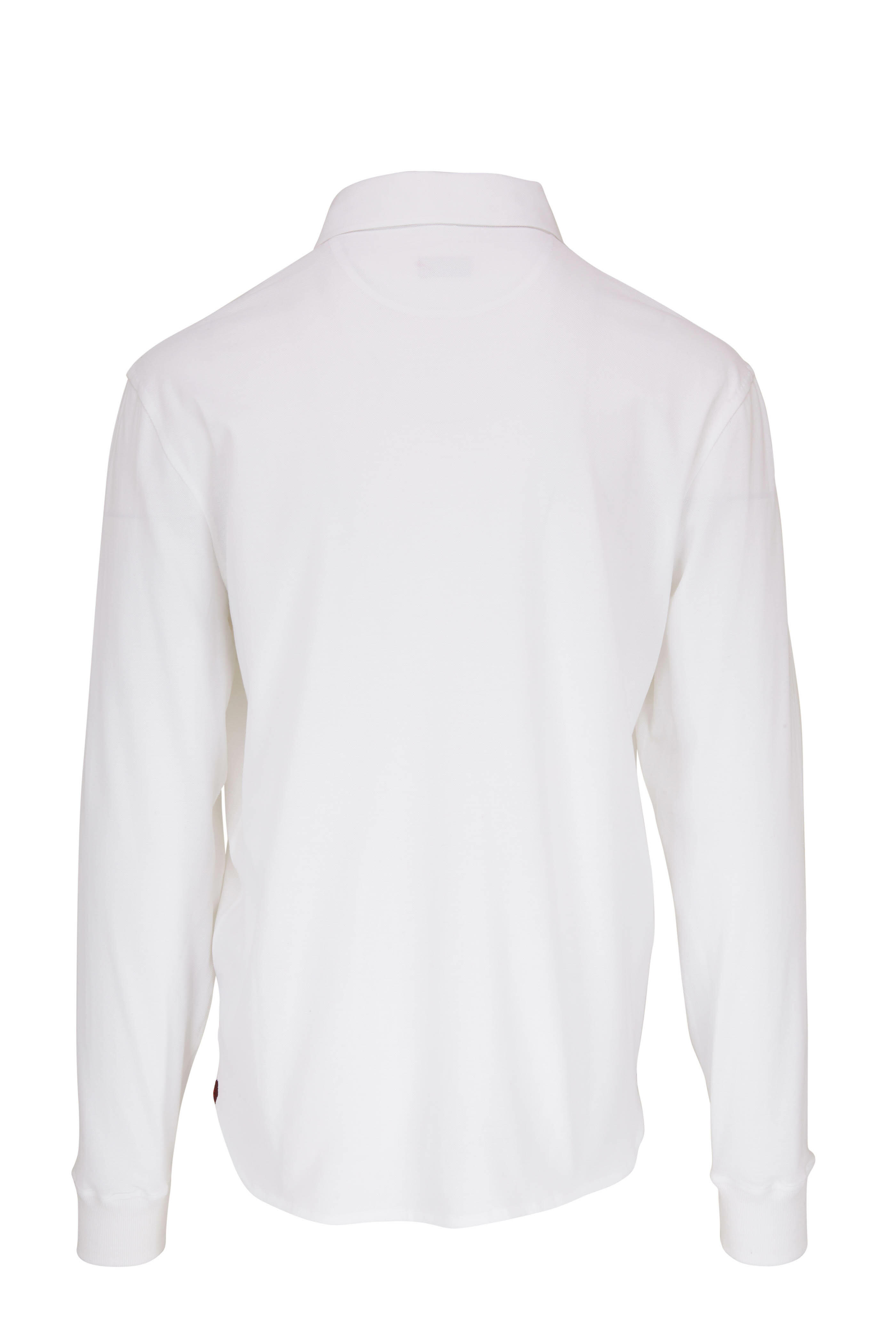 Spread collar. Front button placket. Chest patch pocket. Ribbed knit cuffs. Made in Italy. 100% cotton. Machine wash.