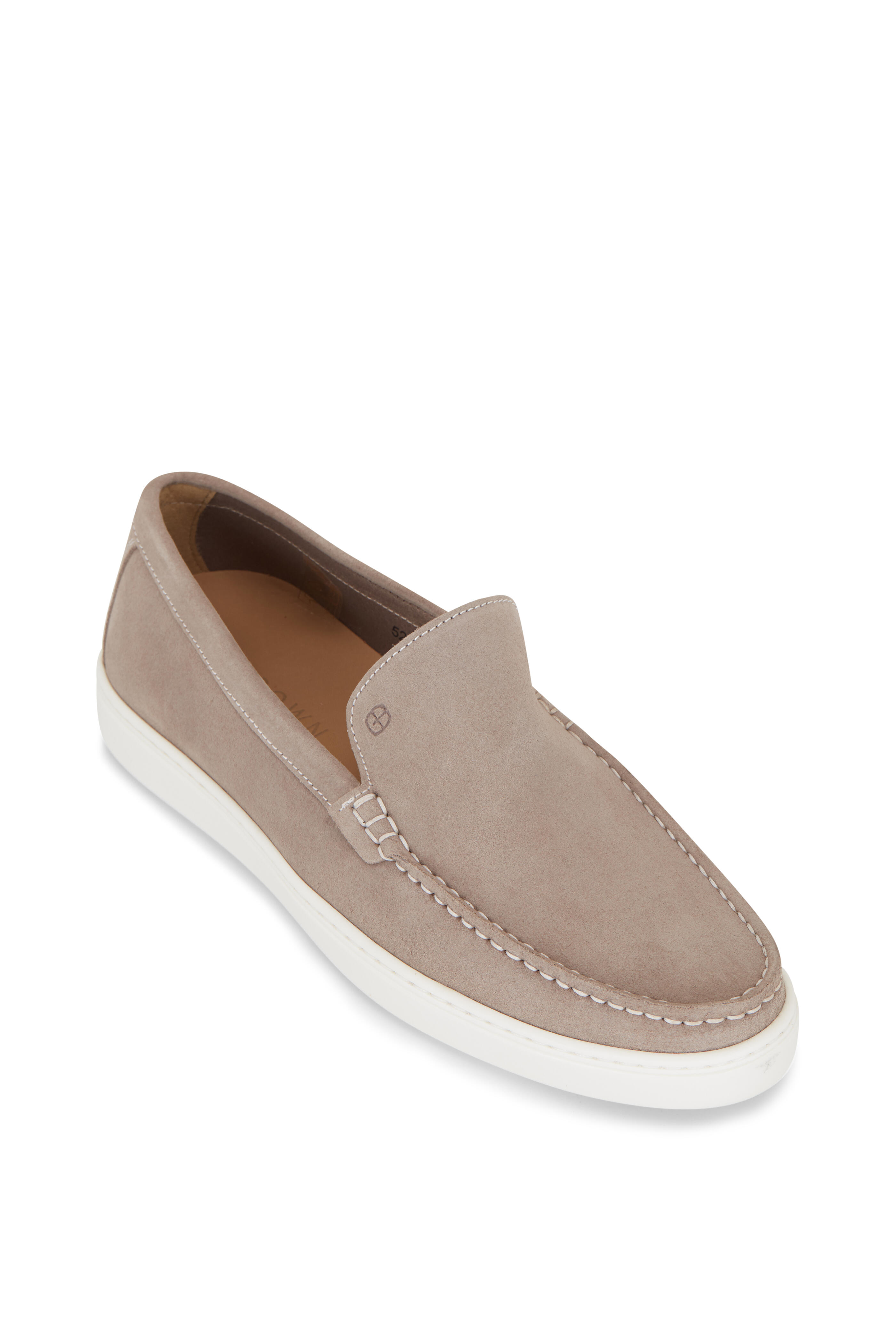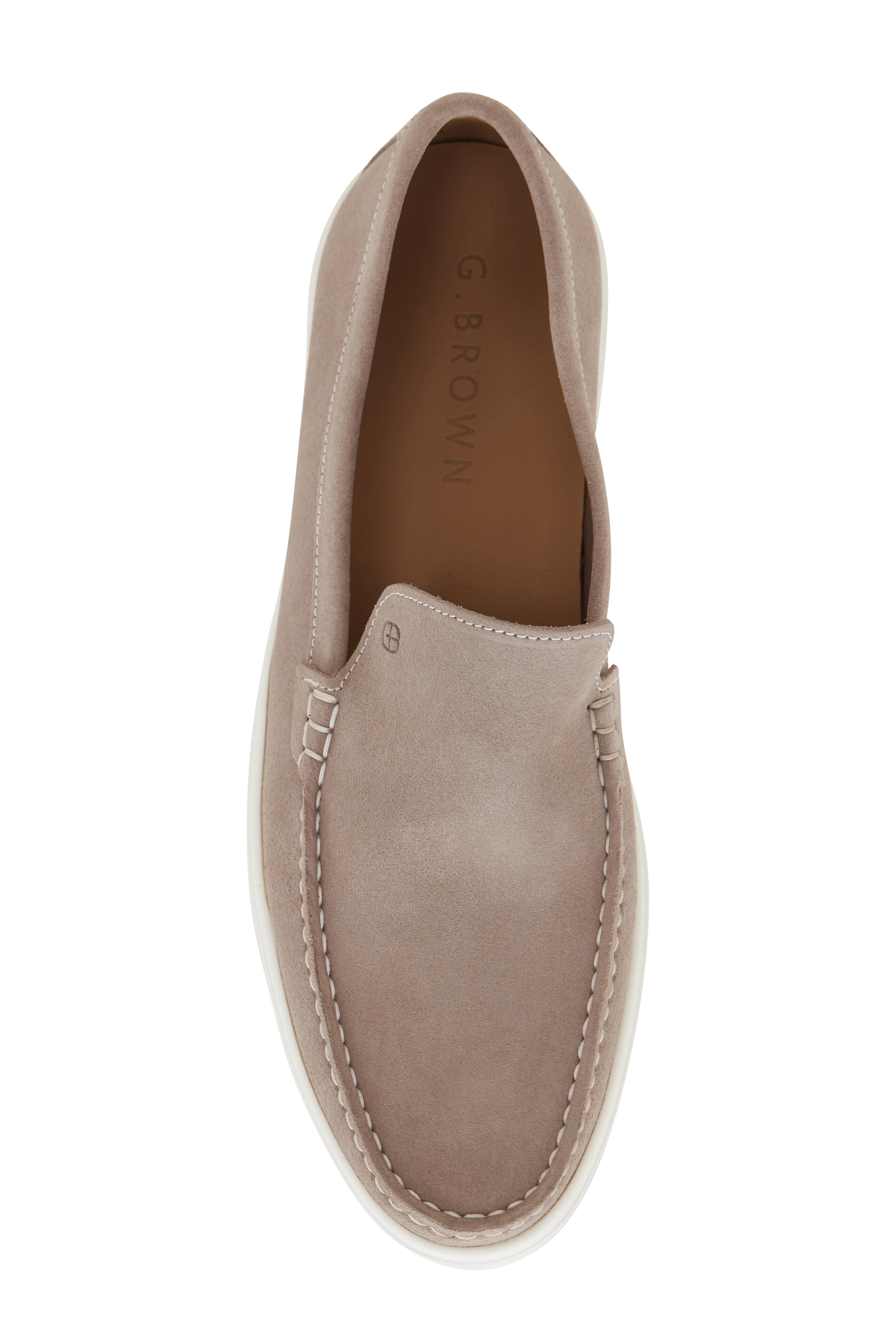 Suede upper. Round toe. Slip on style. Top stitch details. Unlined; cushioned insole. Rubber sole. Imported.