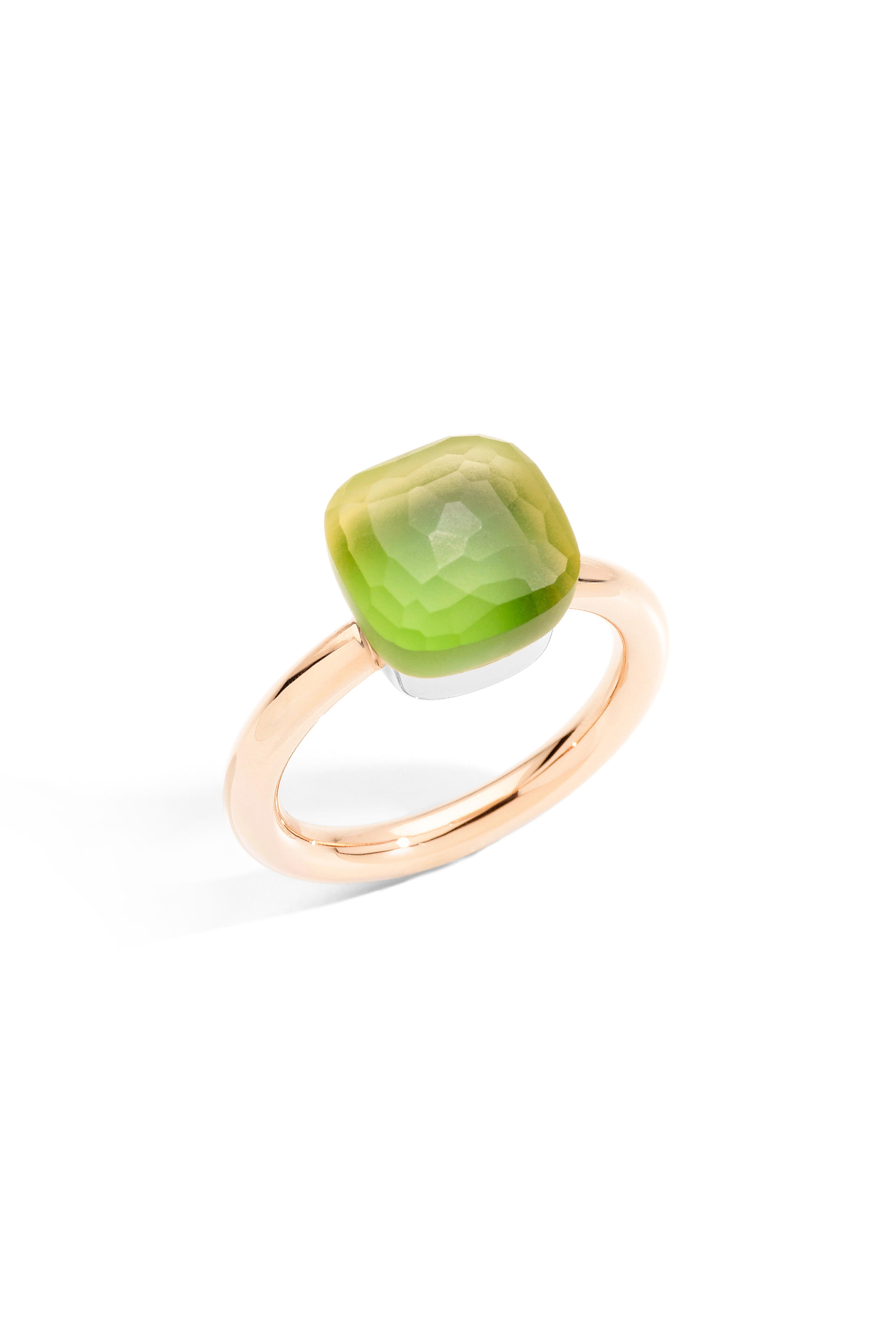 Nudo Collection. 18K Rose & White Gold. Frosted Finish. Lemon Quartz Gelé & Chrysoprase: 8 CT. Made in Italy. Size: 4.5.
