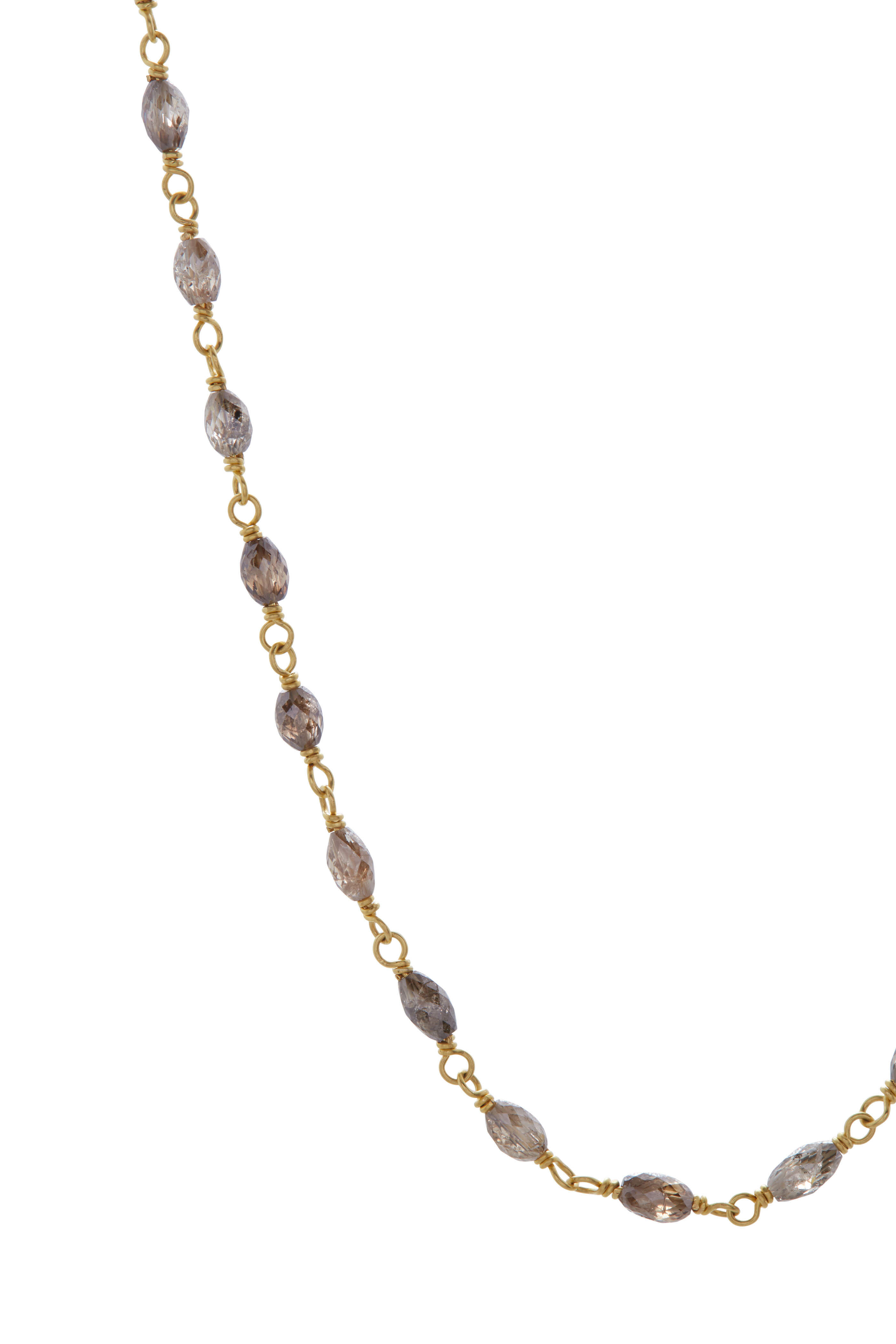 20k yellow gold. 10.88 carat cognac diamond beads.