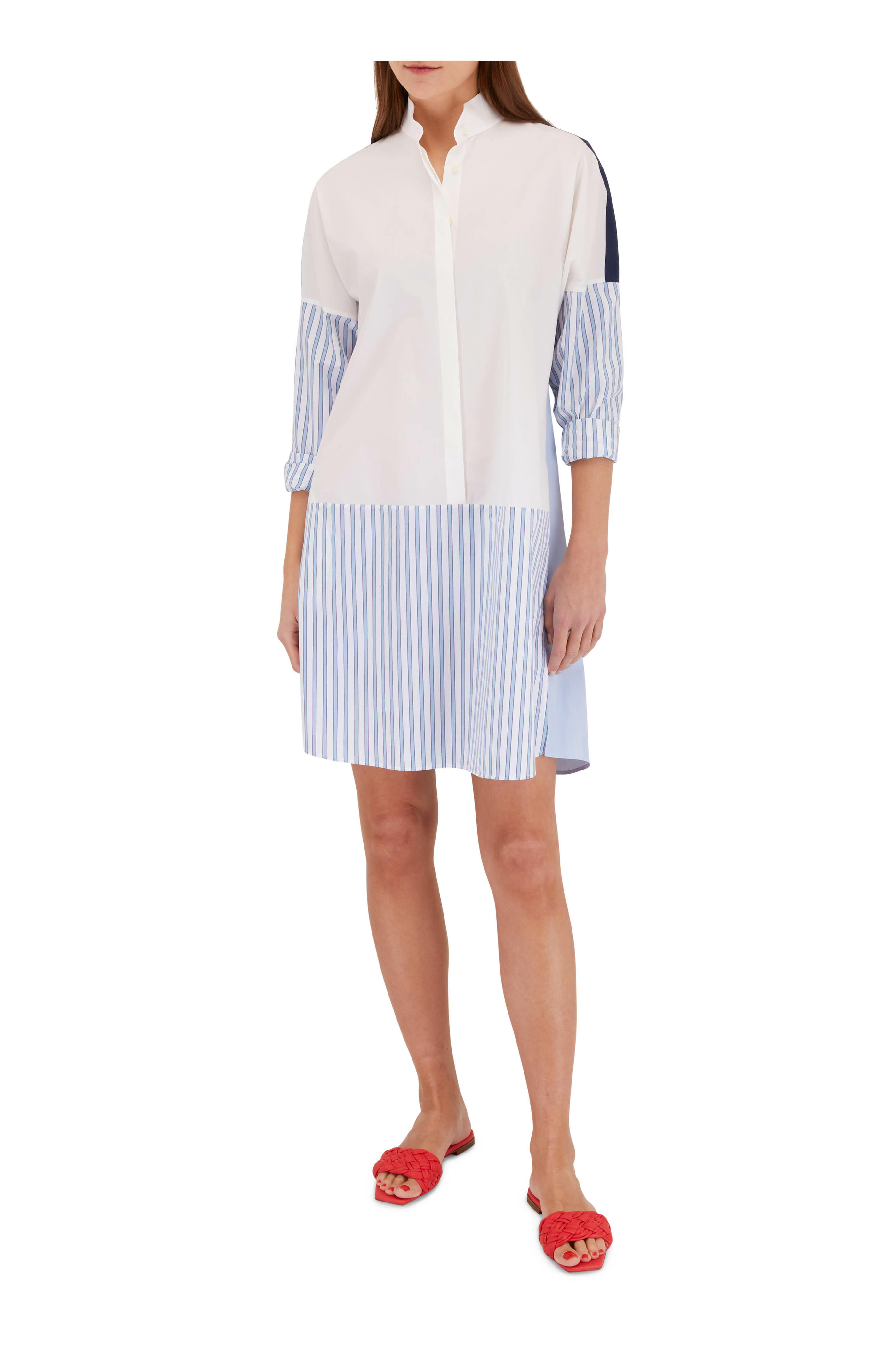 Cream, Blue Denim & Navy Long Sleeve Shirt Dress