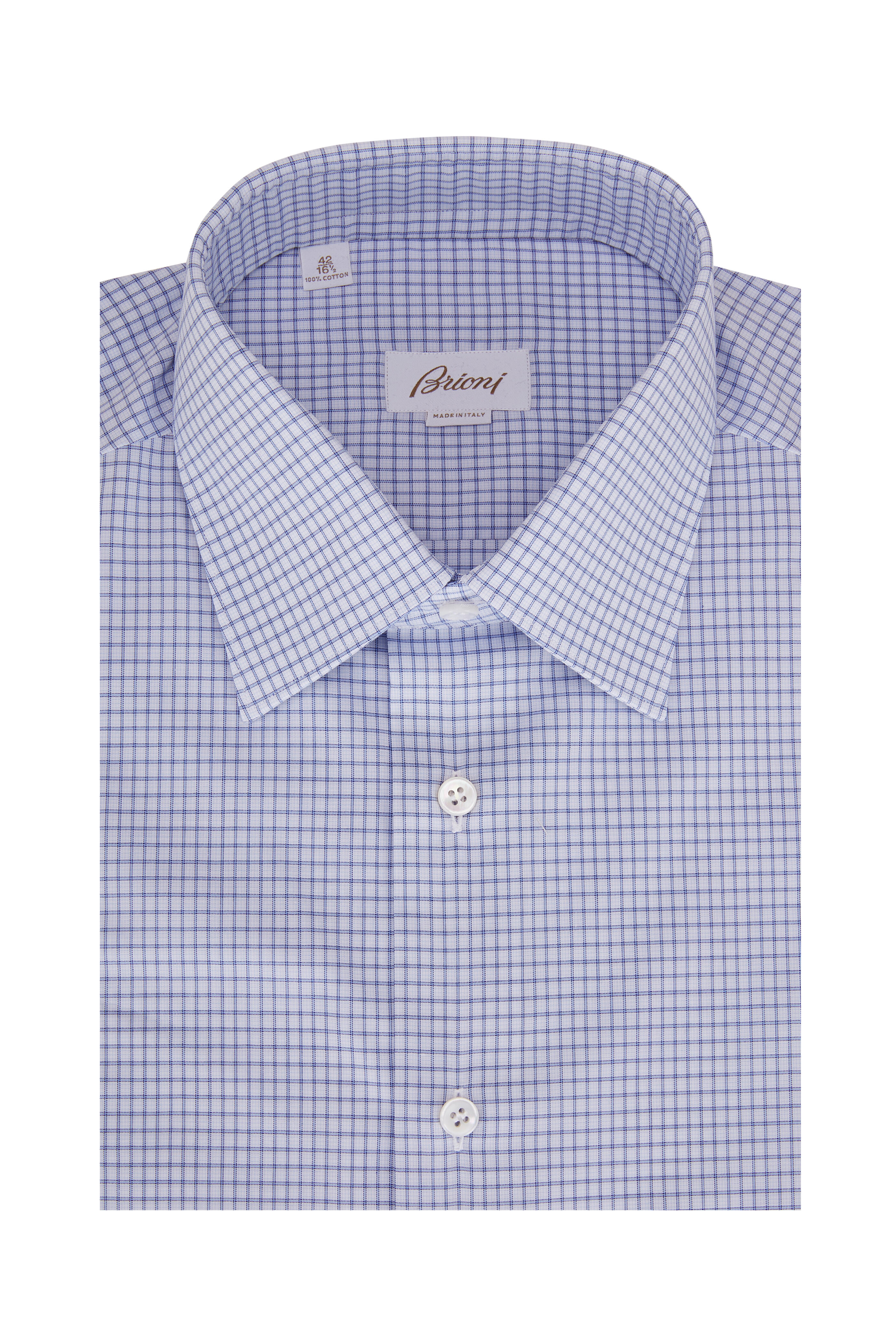 Spread collar. Single button barrel cuffs. Made in Italy. 100% cotton. Dry clean.